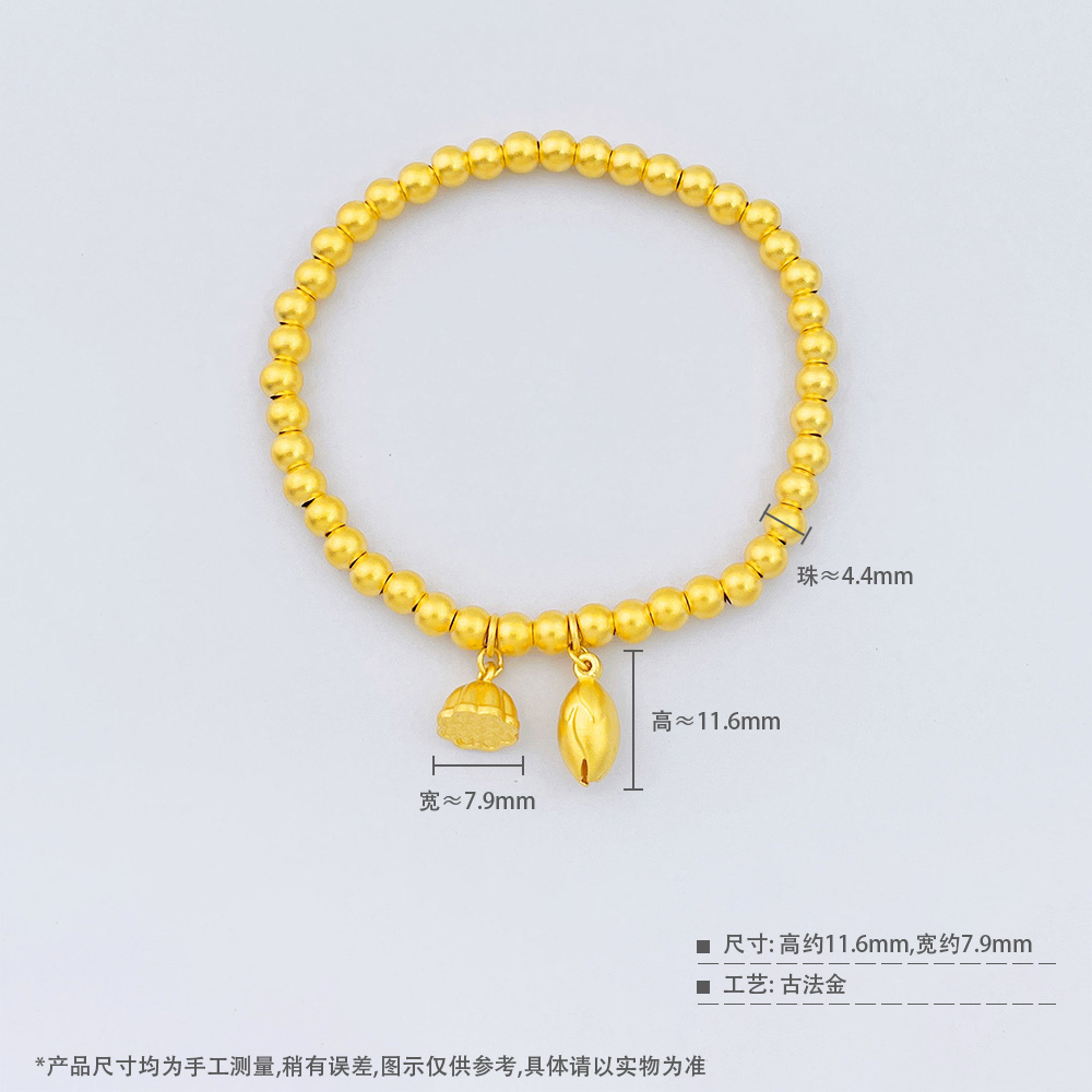 【限时克减150元】足金999 #两世欢 古法圆珠手链好运莲莲莲花莲蓬吊饰转运金珠弹力绳手串(珠约4.2-4.6mm)(AUQGFSC00031-1)预售产品下单后不退款不退货不换货不补差价