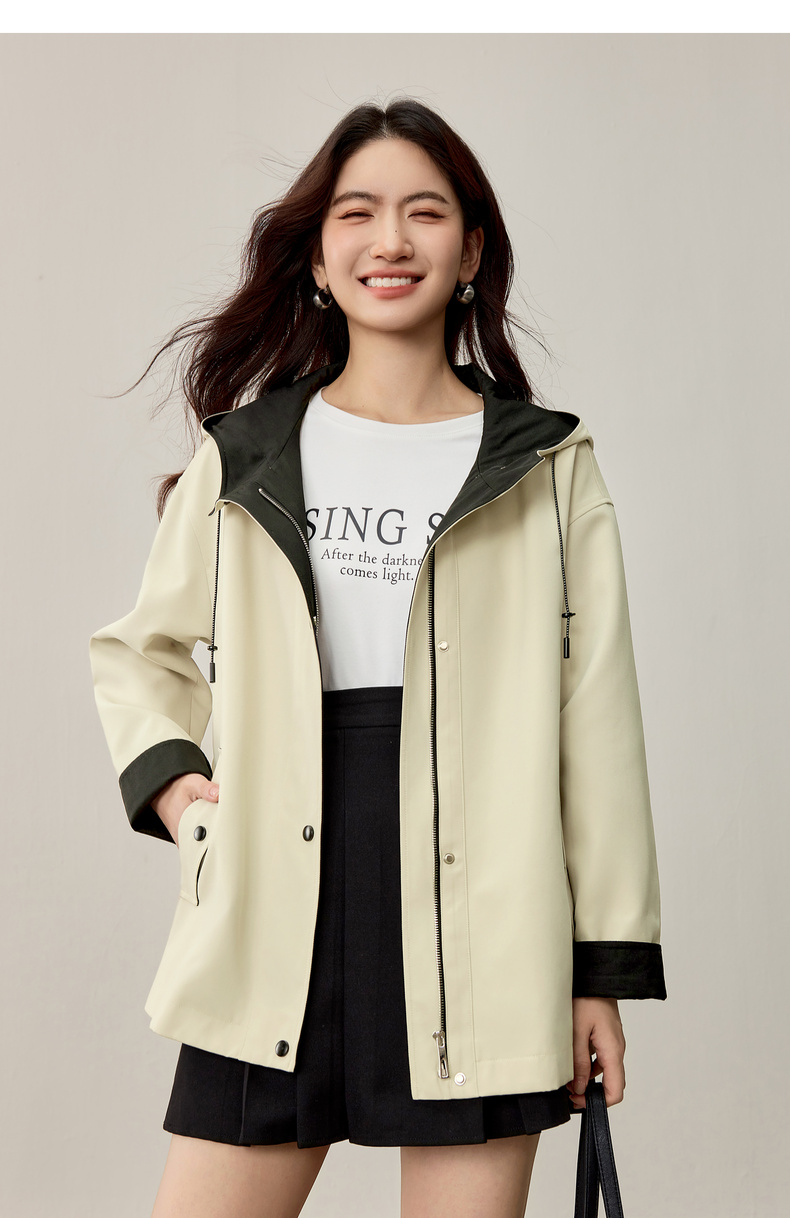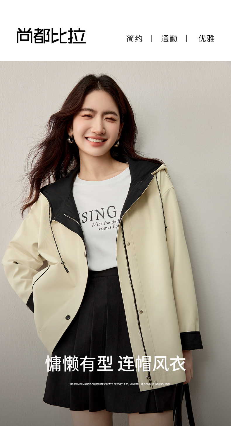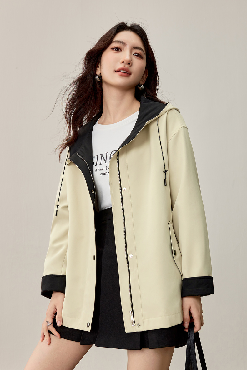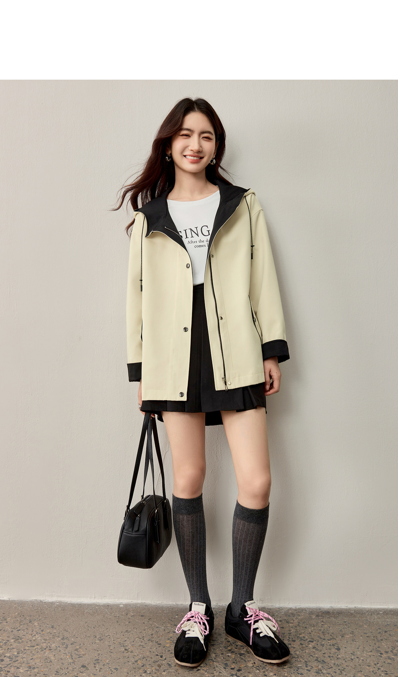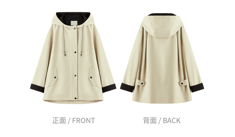 【内购】【连帽设计】都市休闲落肩H型连帽设计防风保暖风衣外套-153FA2261