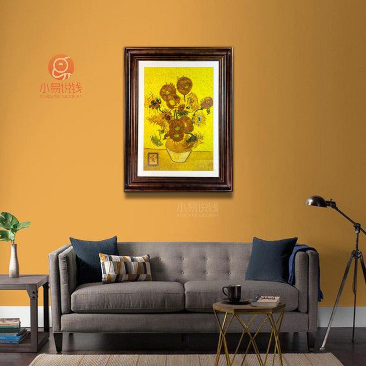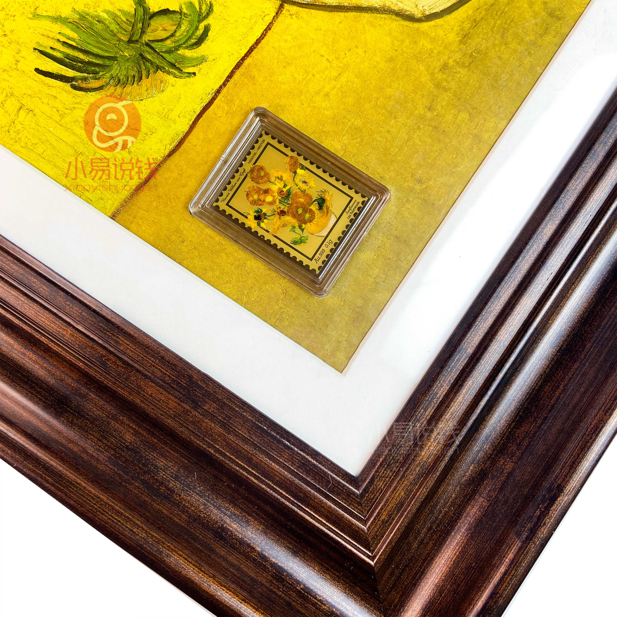 还有梵高名作《向日葵》挂画(含0.1克定制足金邮票),并带有精美装裱。
