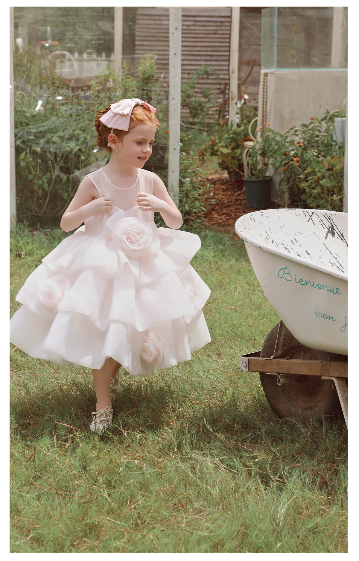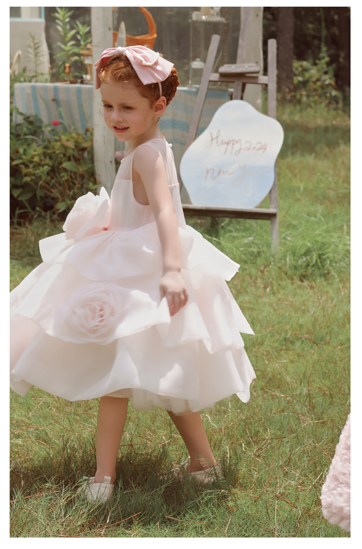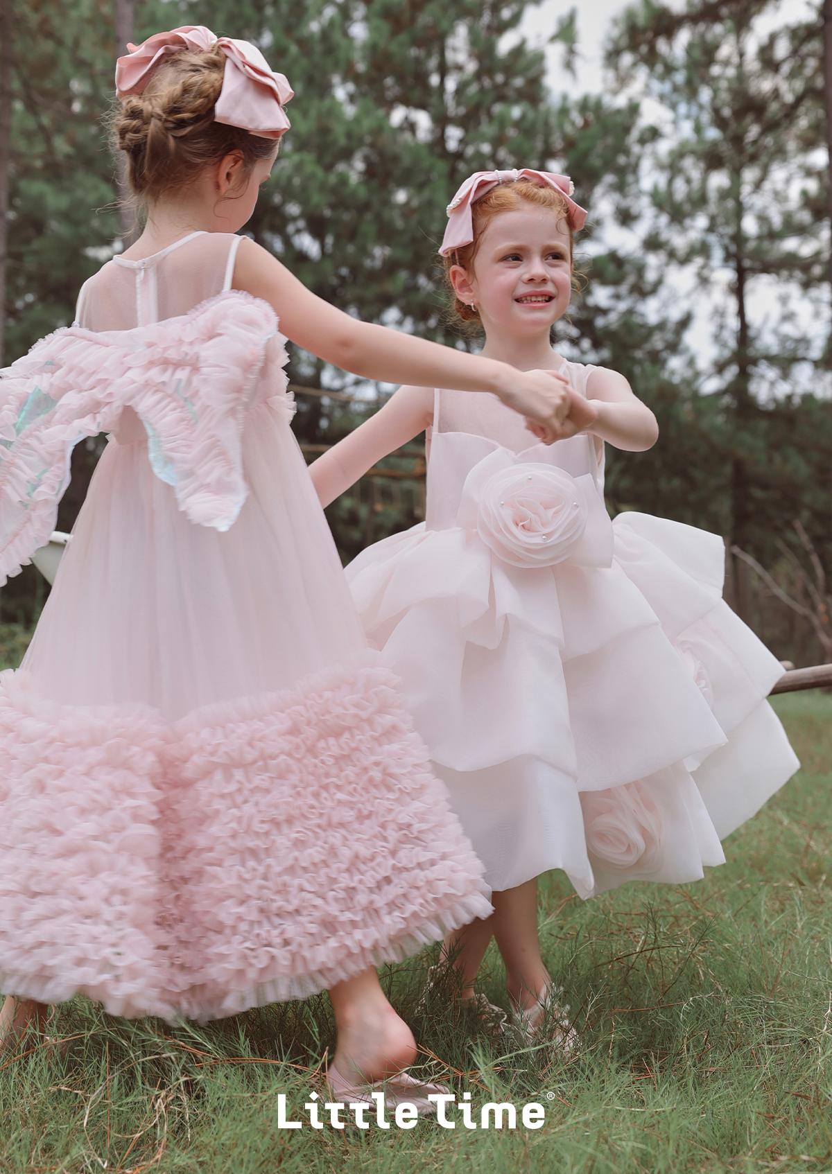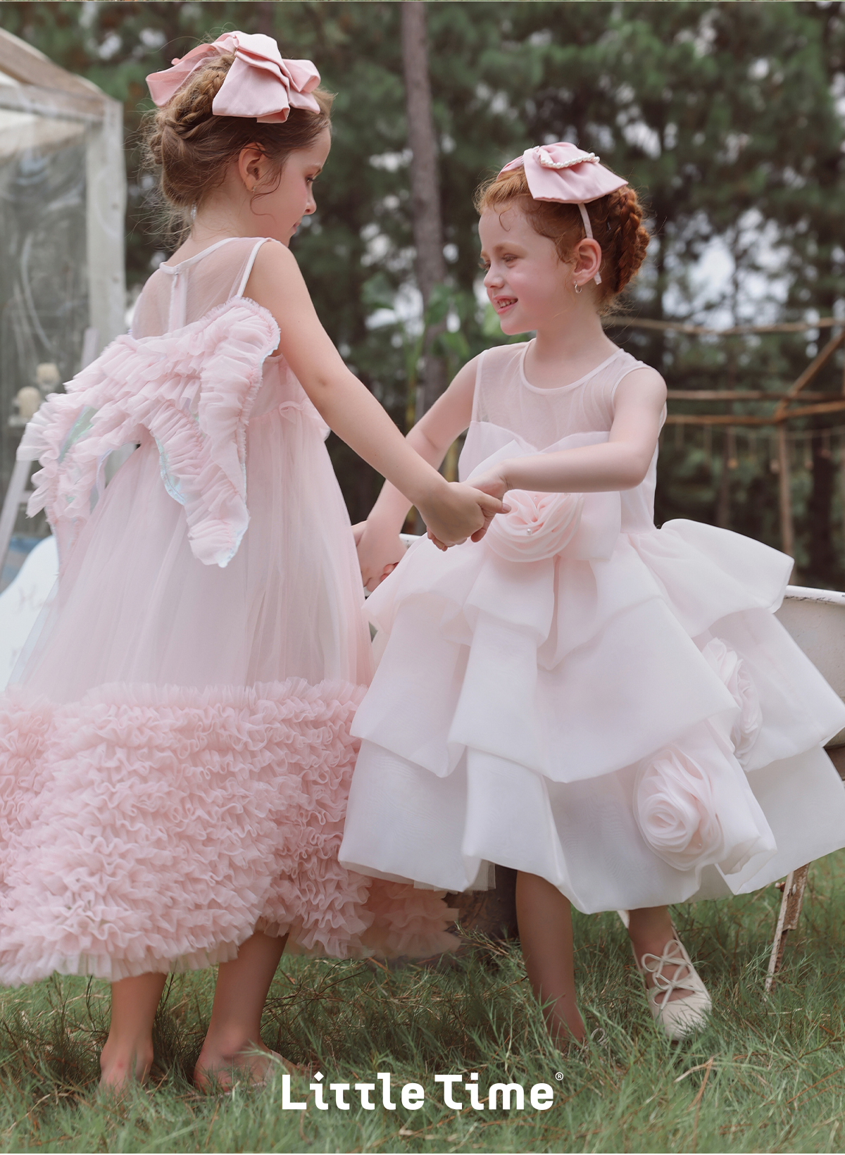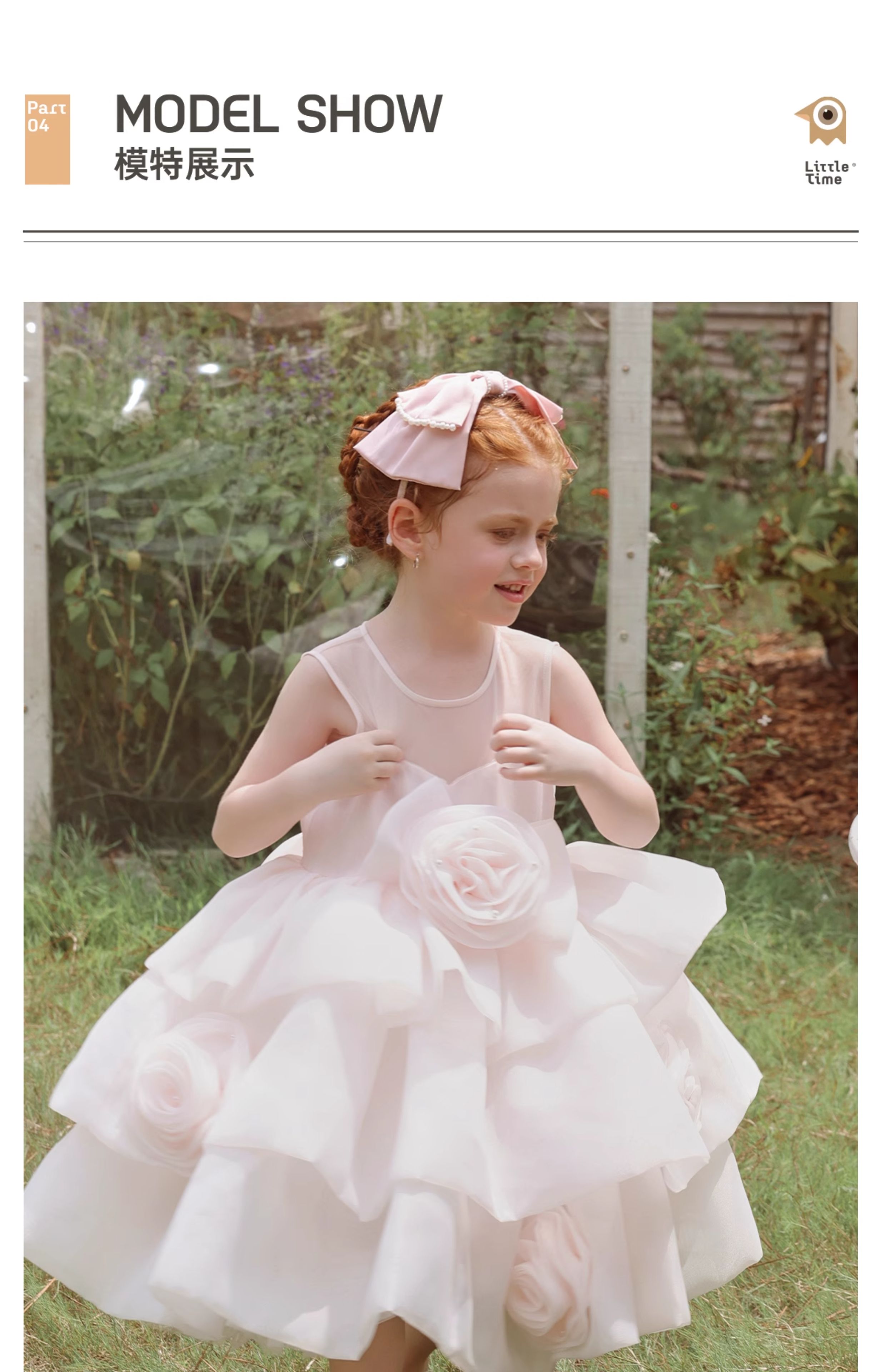 littletime女童连衣裙2025春夏新款儿童洋气时尚玫瑰花蛋糕公主裙