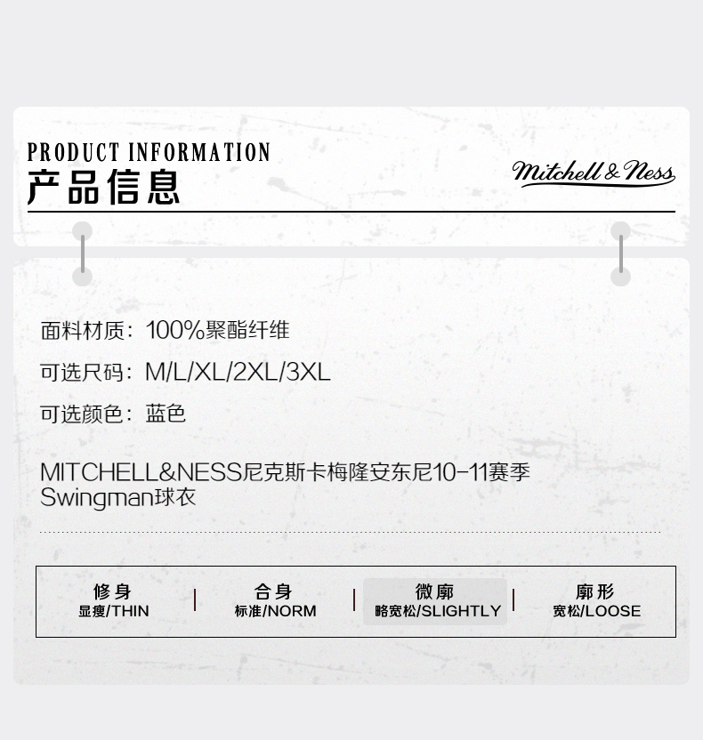 Mitchell&Ness 尼克斯安东尼 10-11赛季球衣 蓝色