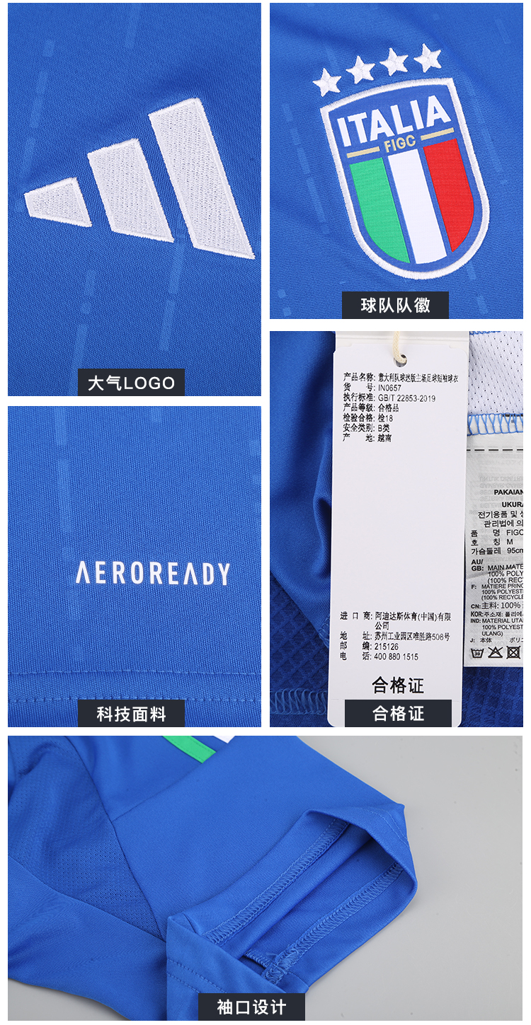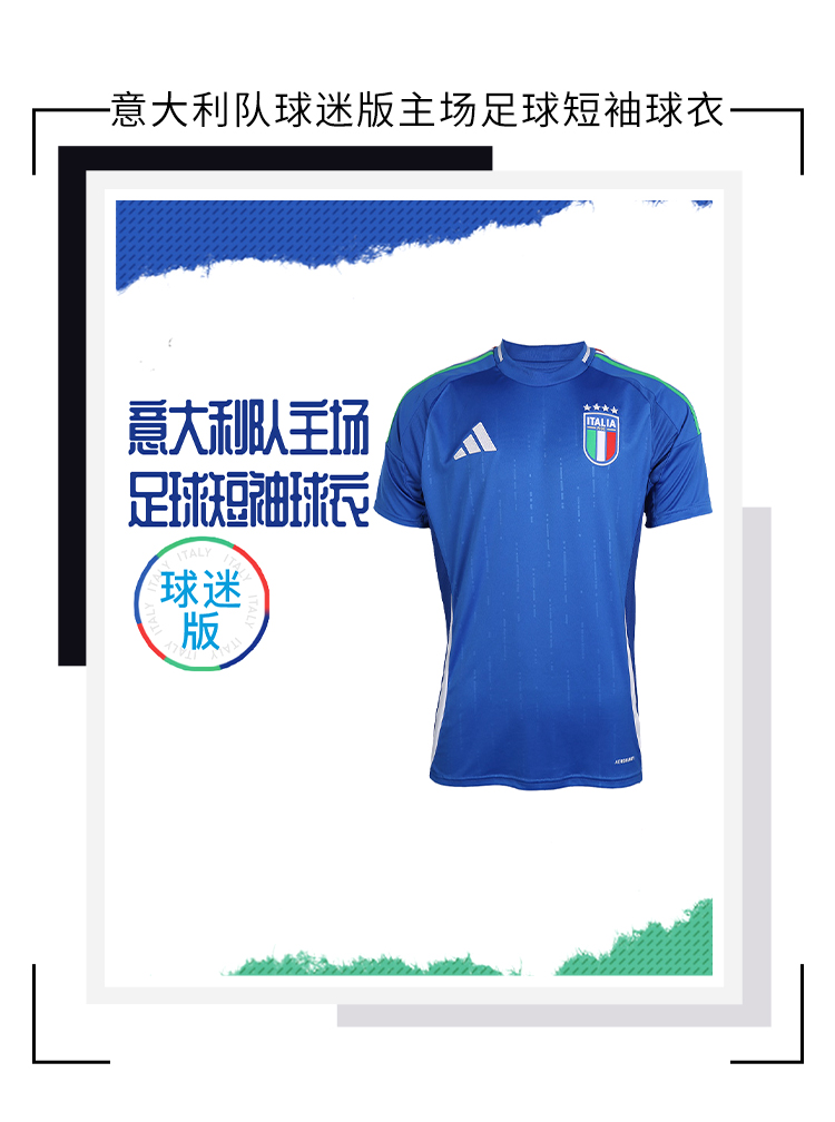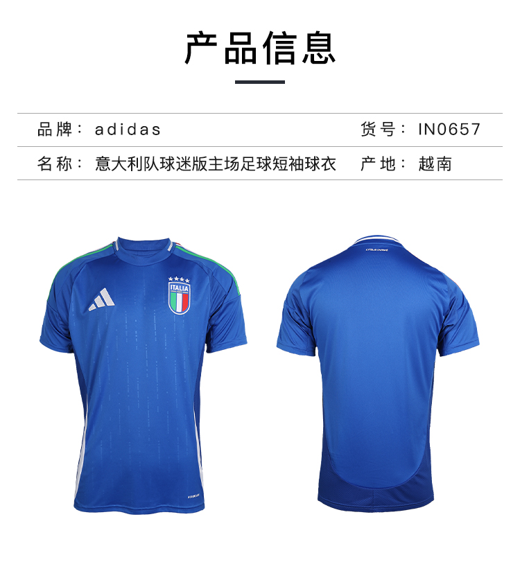 小李子ADIDAS阿迪达斯欧洲杯2024意大利队球迷版主场足球短袖球衣成人男IN0657