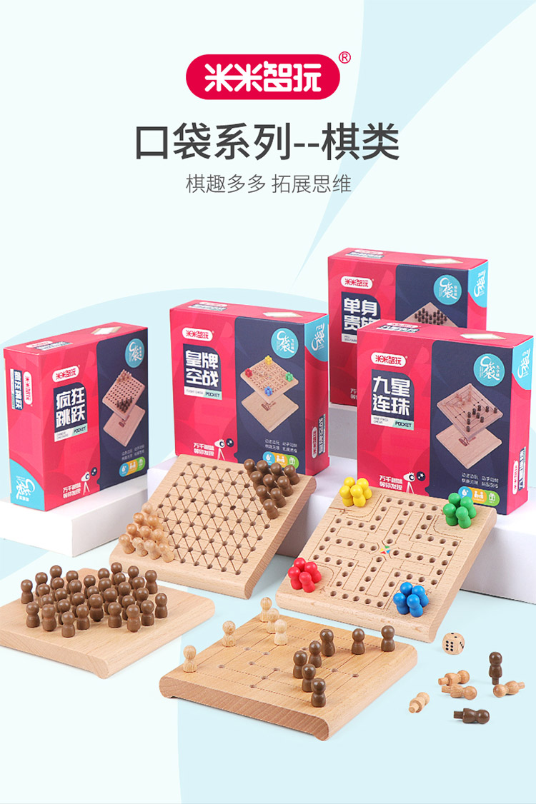 米米智玩口袋棋儿童多功能益智玩具木制迷你棋类桌游儿童生日礼物