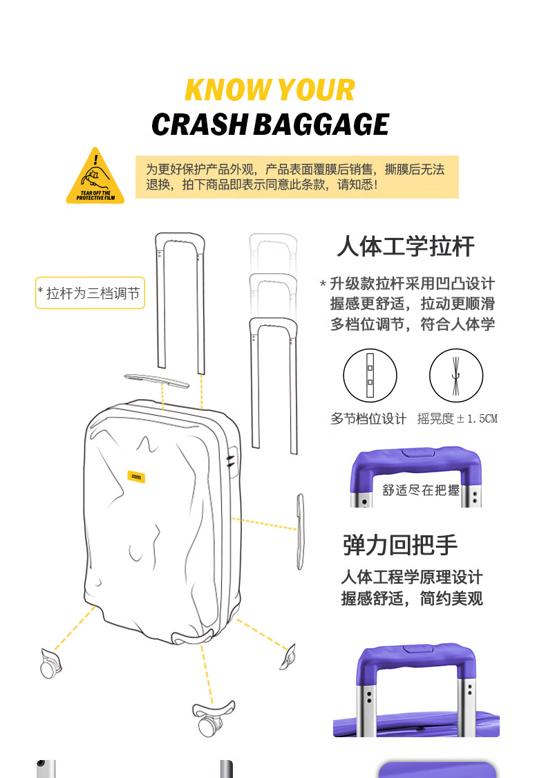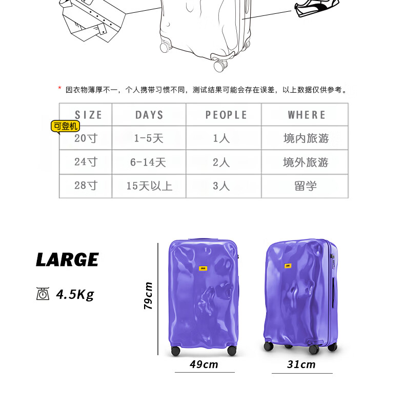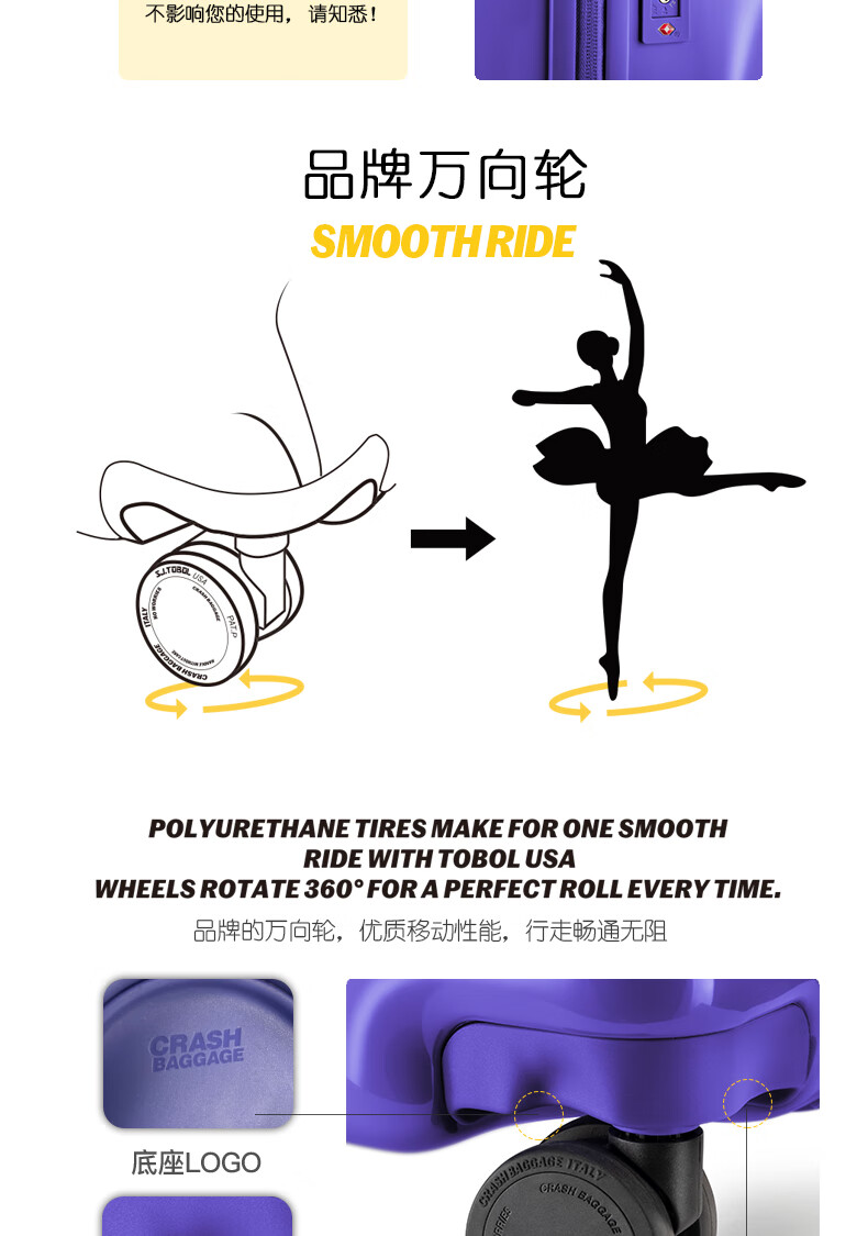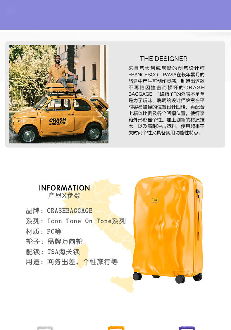Crash Baggage ICON系列亮面 行李箱拉杆箱登机箱破损旅行箱万向轮 Melon