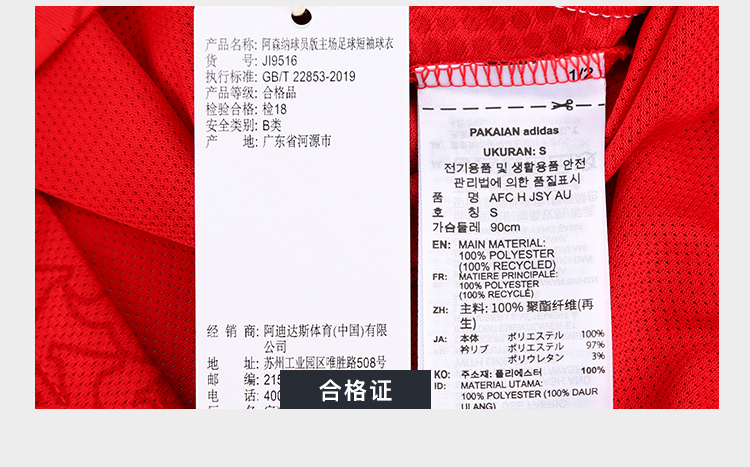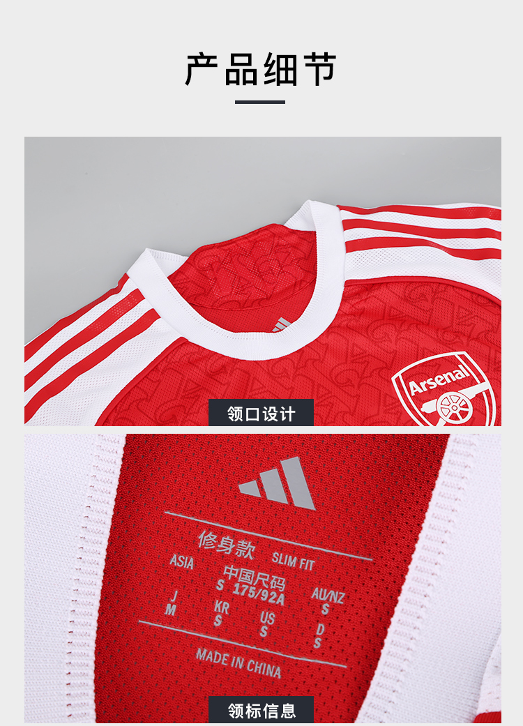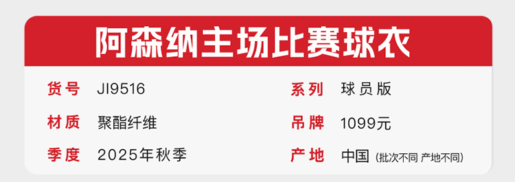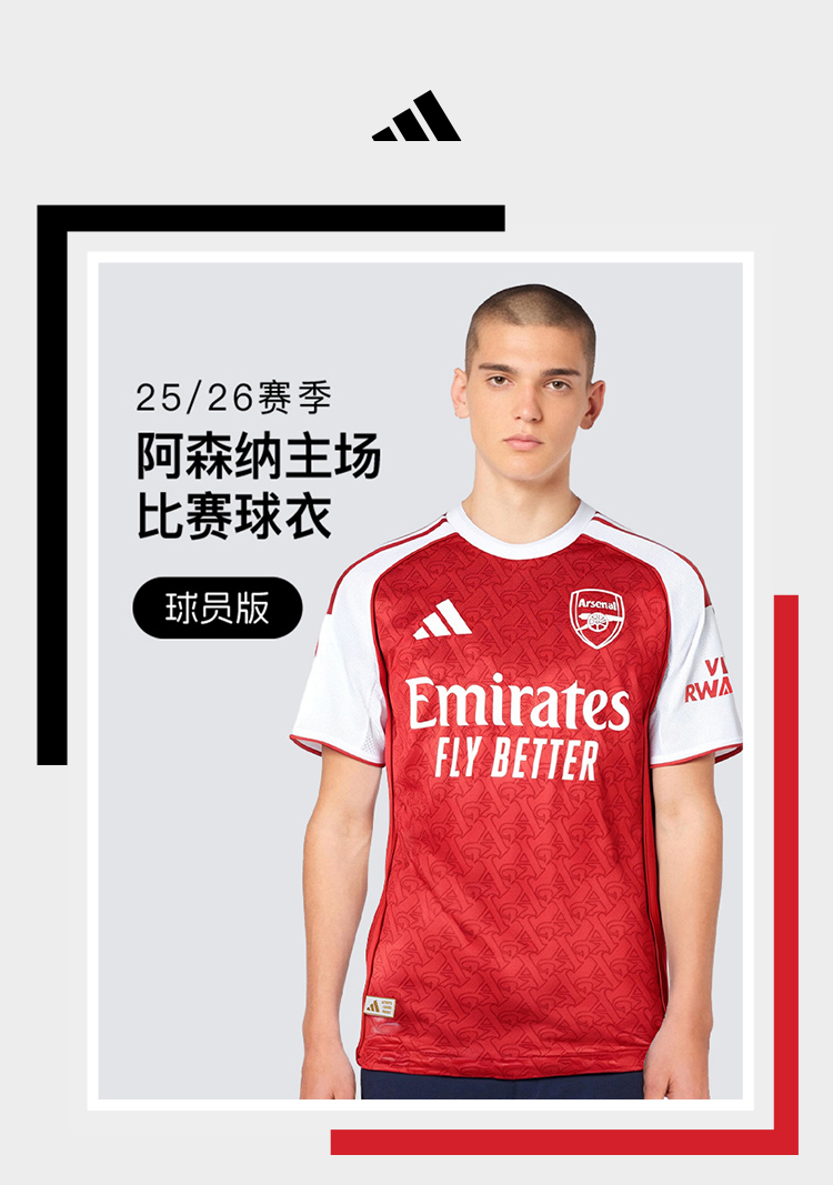 小李子阿迪达斯25/26赛季阿森纳球员版主场比赛球衣成人男JI9516
