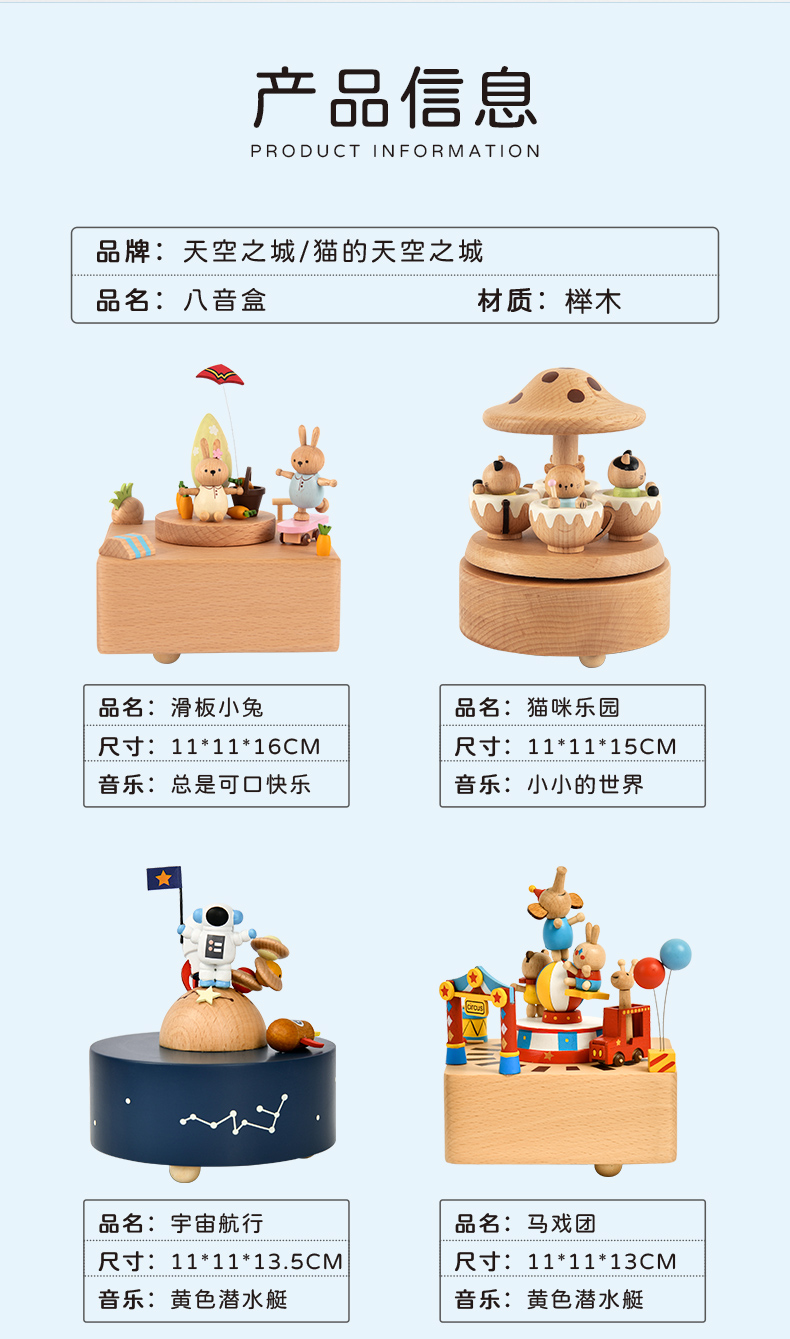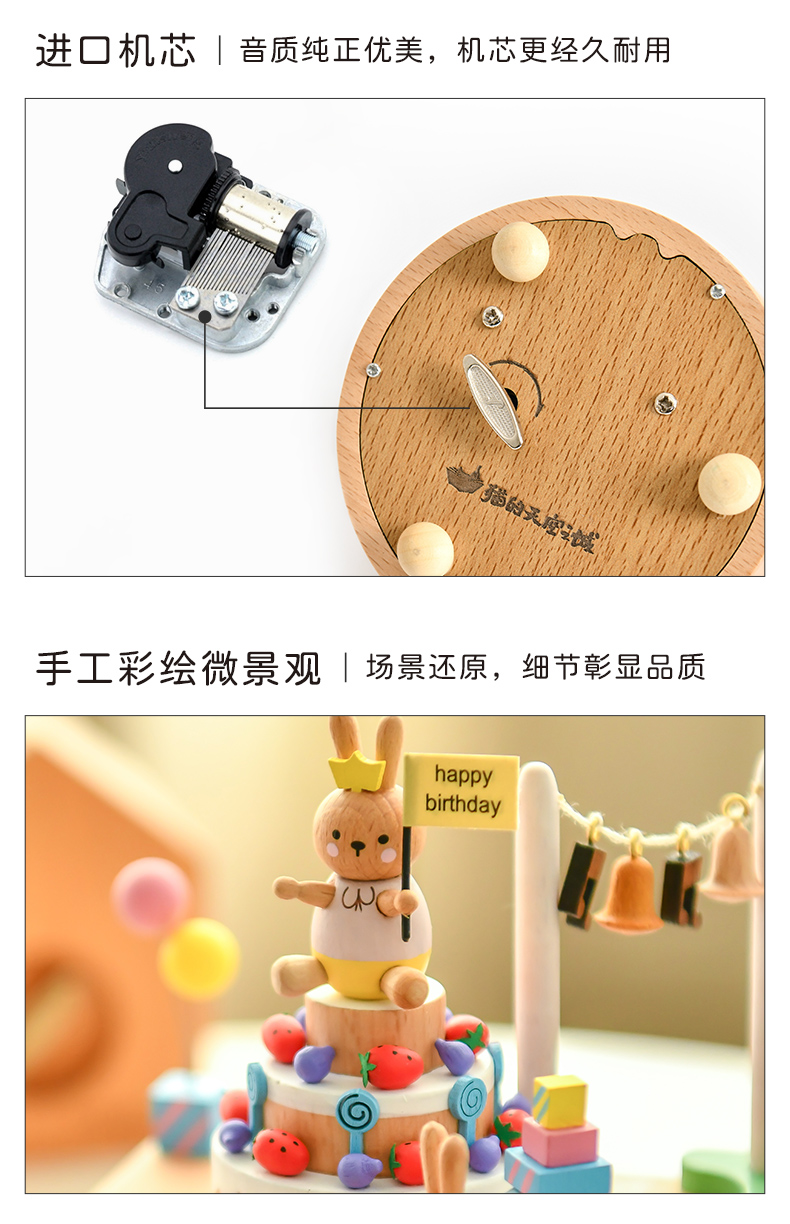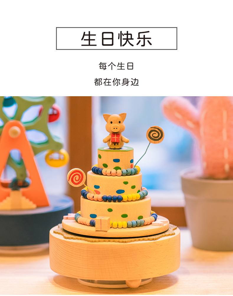 猫的天空之城八音盒《生日快乐》(定制款)木质卡通女生音乐盒机械生日礼物