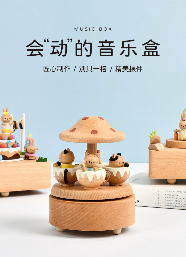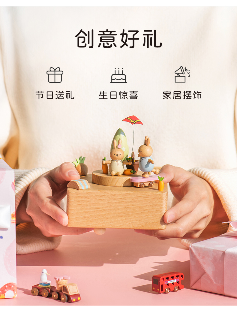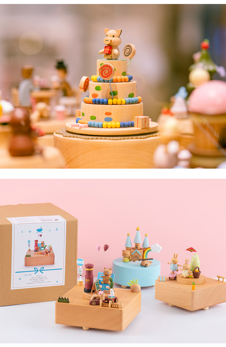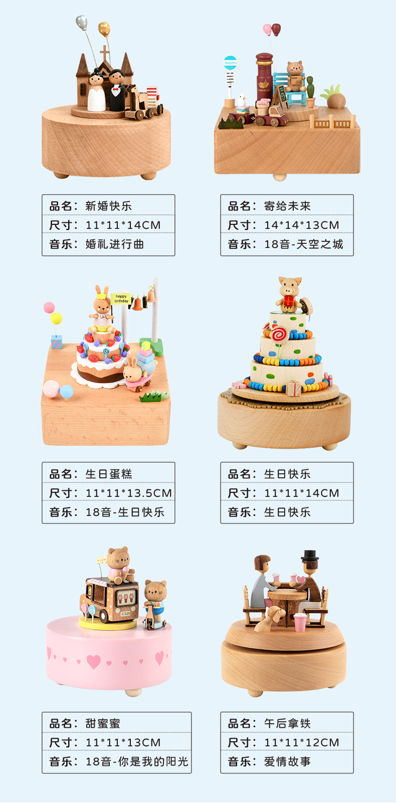 猫的天空之城八音盒《生日快乐》(定制款)木质卡通女生音乐盒机械生日礼物