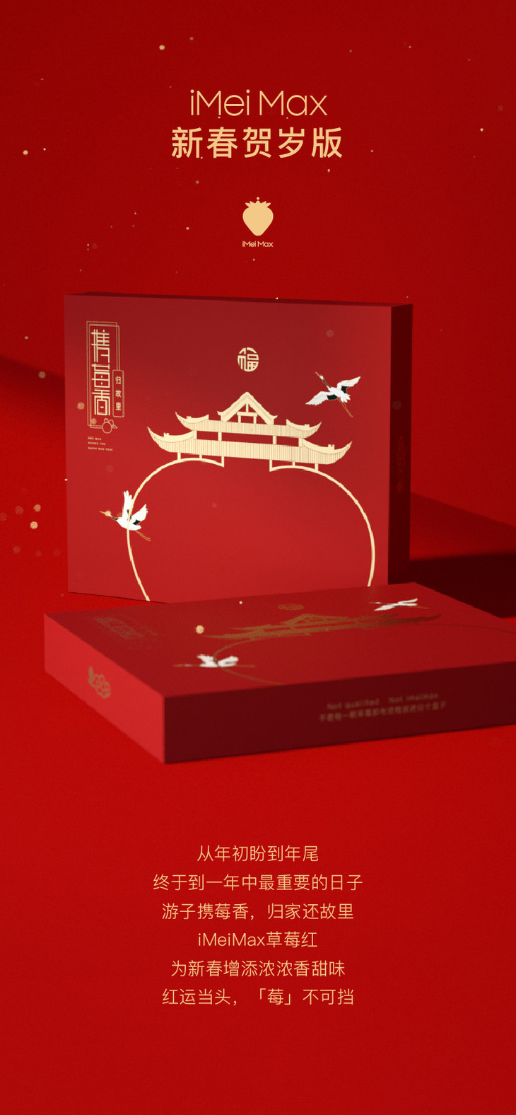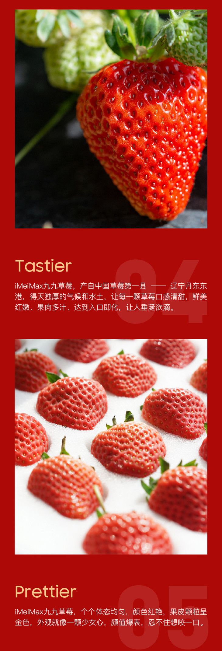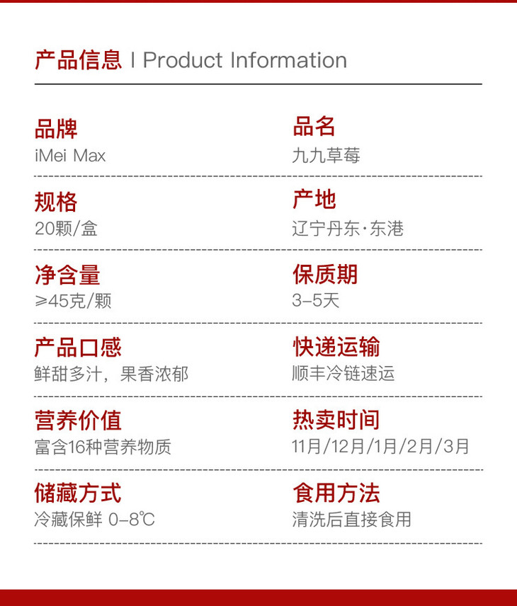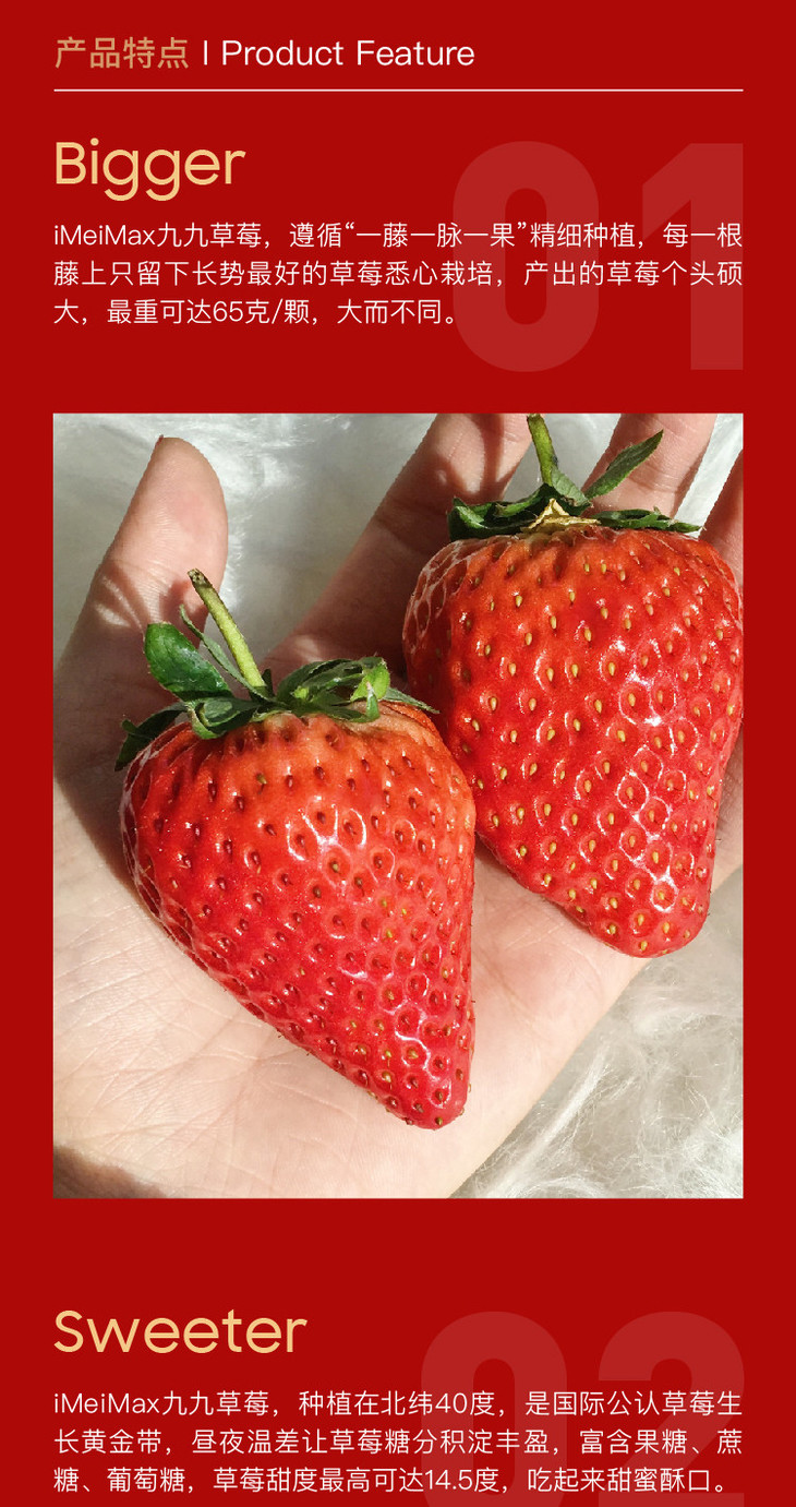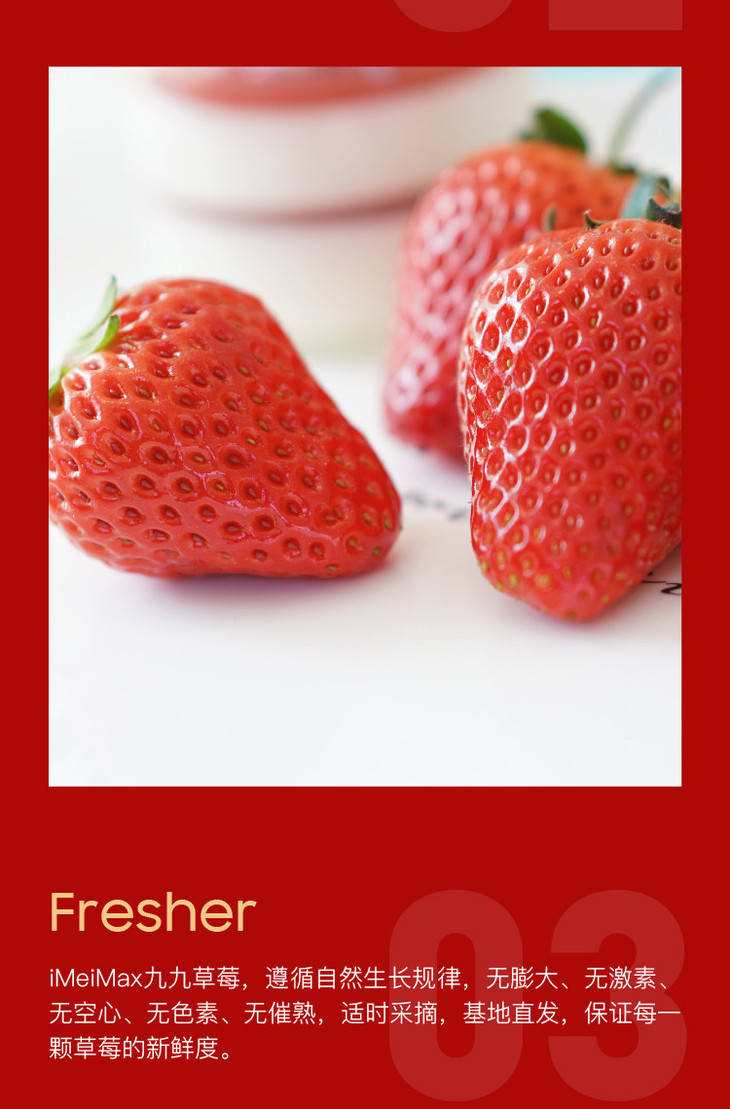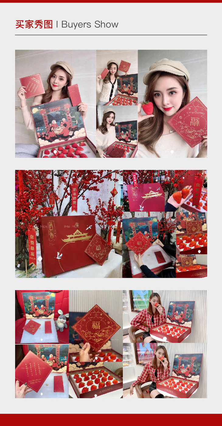5天内发货 | iMeiMax 新春贺岁版 丹东99红颜新鲜草莓 20颗/盒 个重≥45克[福利品]