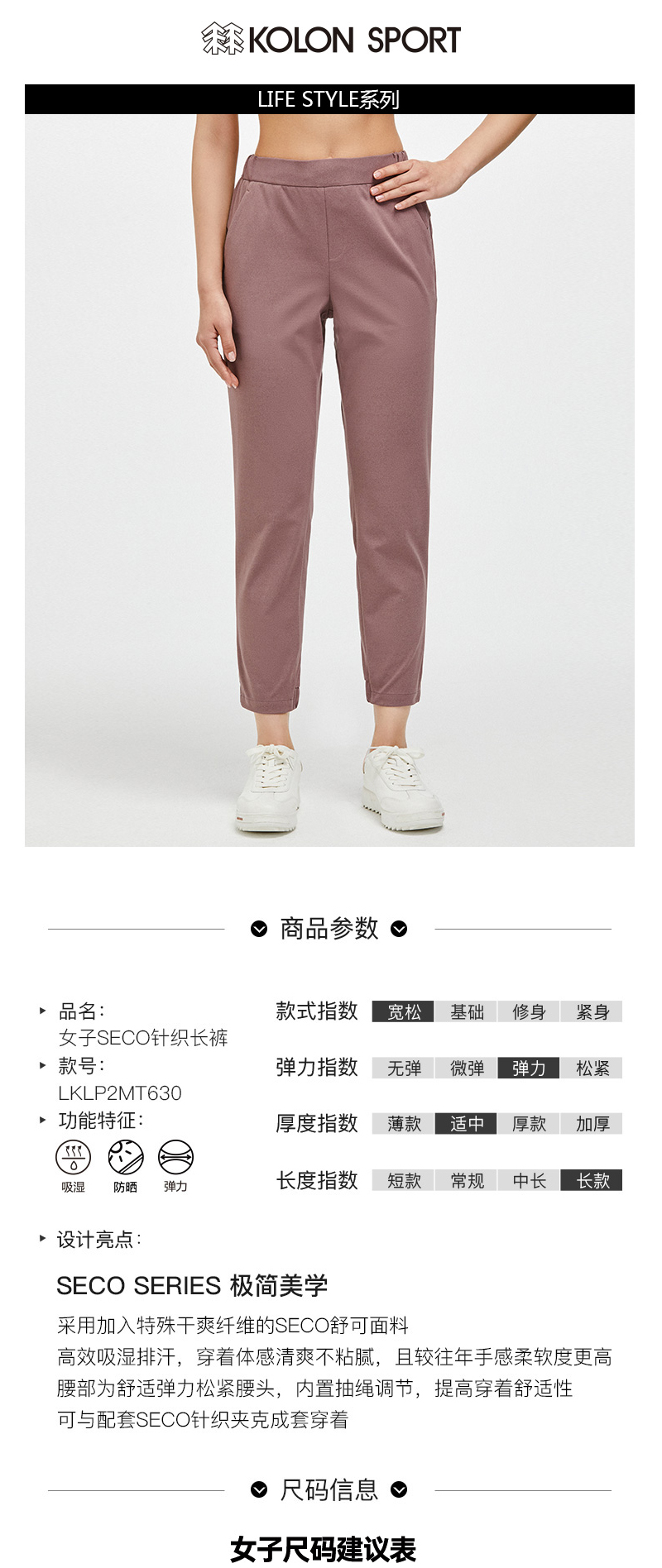 KOLONSPORT可隆长裤女款裤子防晒运动裤户外休闲裤LKLP2MT630