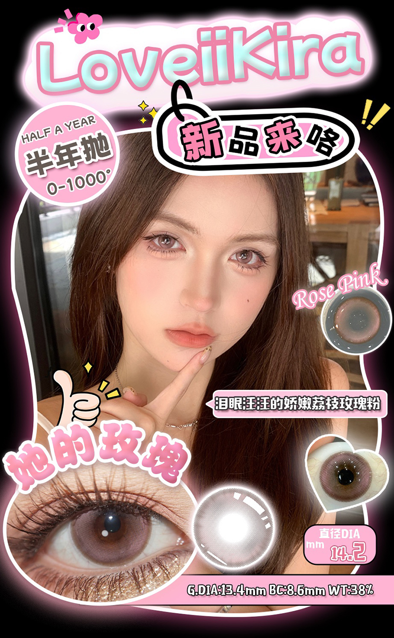 Loveiikira 她的玫瑰 半年抛 两片 14.2mm 参考着色 13.4mm 基弧 8.6 含水 38% 新锐国货