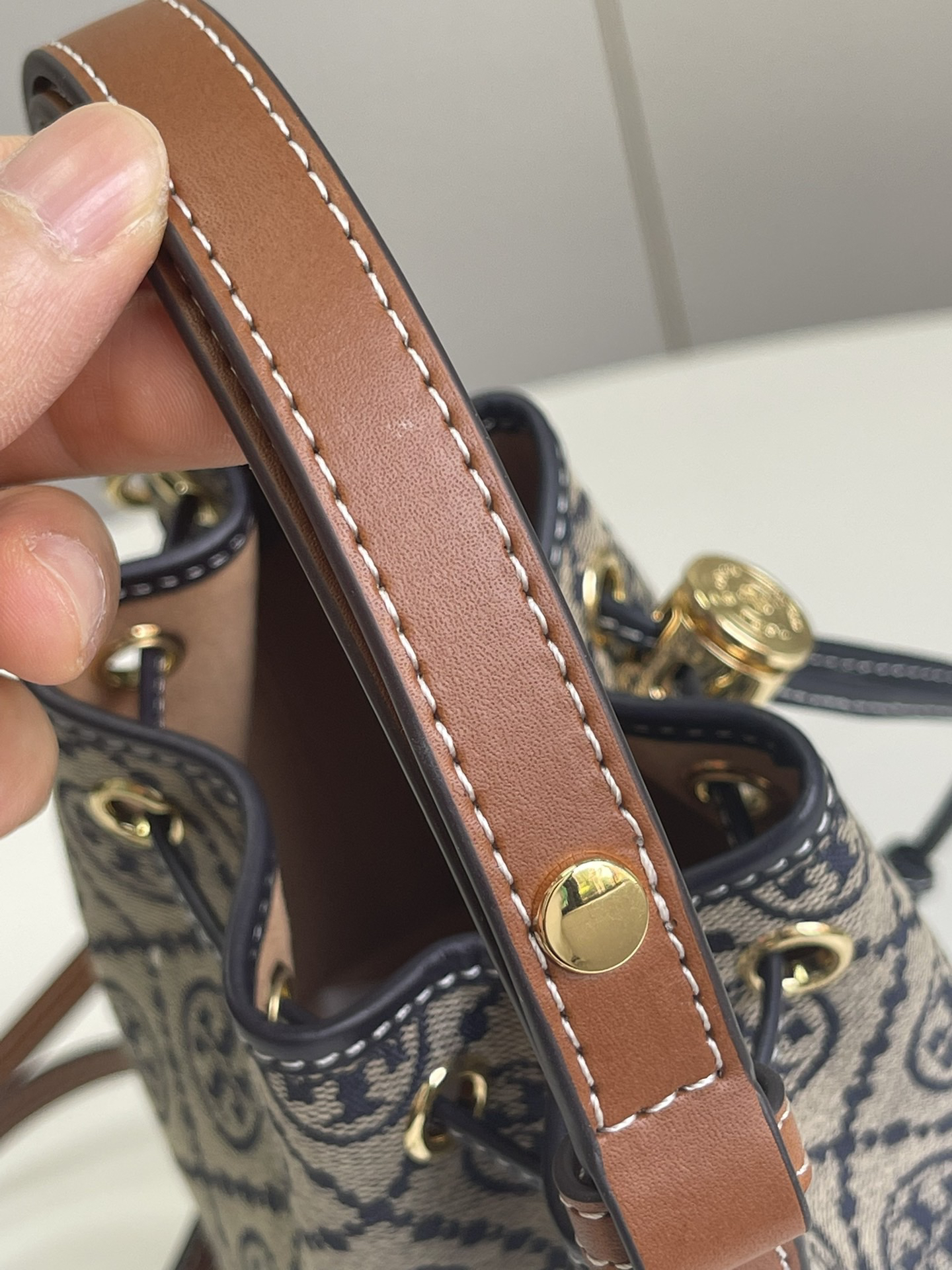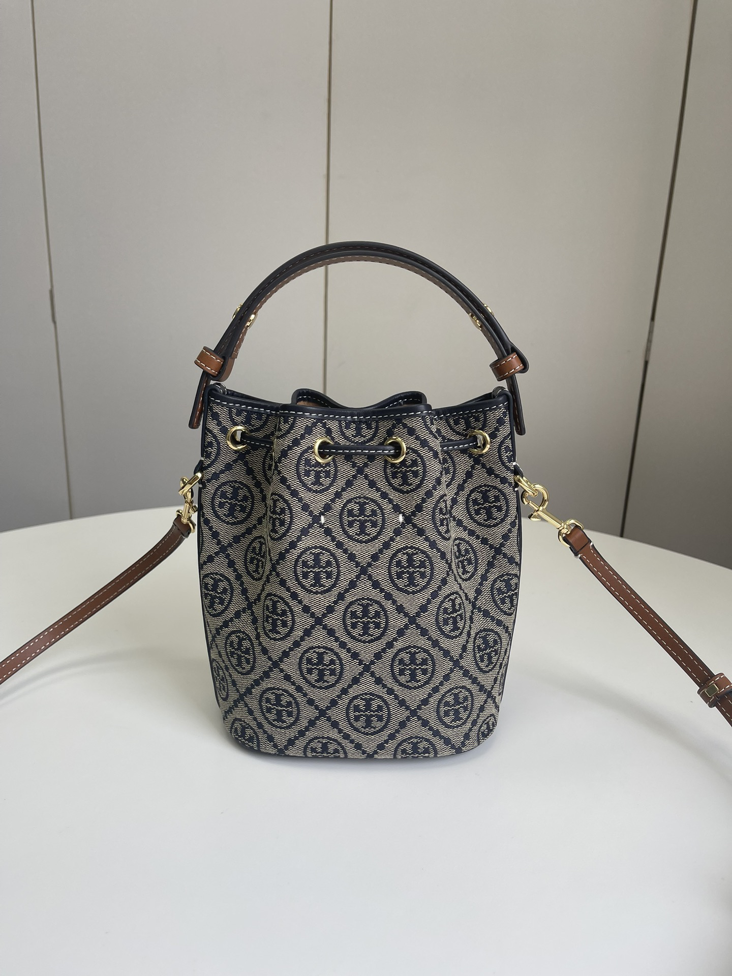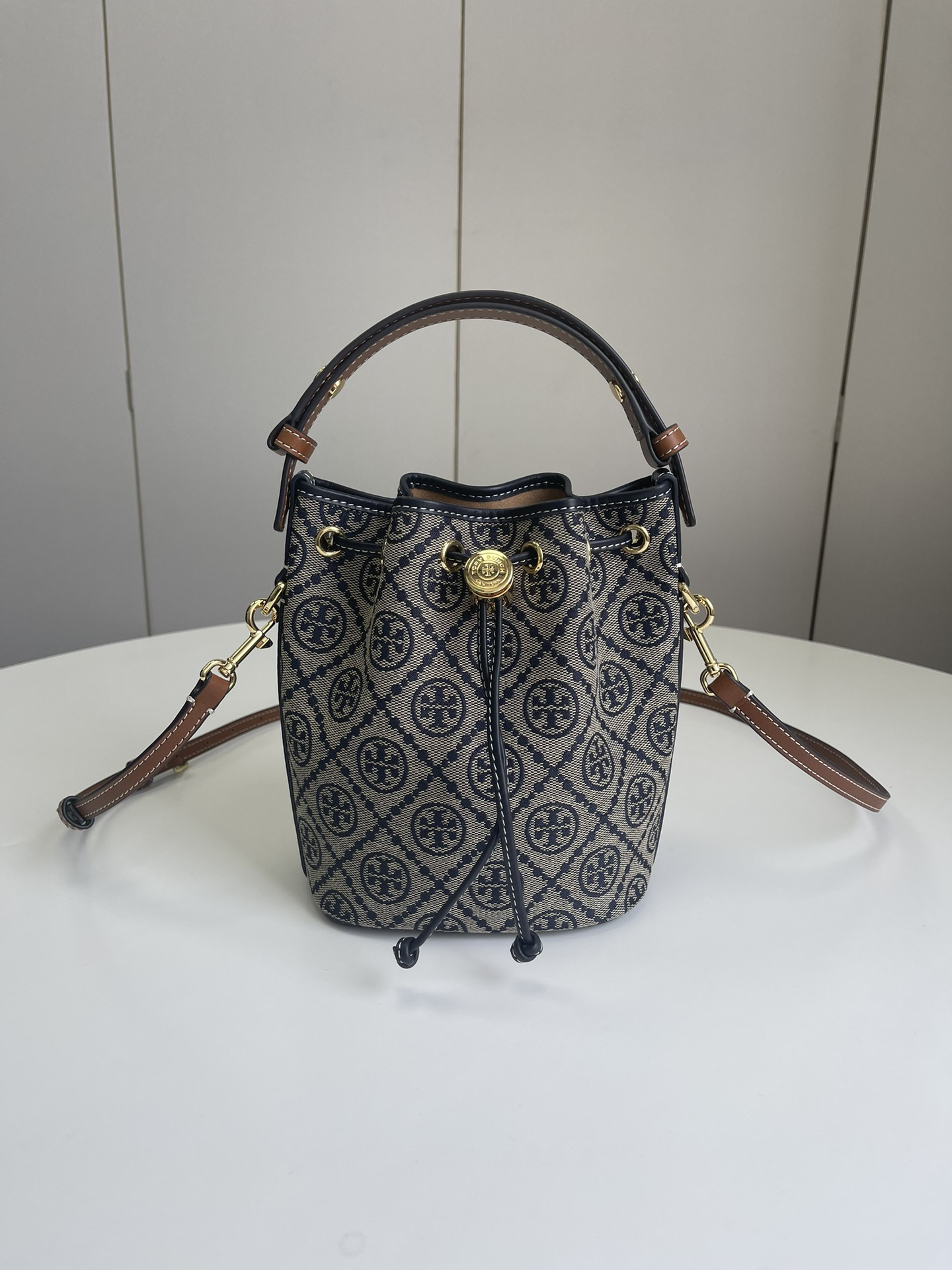 迷你!火爆款!🐭TB最新款!T Monogram提花水桶包!最新款 手提包 斜挎包 水桶包,⚠️100%全进口织LOGO客供面料 搭配进口牛皮,袋口索绳 可以收紧,肩带可以调节,出行一包搞定!质量细节完美!配原厂挂牌和防尘袋!尺寸:长14*高18*宽9