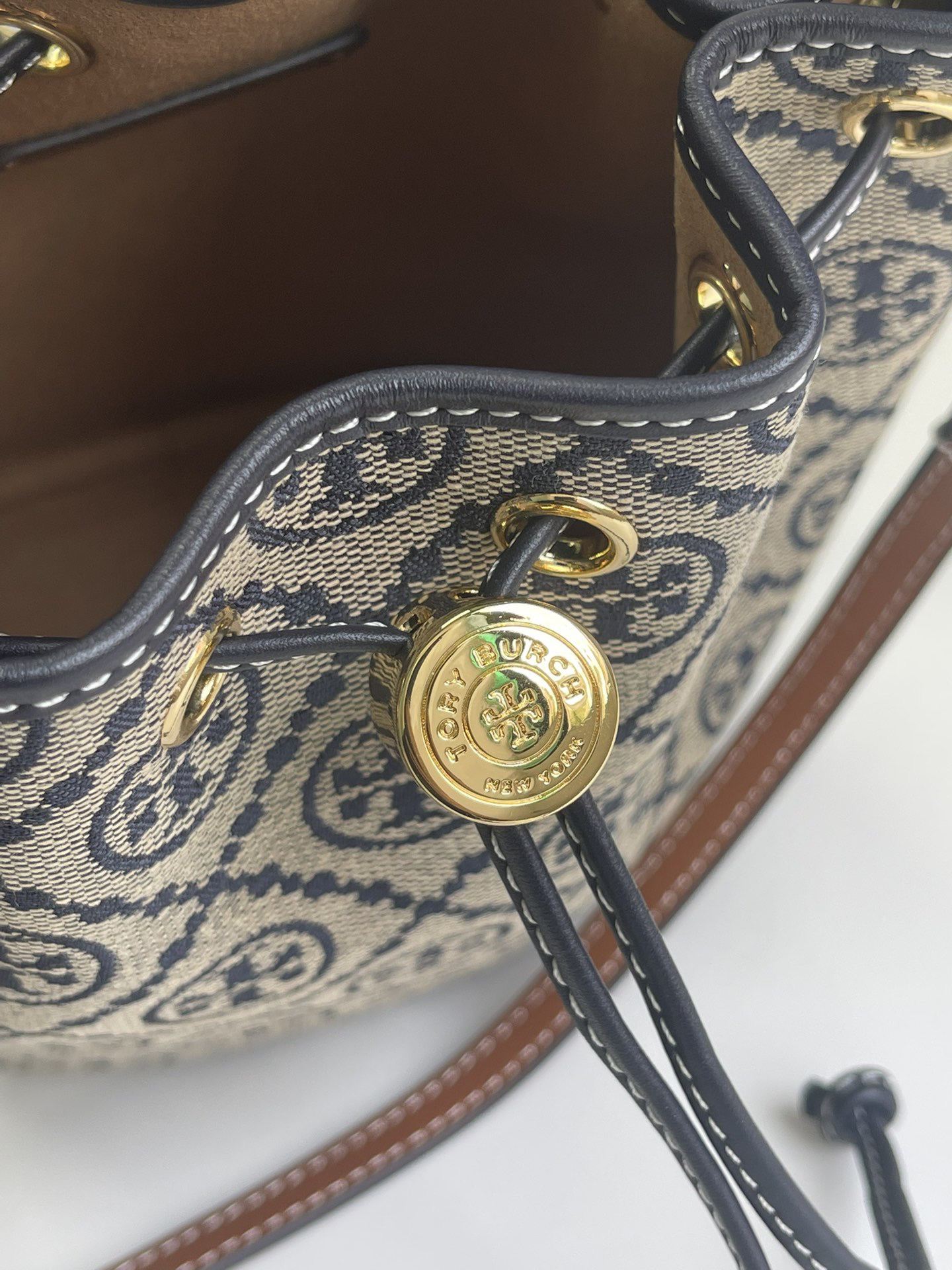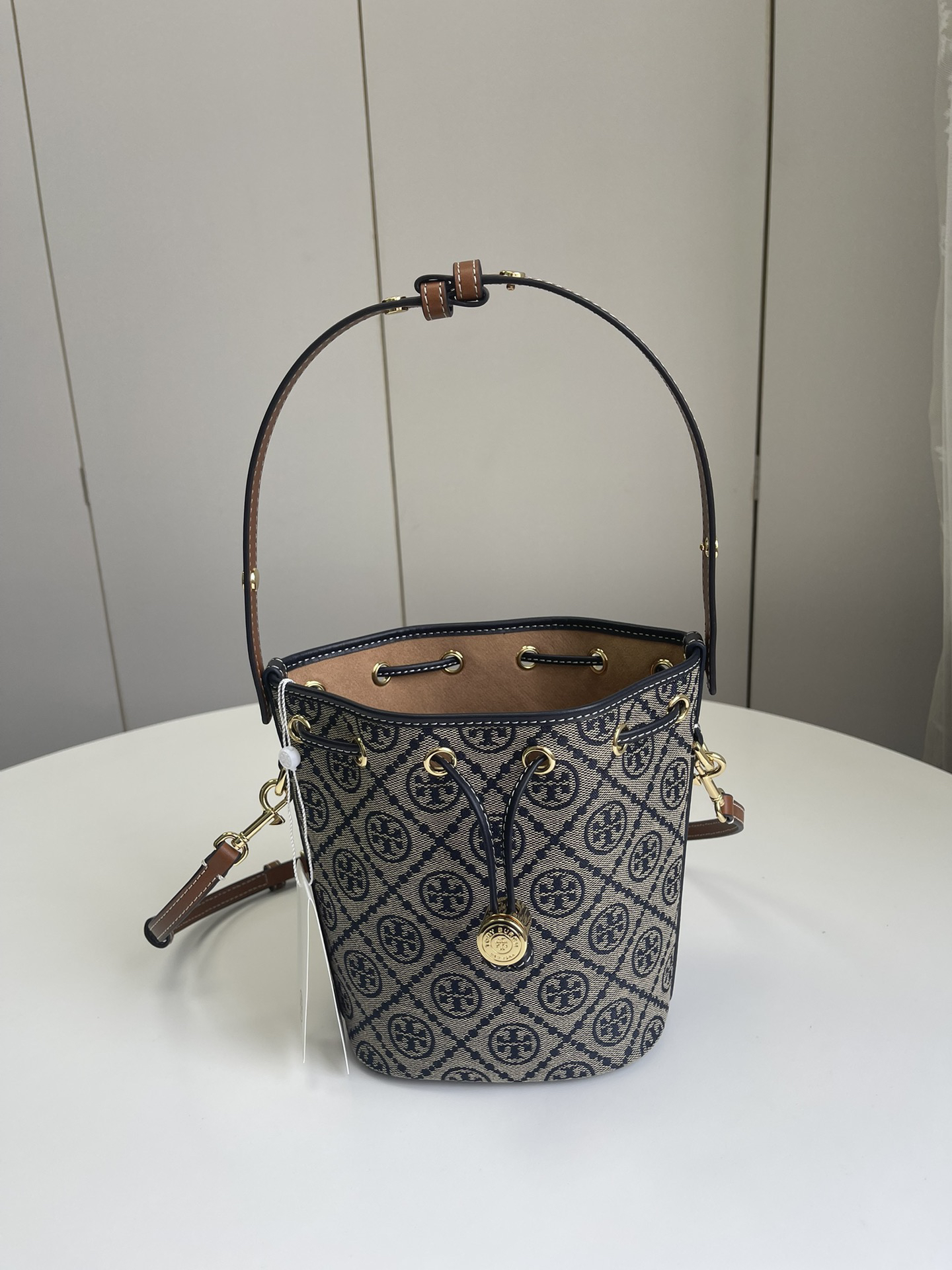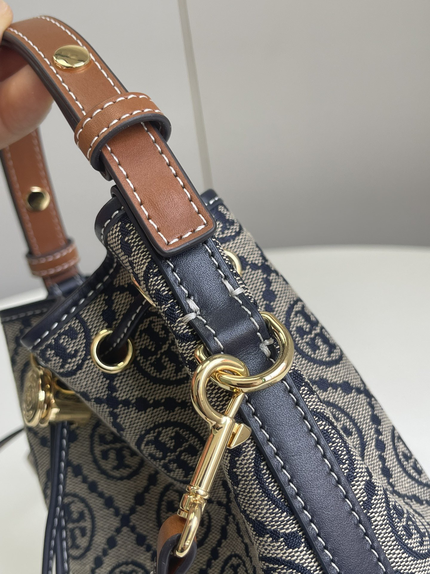 迷你!火爆款!🐭TB最新款!T Monogram提花水桶包!最新款 手提包 斜挎包 水桶包,⚠️100%全进口织LOGO客供面料 搭配进口牛皮,袋口索绳 可以收紧,肩带可以调节,出行一包搞定!质量细节完美!配原厂挂牌和防尘袋!尺寸:长14*高18*宽9