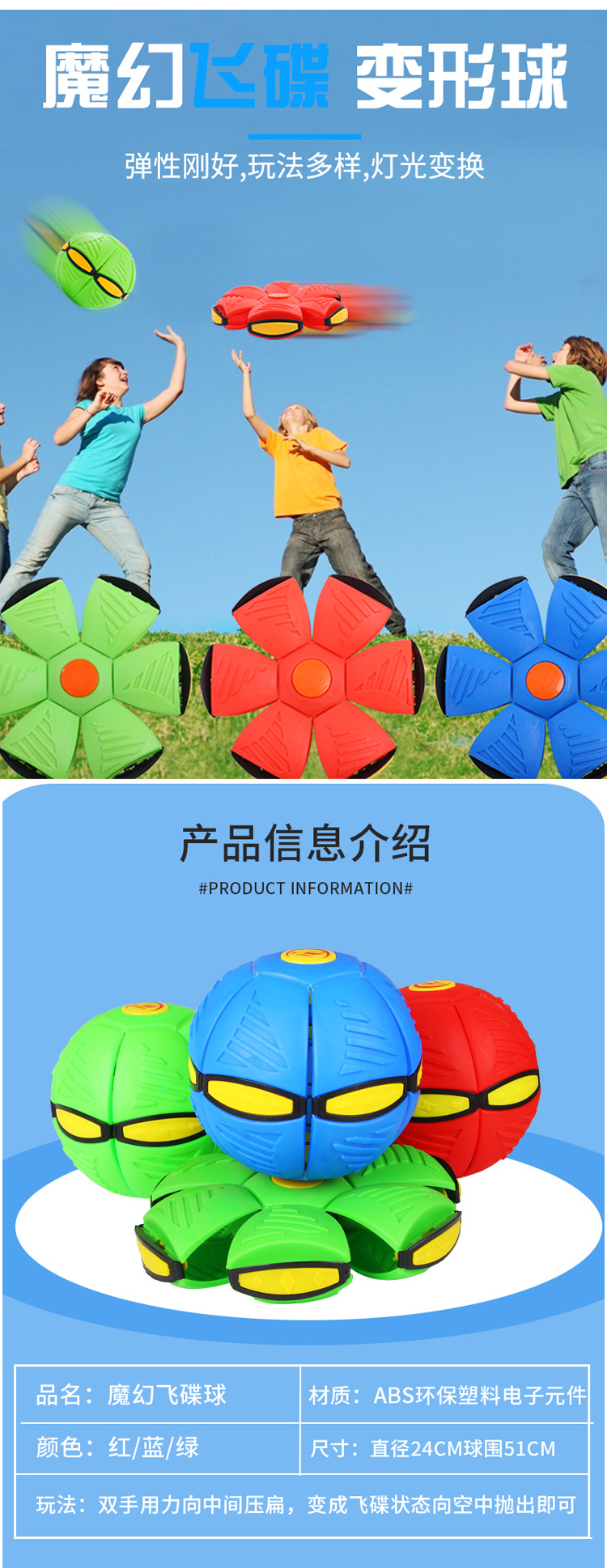 【炫酷灯光 多种玩法】抖音同款弹力踏踏球,宝宝户外魔幻飞碟球,解压发光户外地摊玩具,儿童球类玩具运动脚踩球,亲子互动游戏竞技拍拍球带灯
