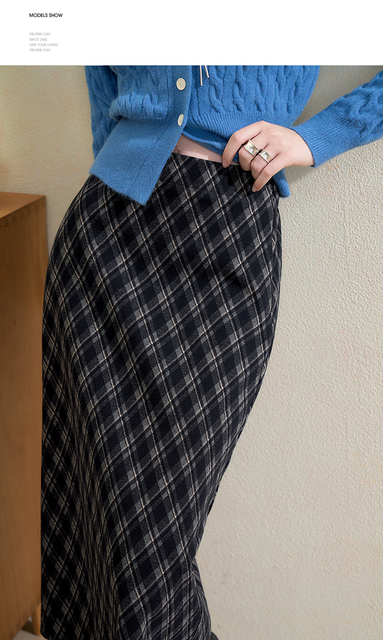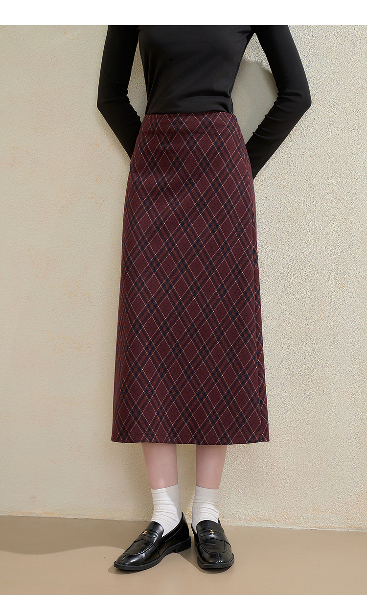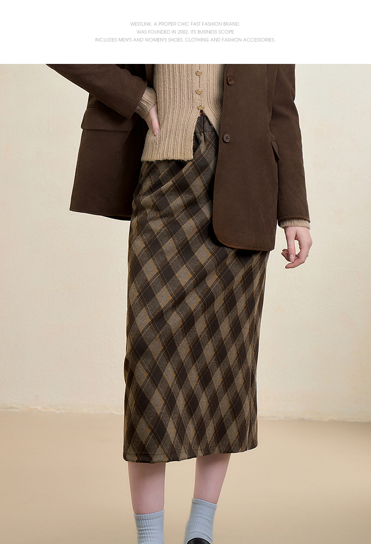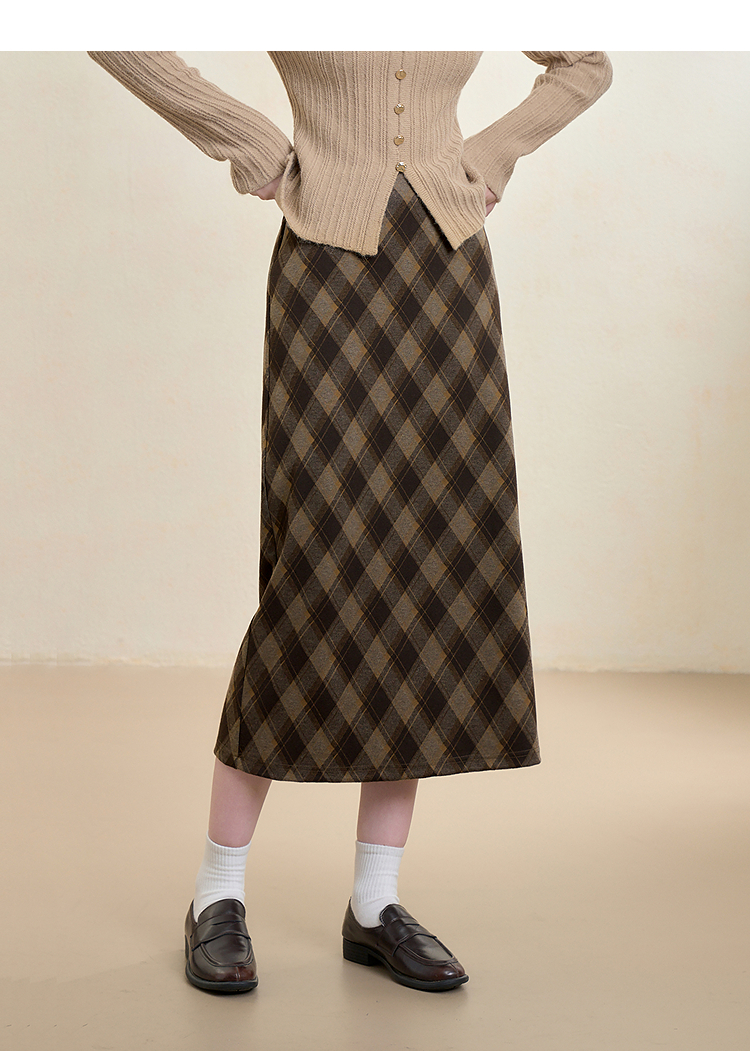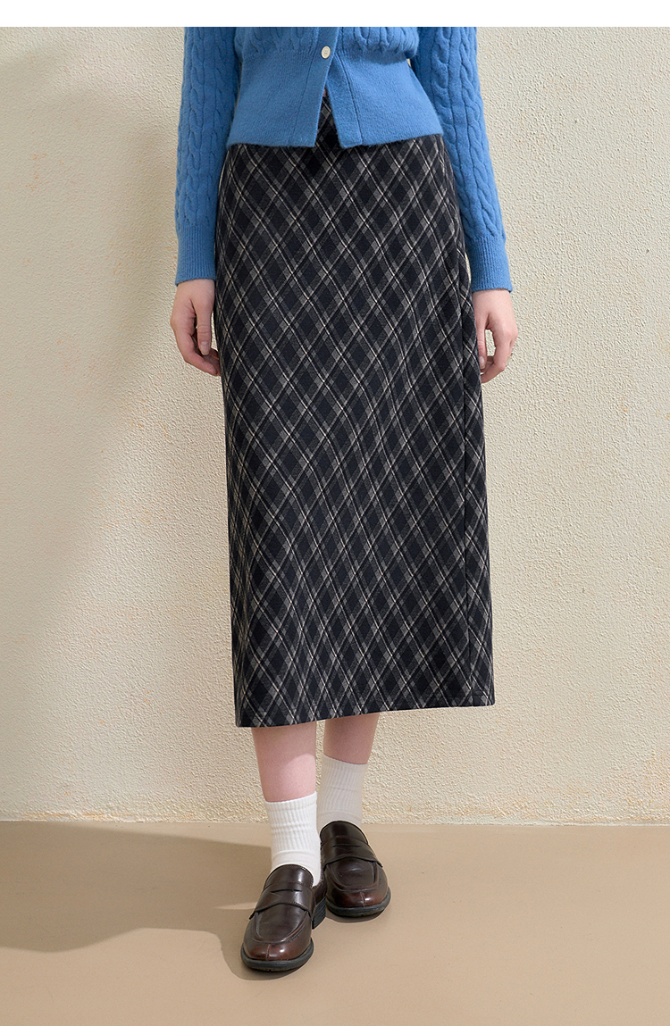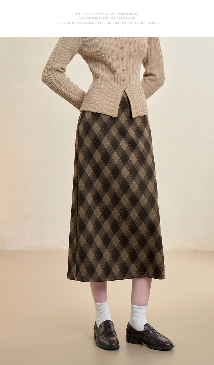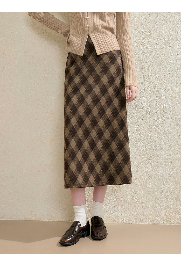 西遇复古棱格毛呢半身裙女秋季新款学院风高腰显瘦直筒中长裙V3355237/V3355195/V3355238