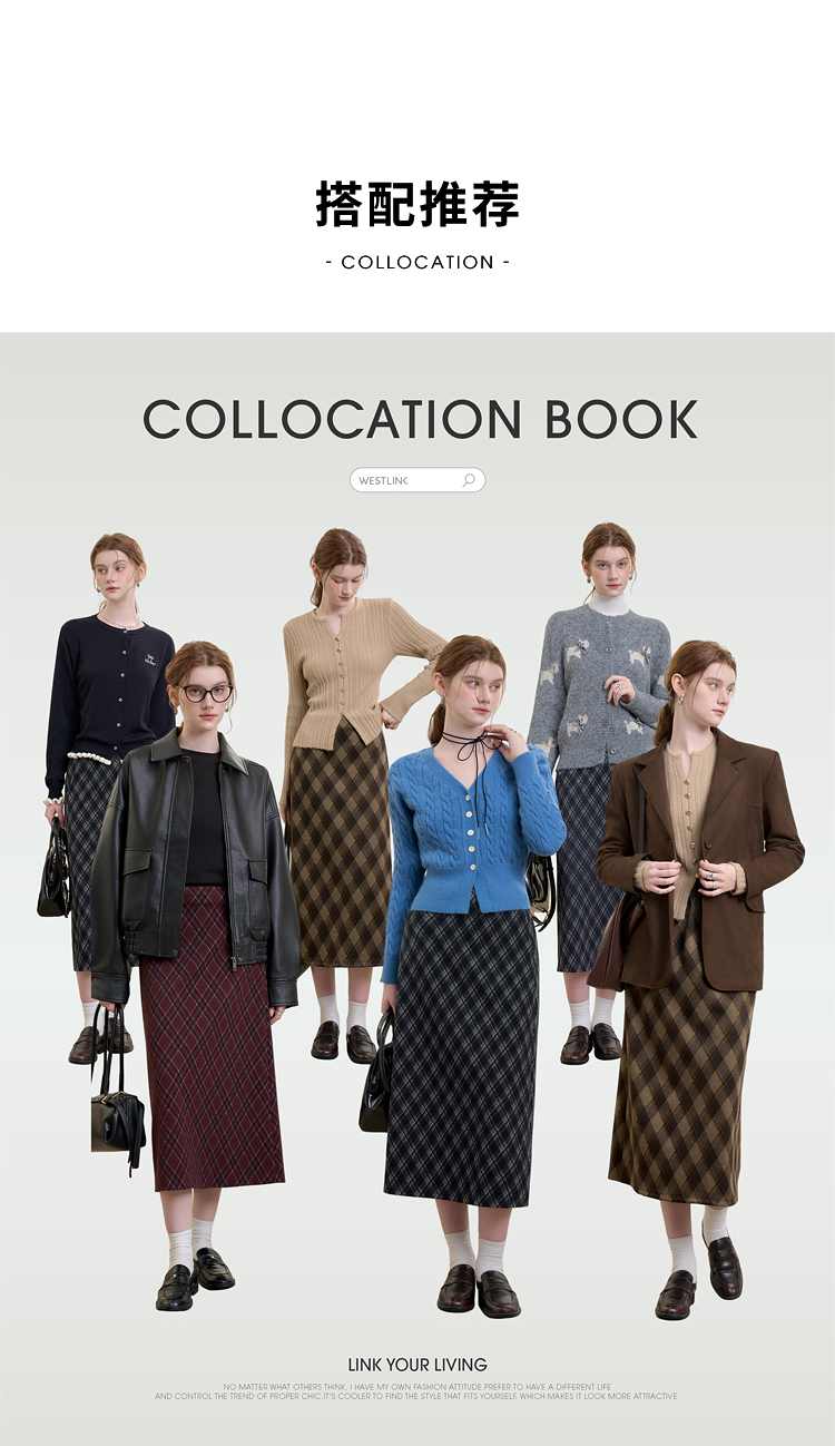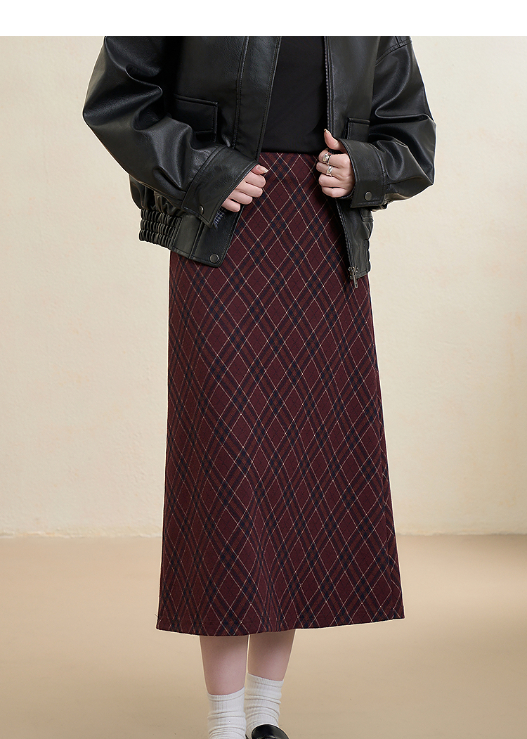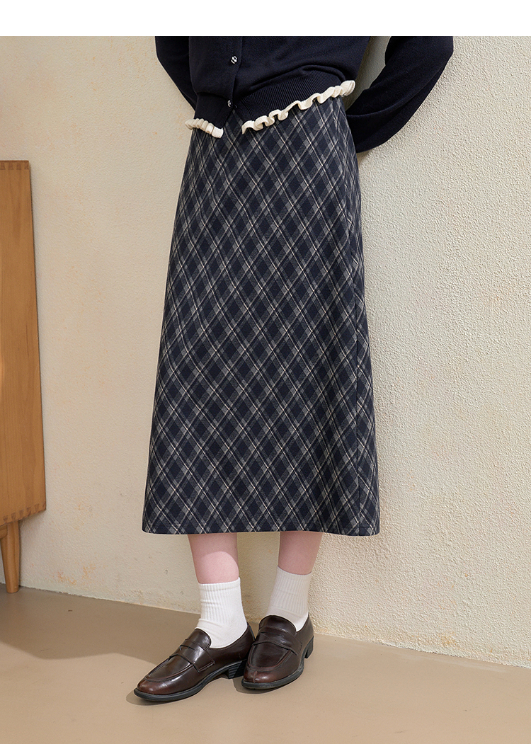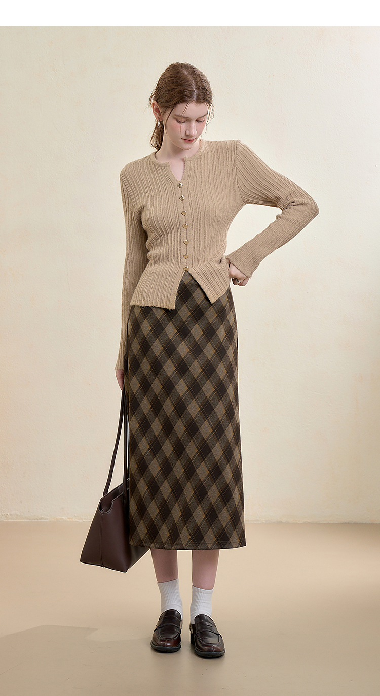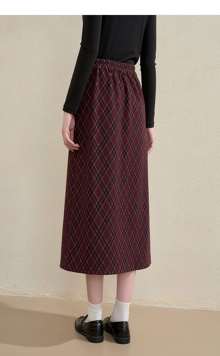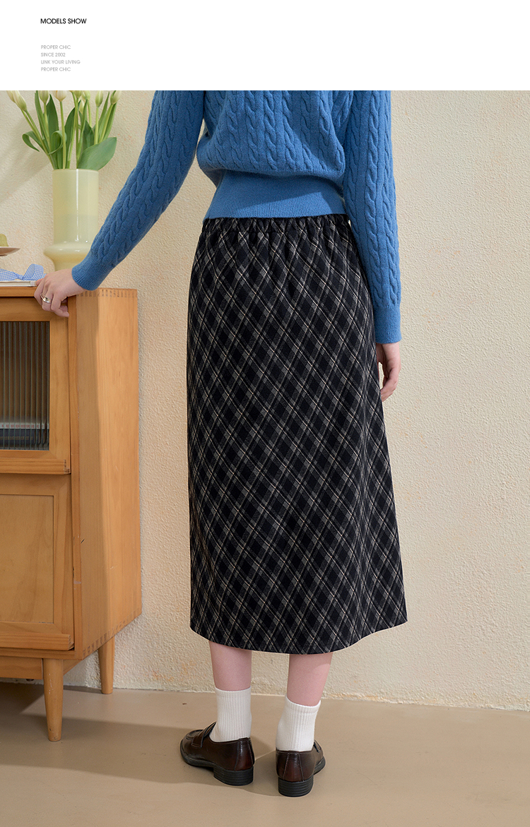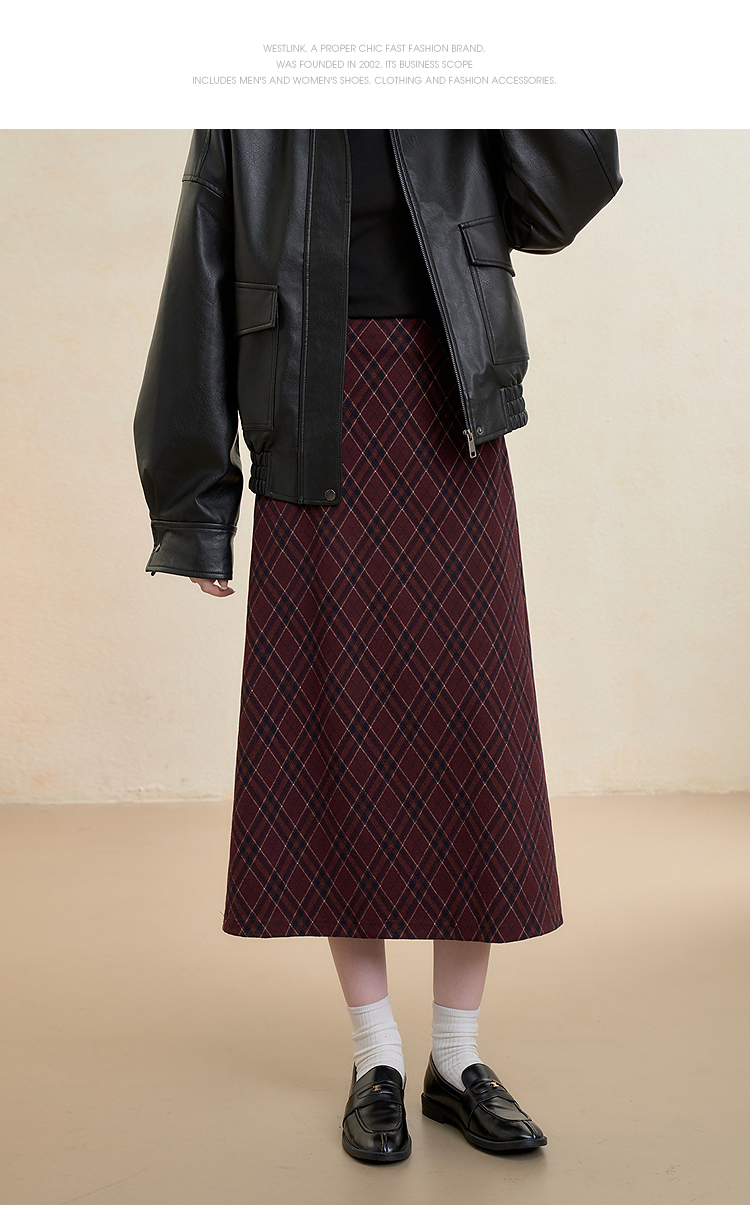 西遇复古棱格毛呢半身裙女秋季新款学院风高腰显瘦直筒中长裙V3355237/V3355195/V3355238