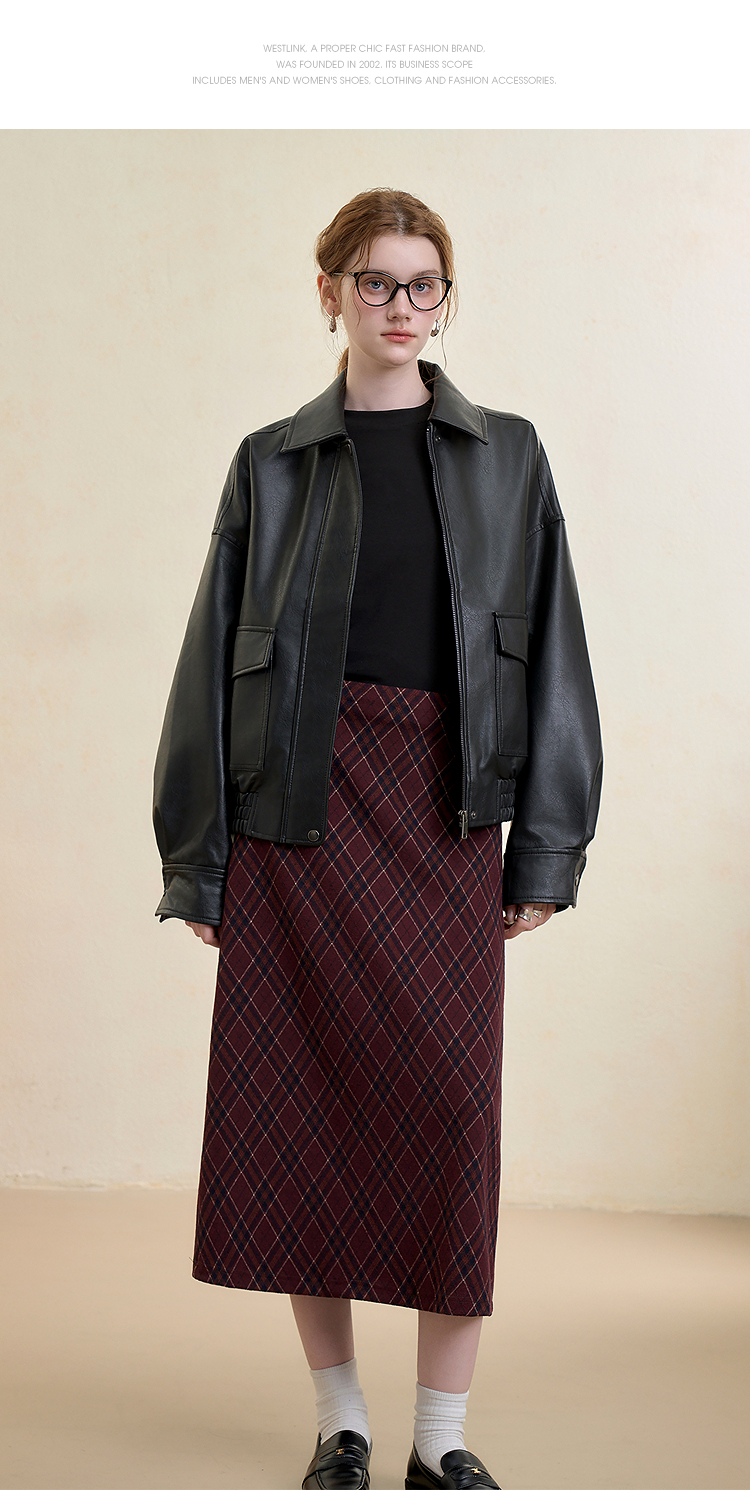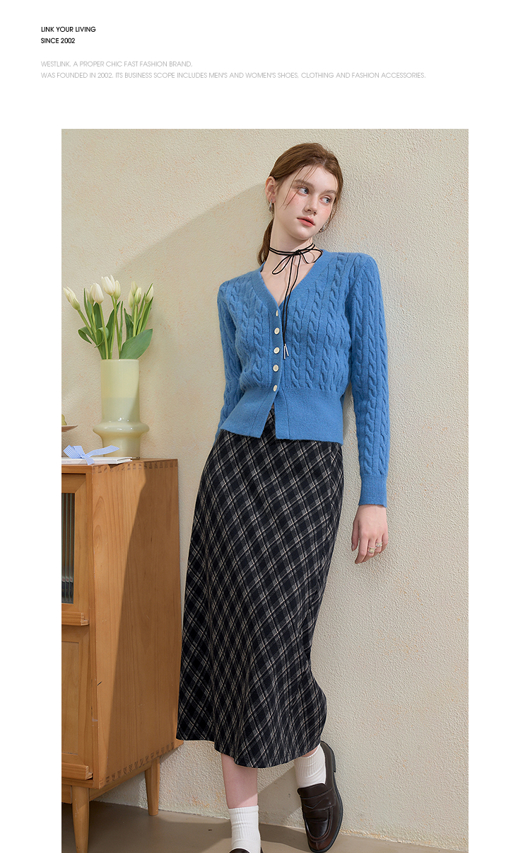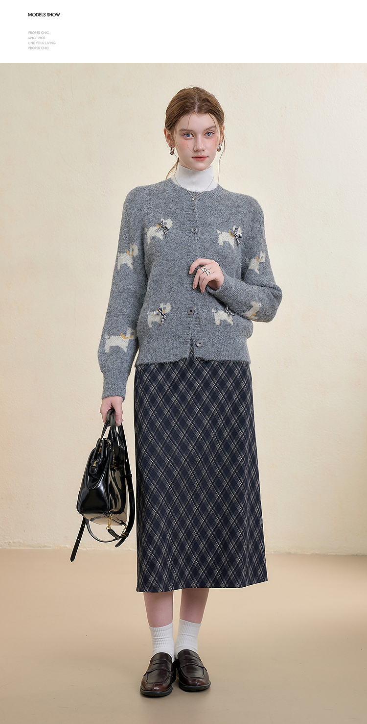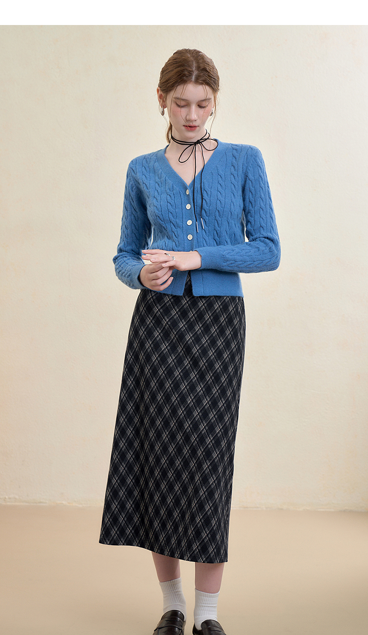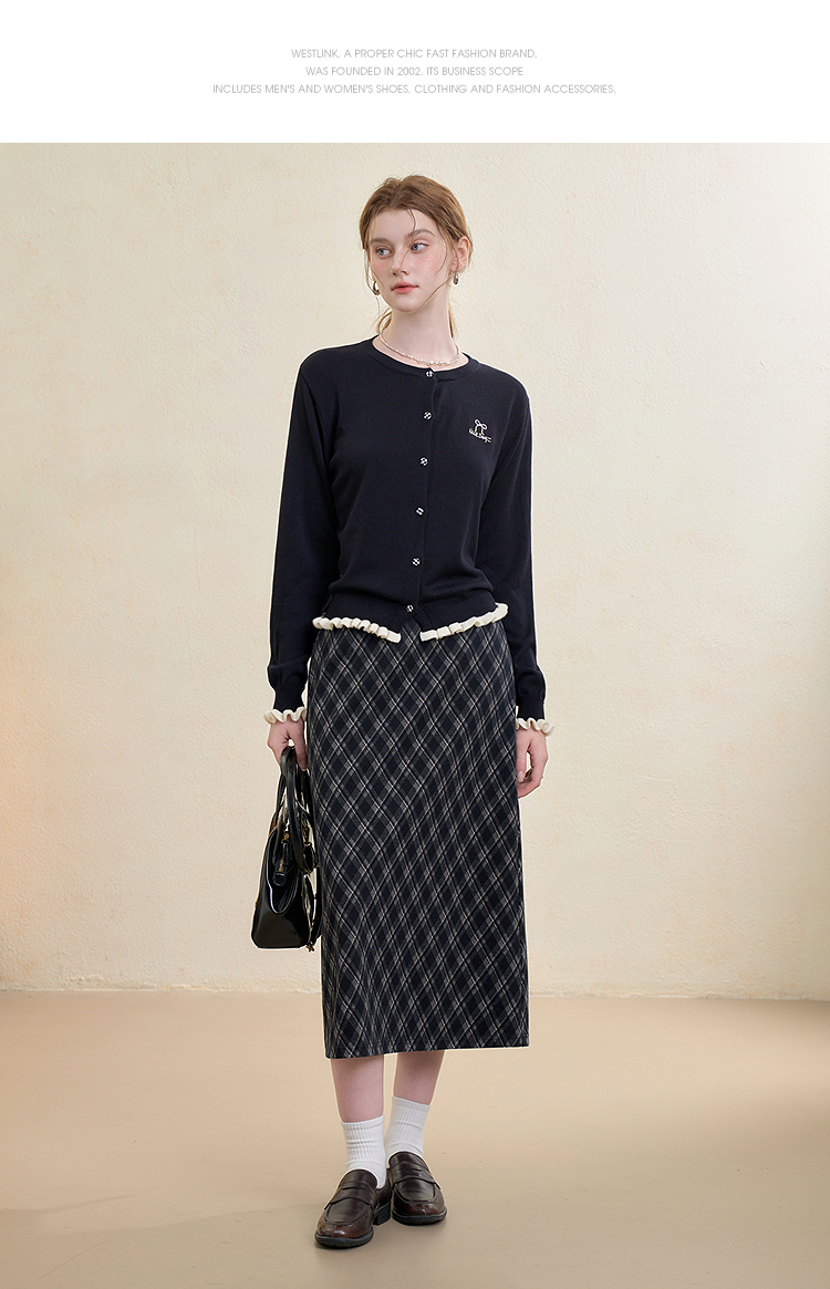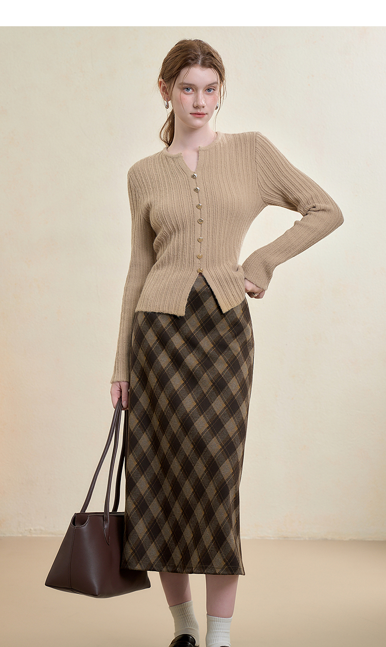 西遇复古棱格毛呢半身裙女秋季新款学院风高腰显瘦直筒中长裙V3355237/V3355195/V3355238