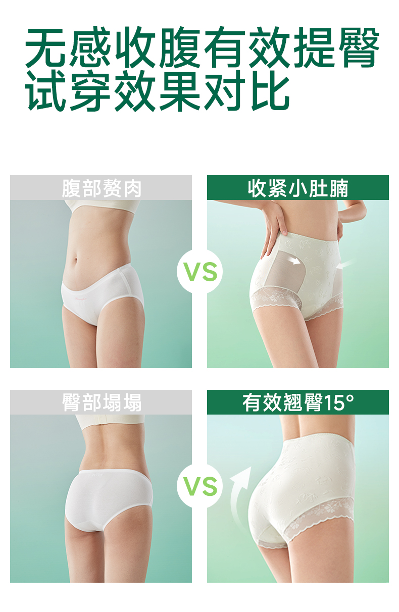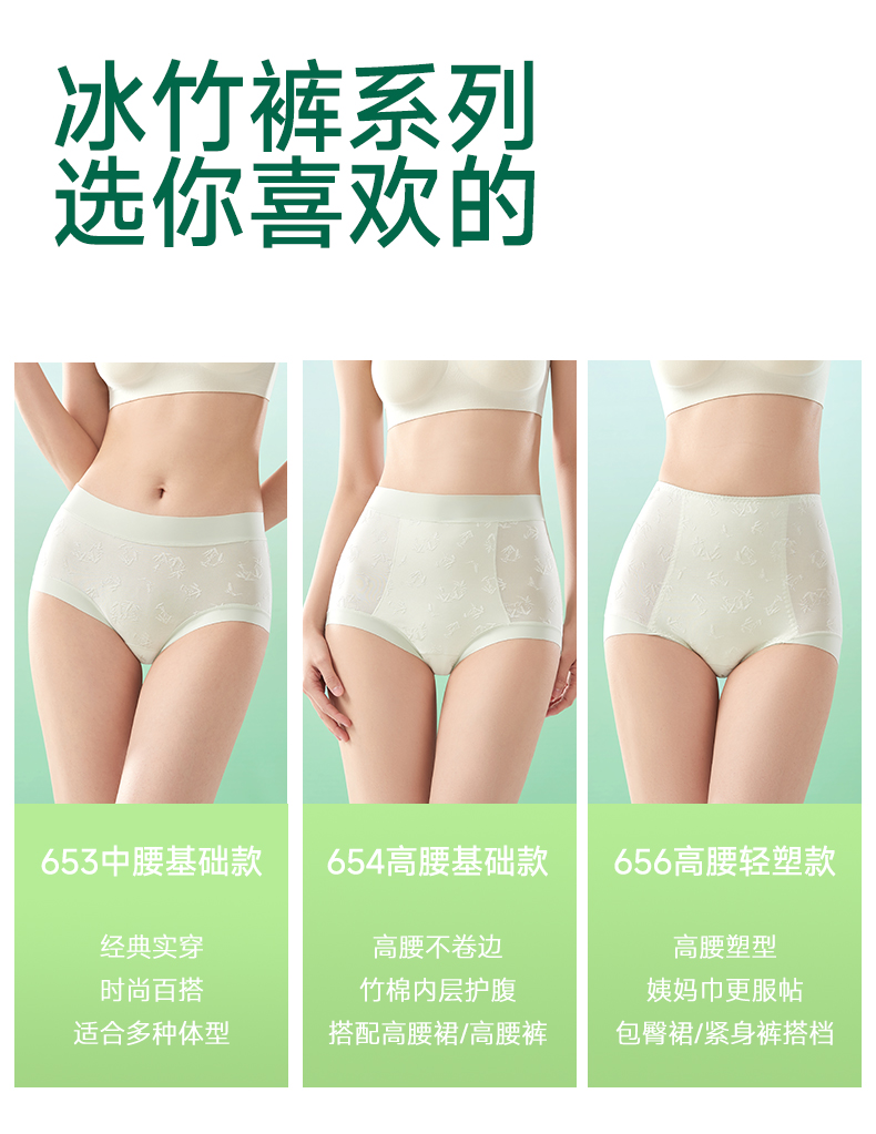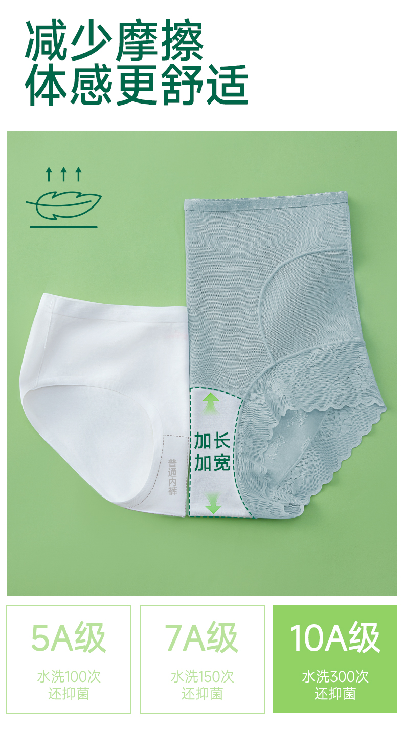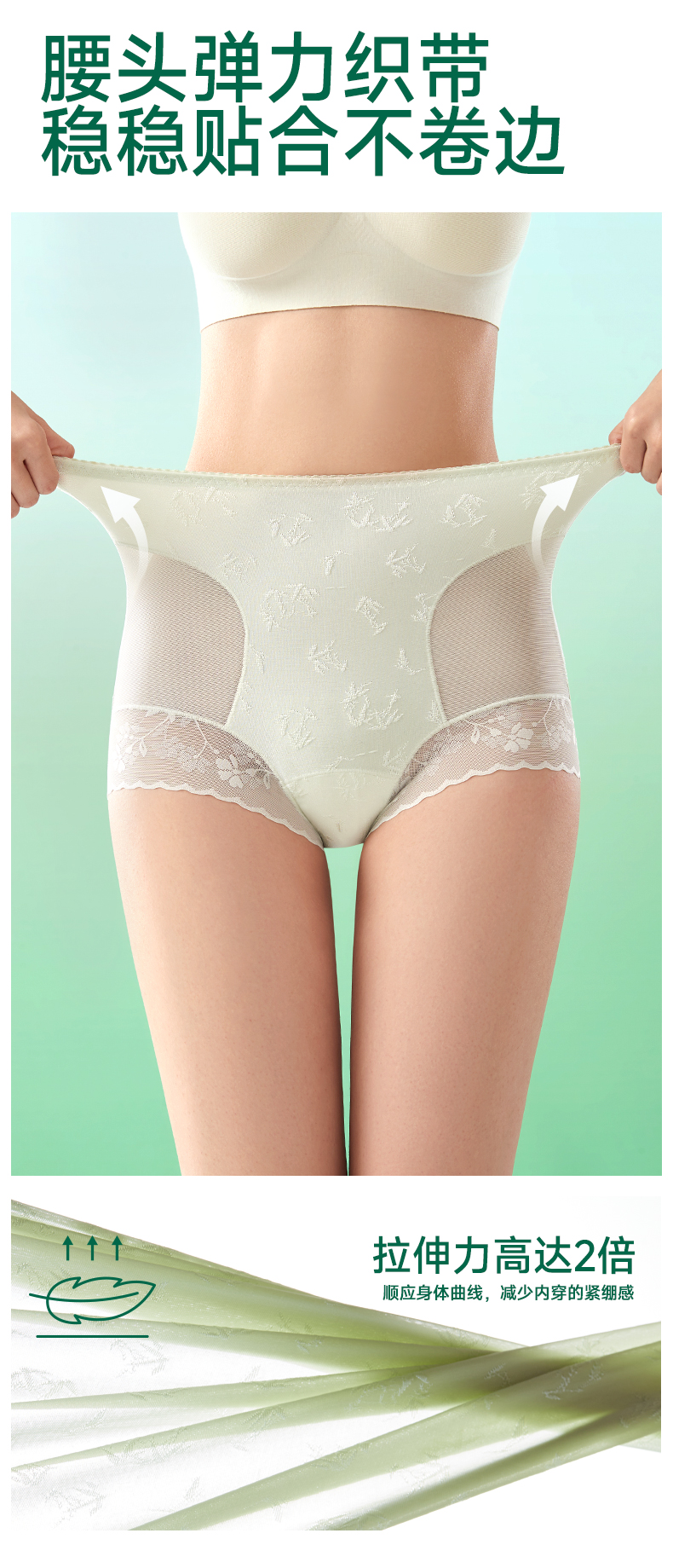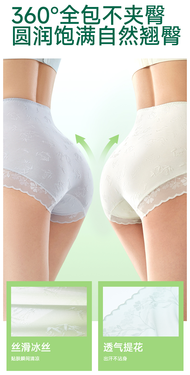 女式国风浮雕高腰蕾丝内裤 10A 抗菌竹棉养护底裆 冰竹薄款收腹无痕超舒适