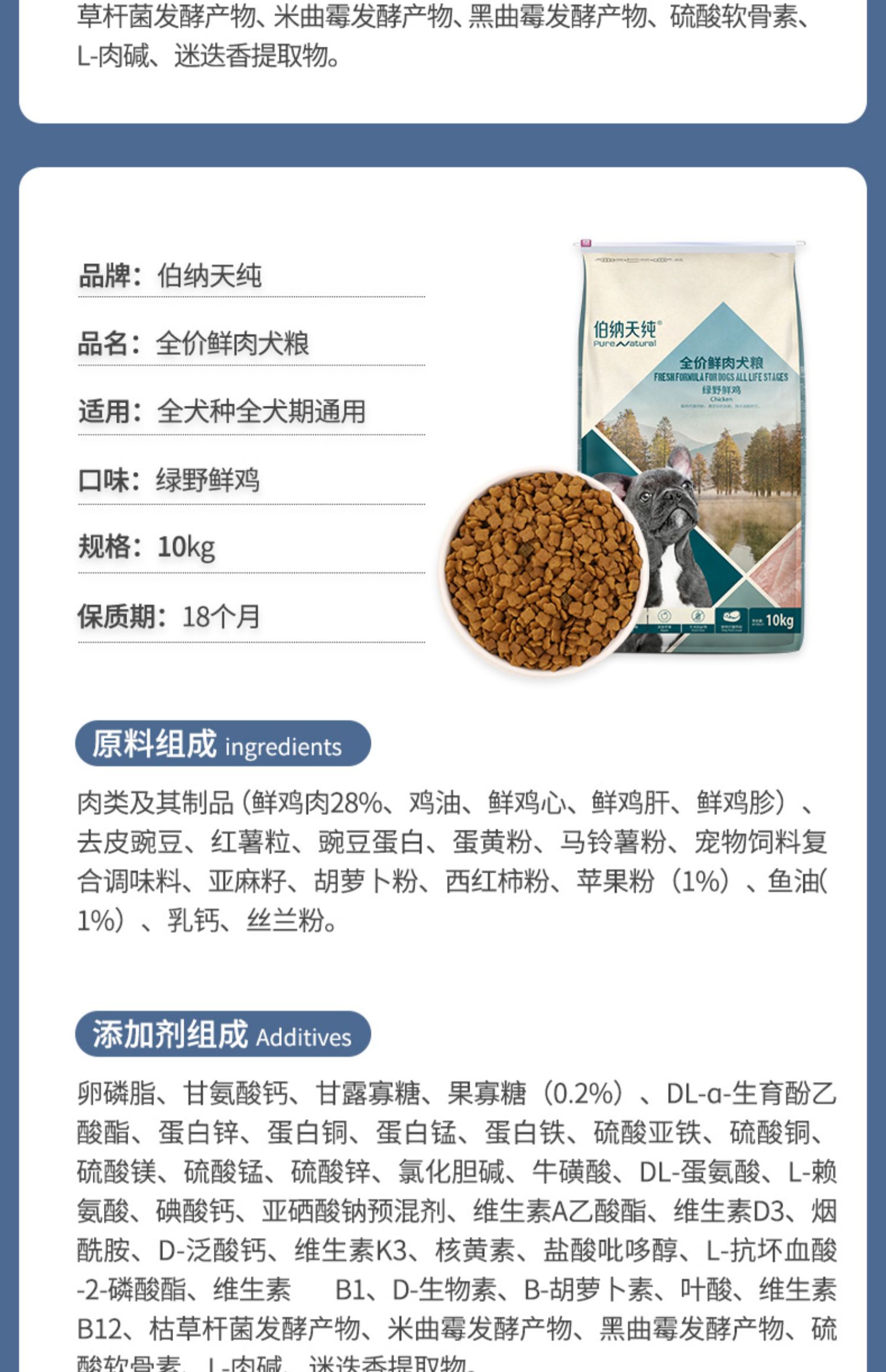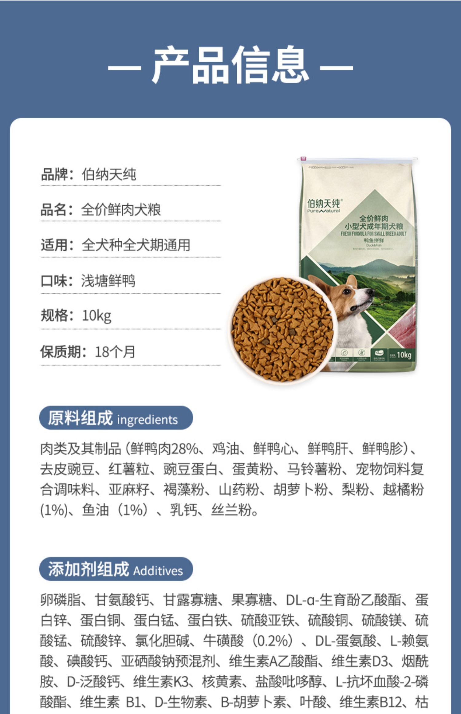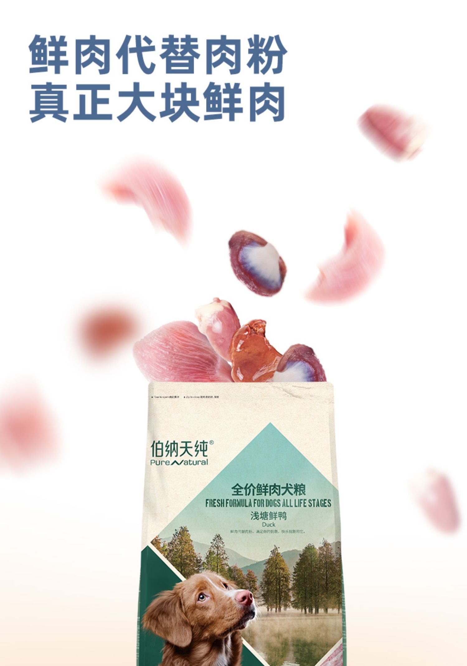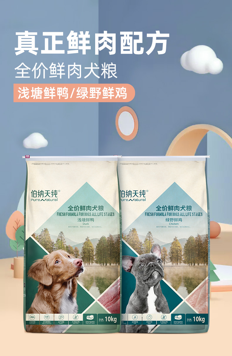 【鲜肉系列】伯纳天纯狗粮全犬种全犬期通用型狗粮鸡肉鸭肉配方 呵护肠胃 10kg