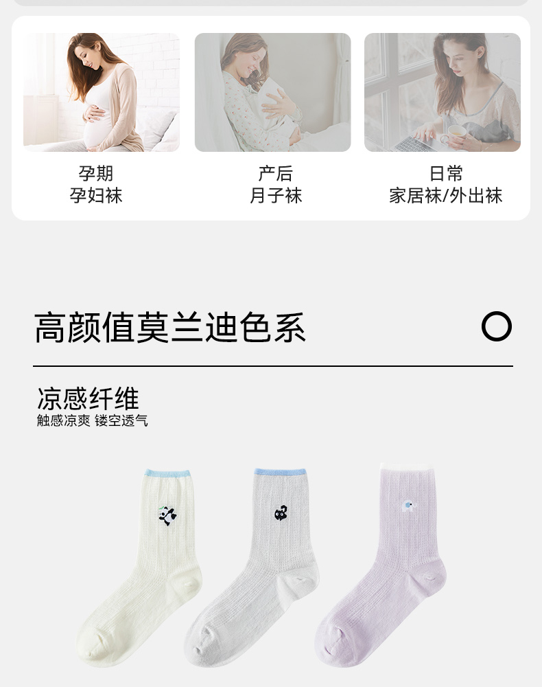 【母婴服配】嫚熙袜子夏季薄款孕妇短中筒凉感网眼月子袜坐月子用品女