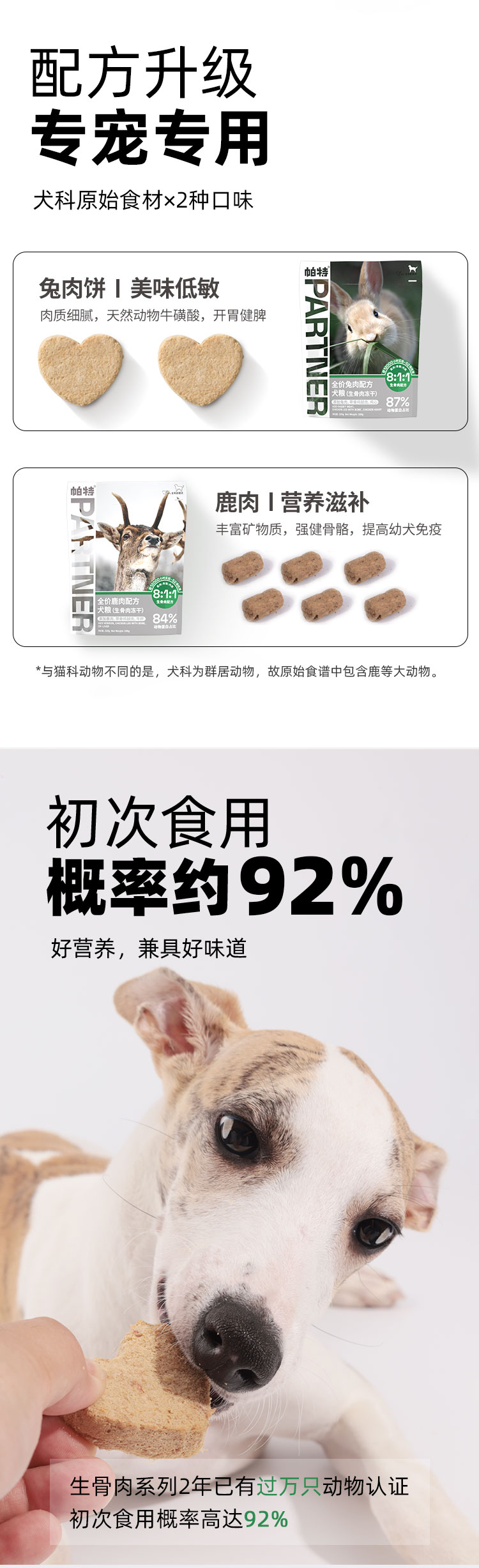 帕特 犬用生骨肉主食零食冻干 三文鱼/鹌鹑/兔肉/鹿肉/(区域控价刮码发货 保真 介意勿拍)