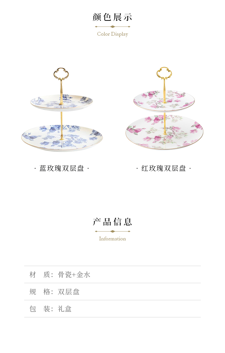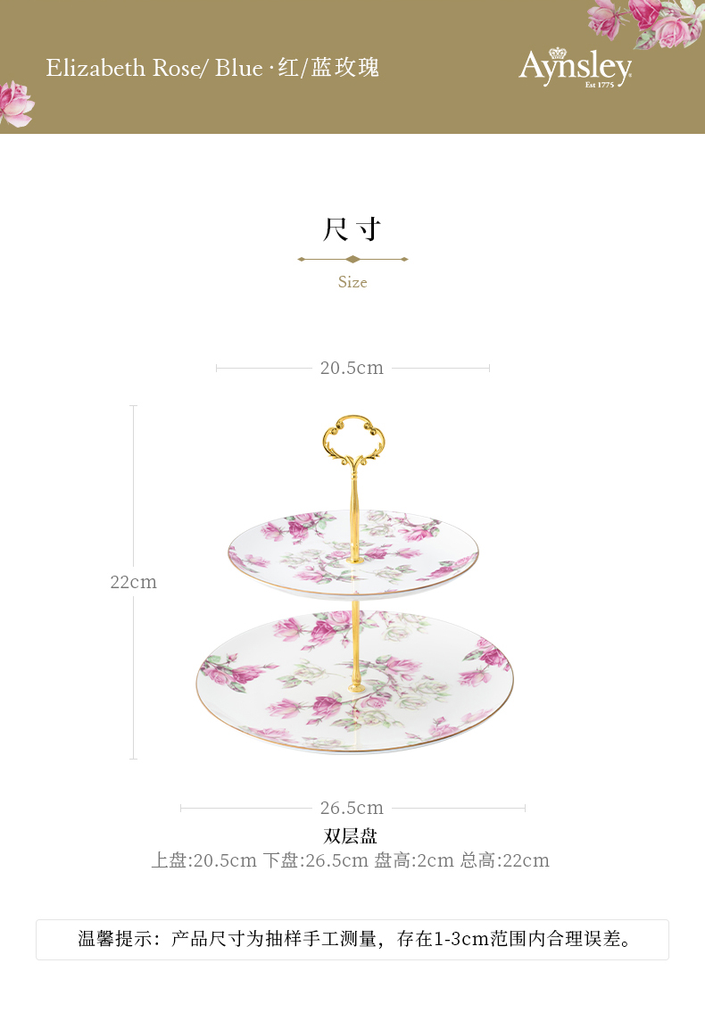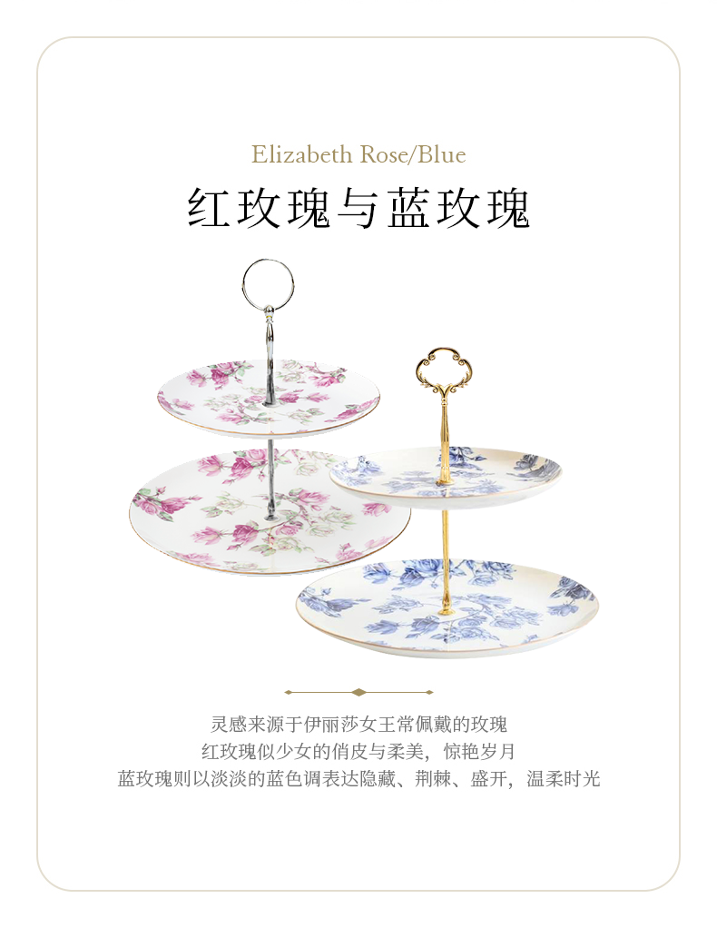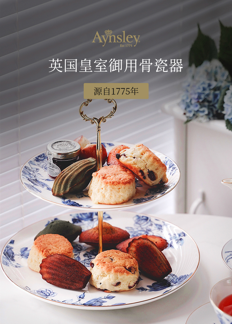 英国Aynsley安斯丽红玫瑰蓝玫瑰双层甜品盘水果盘点心架茶点展示
