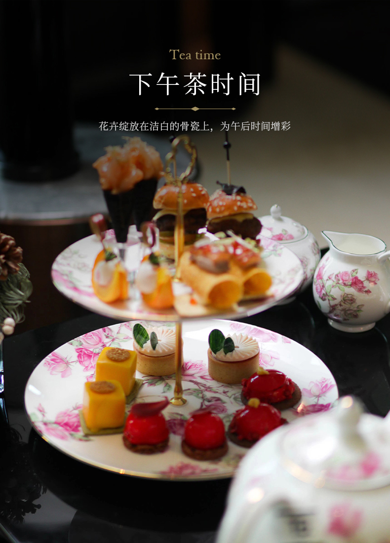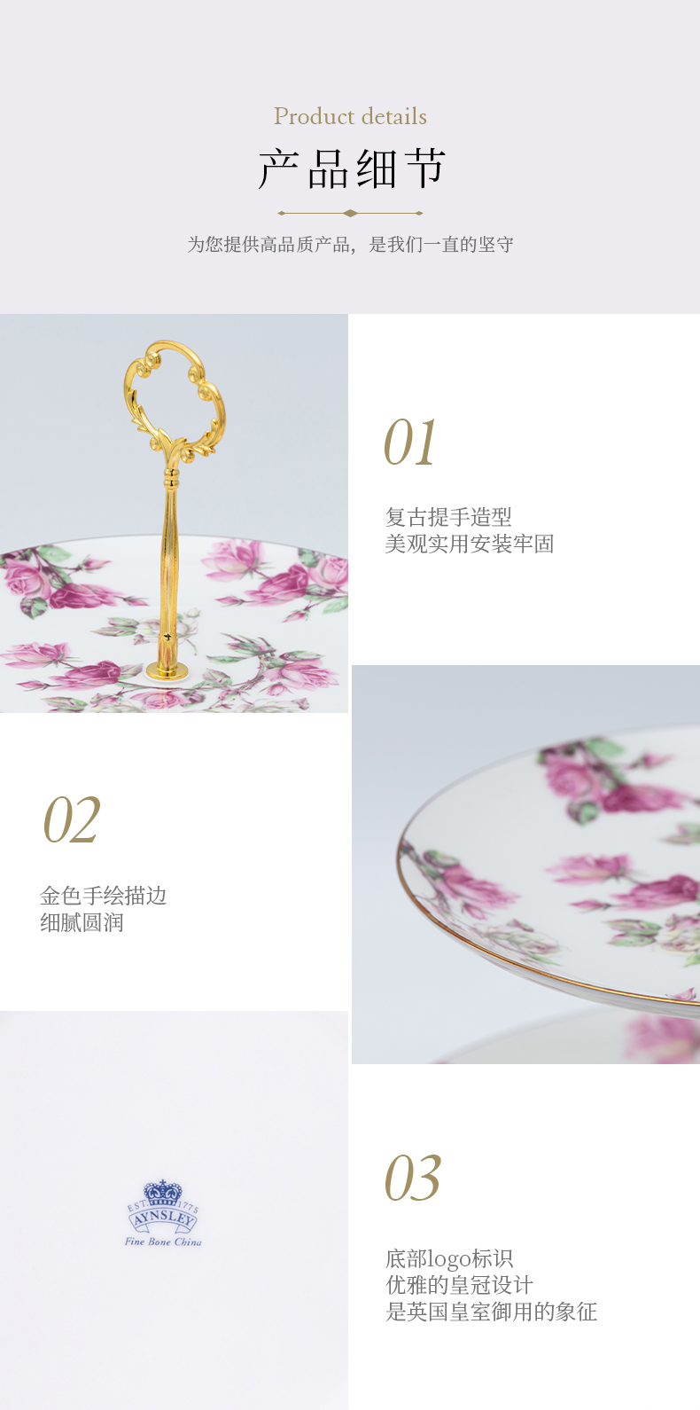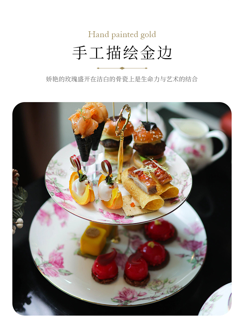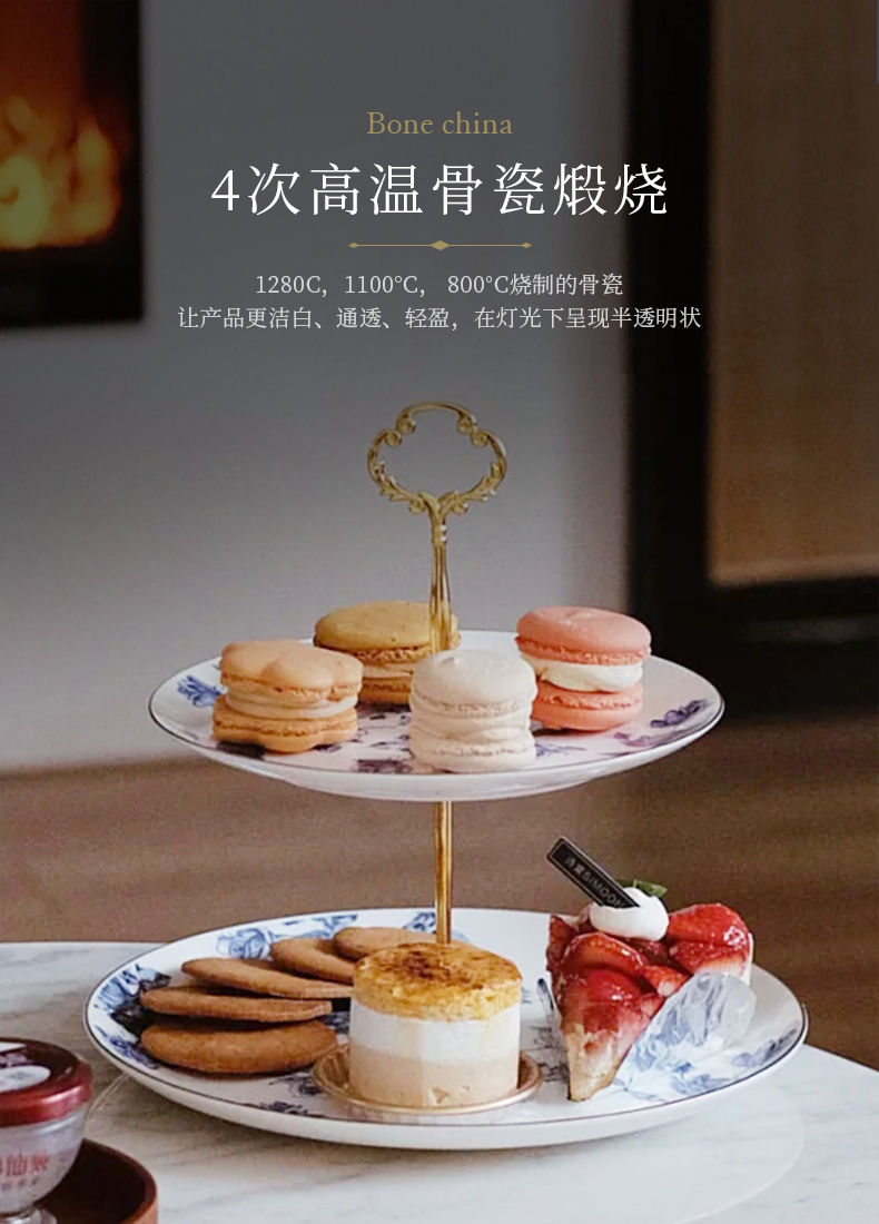 英国Aynsley安斯丽红玫瑰蓝玫瑰双层甜品盘水果盘点心架茶点展示
