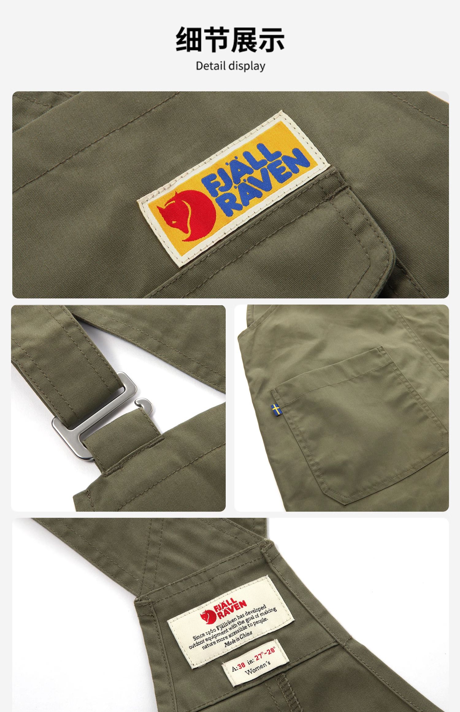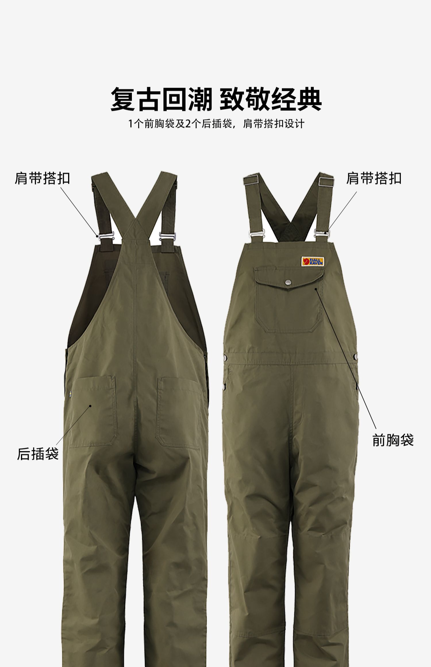 北极狐2024年春季新款户外女士工装背带裤G-1000复古长裤02211241