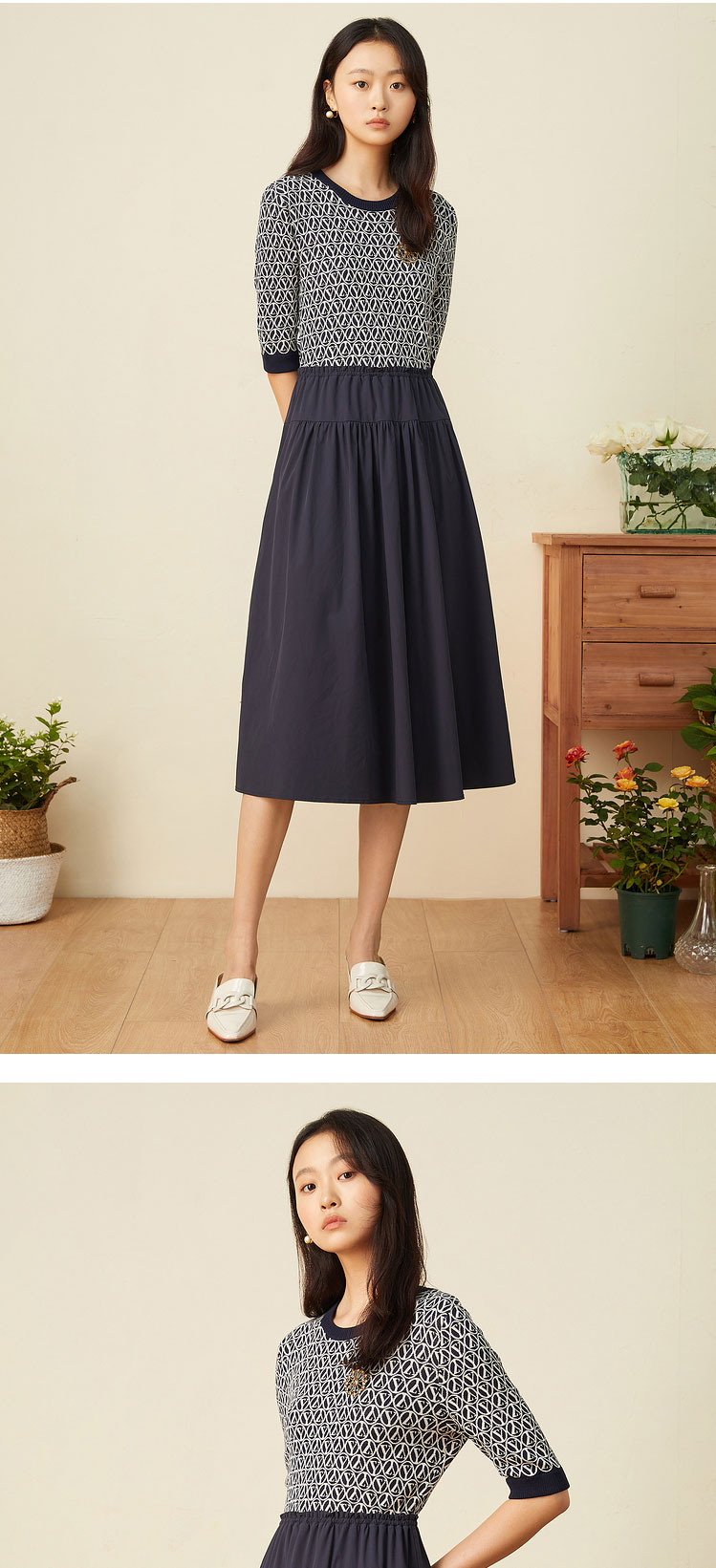 音儿女装2022夏季新款字母印花拼接针织连衣裙8c32206960