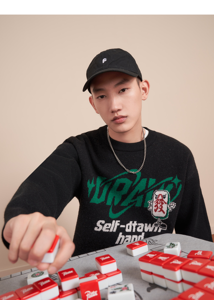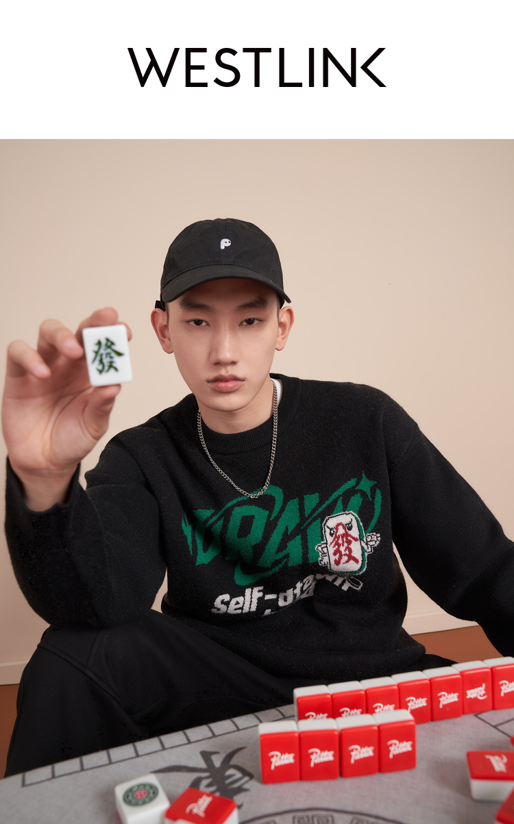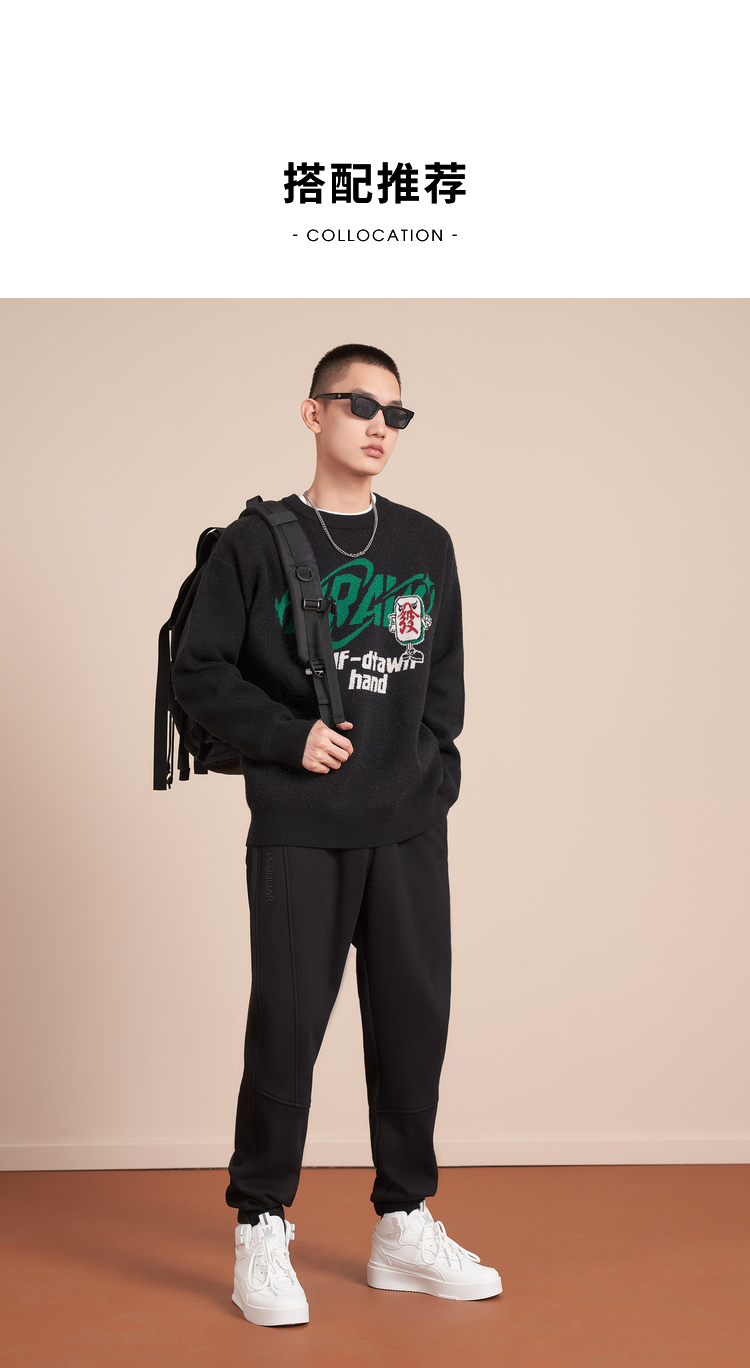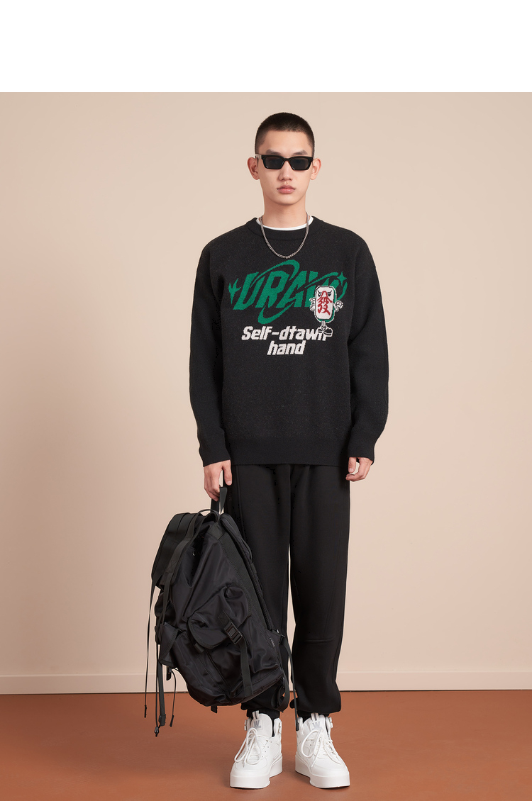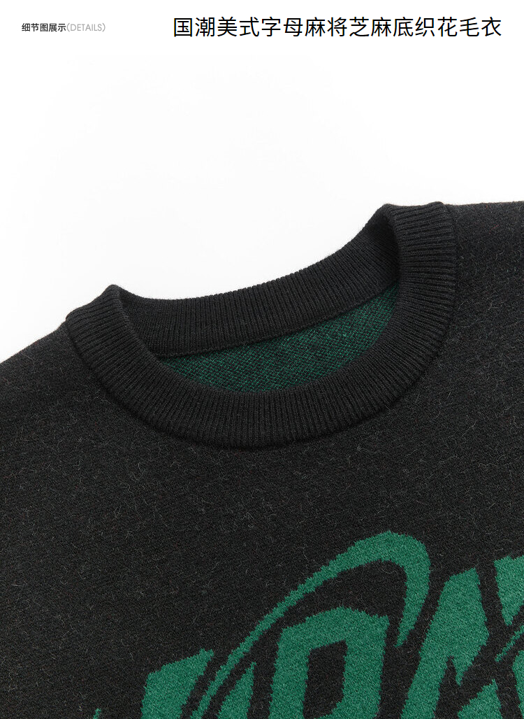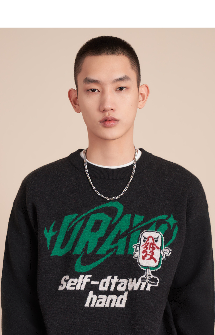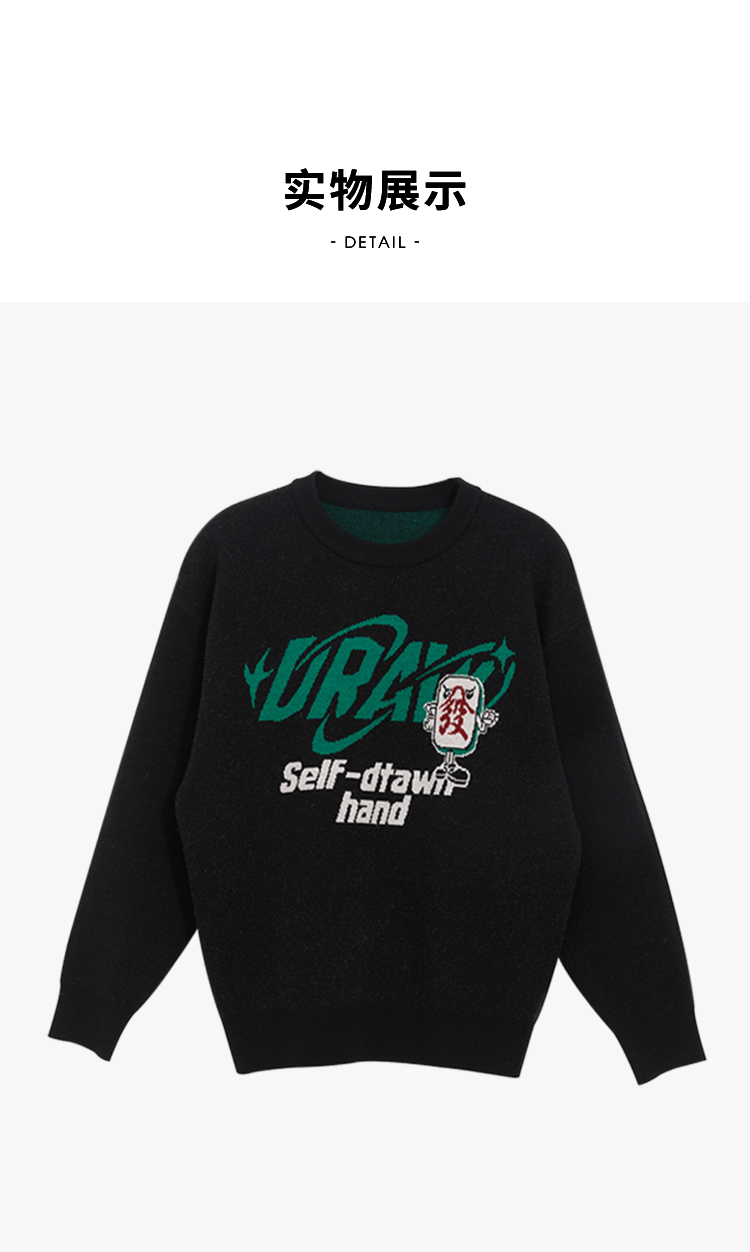 西遇针织衫男2023年秋冬季新款麻将发财长袖内搭毛衣圆领宽松上衣12122454