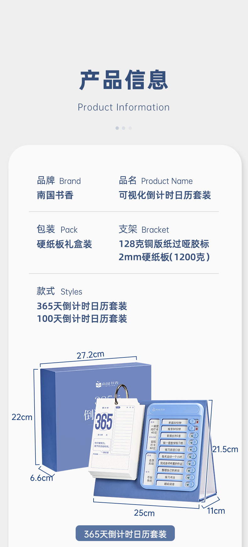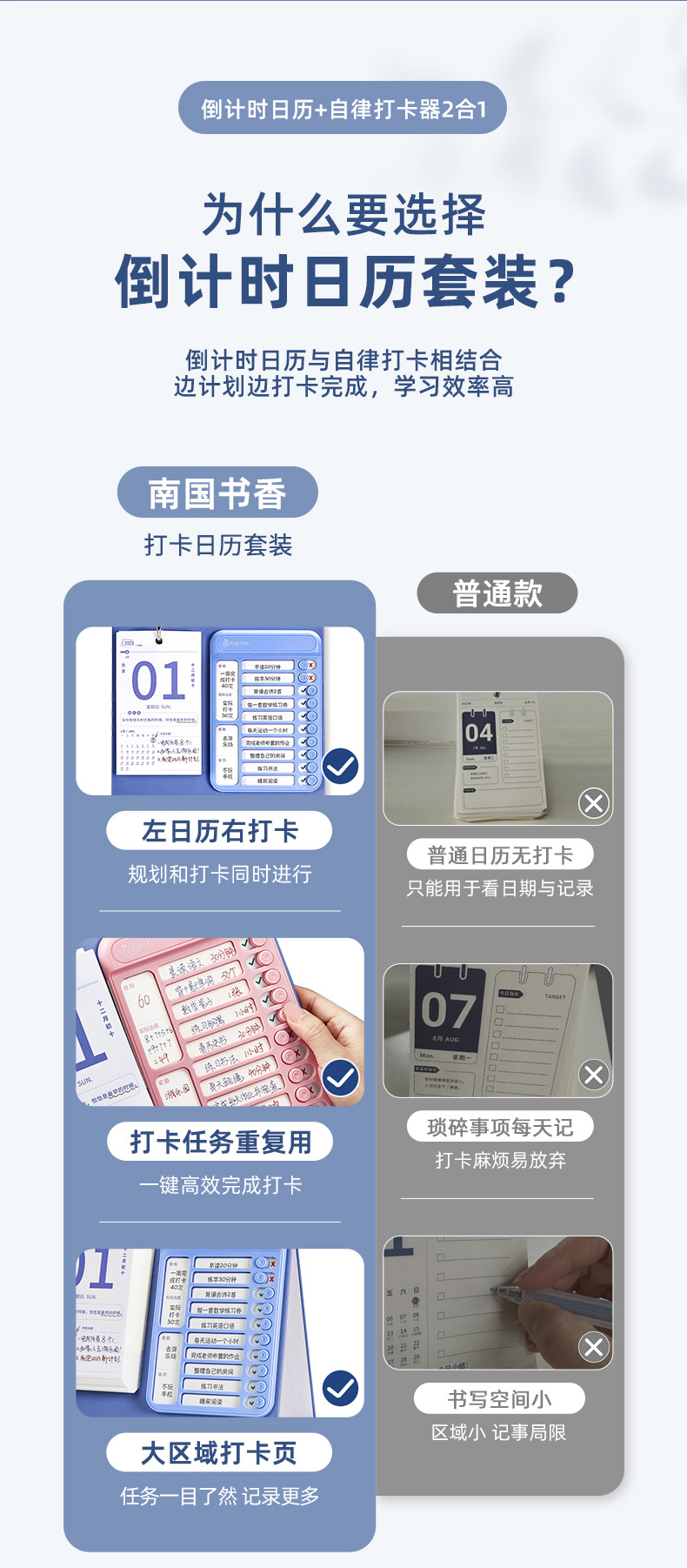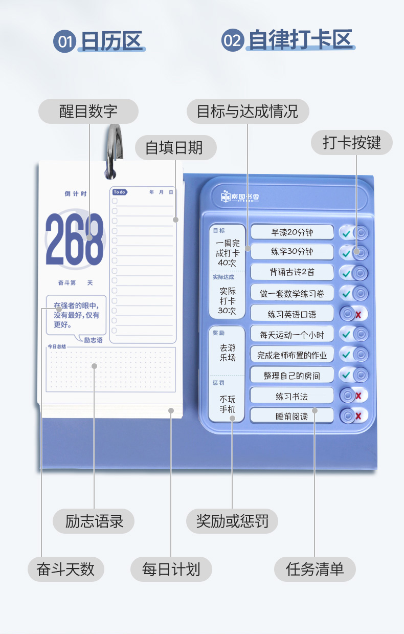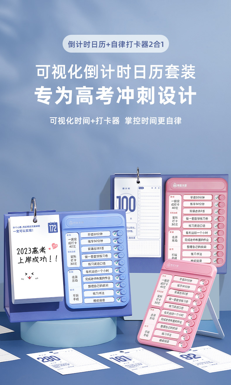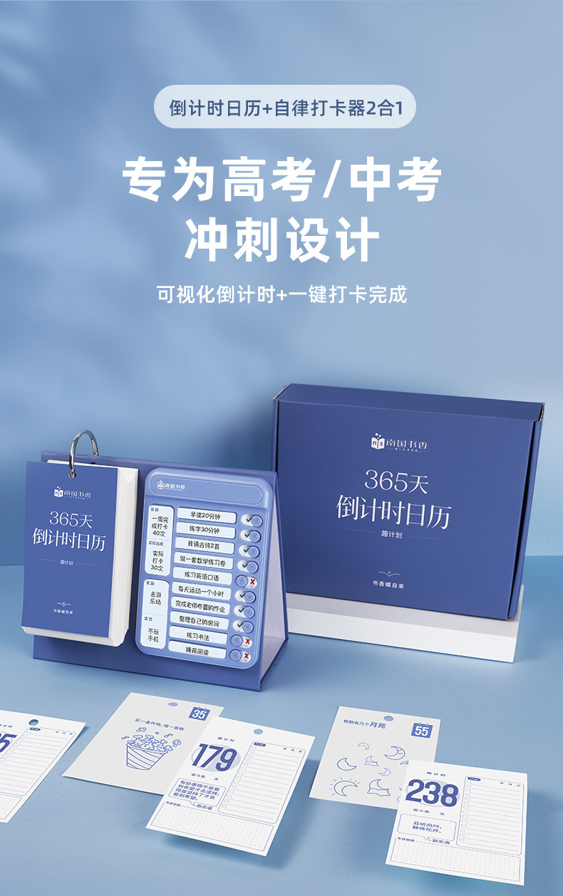 南国书香2023新款中高考倒计时打卡日历套装每日自律计划打卡桌面创意提醒牌学生考试神器解压创意日历