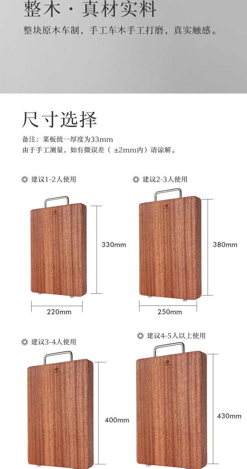 【整木切菜板】原森太乌檀木实木砧板 整木切菜板 实木家用擀面板占板