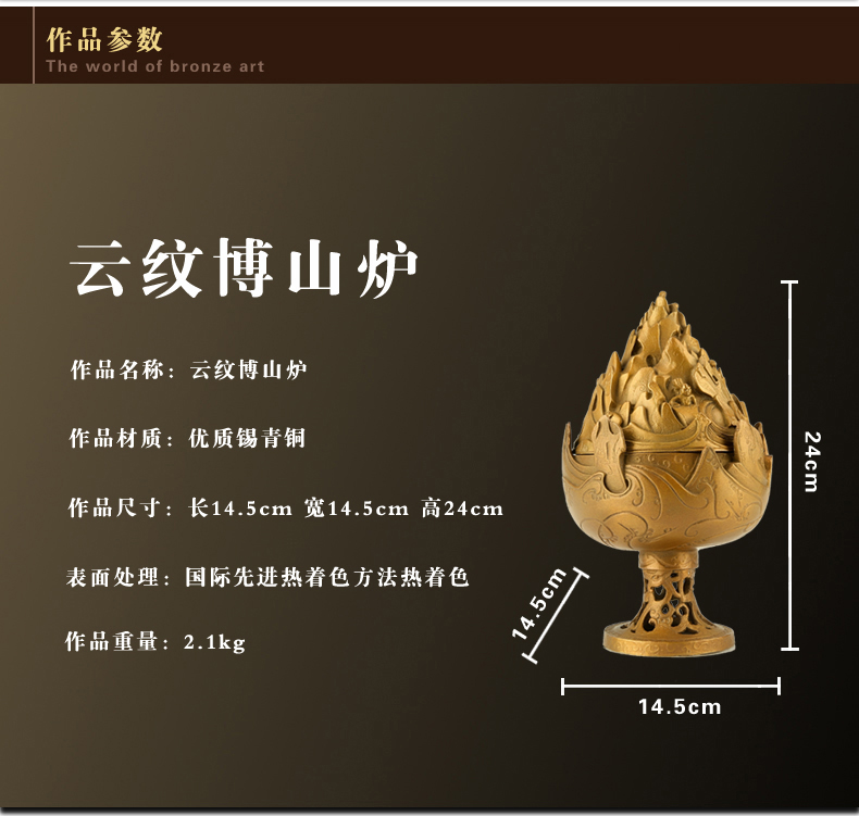 宇达青铜全铜摆件《云纹博山炉》香炉 创意 工艺品 家居饰品摆件