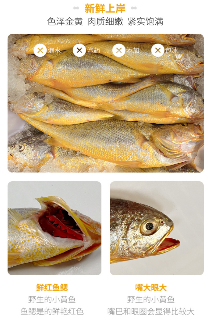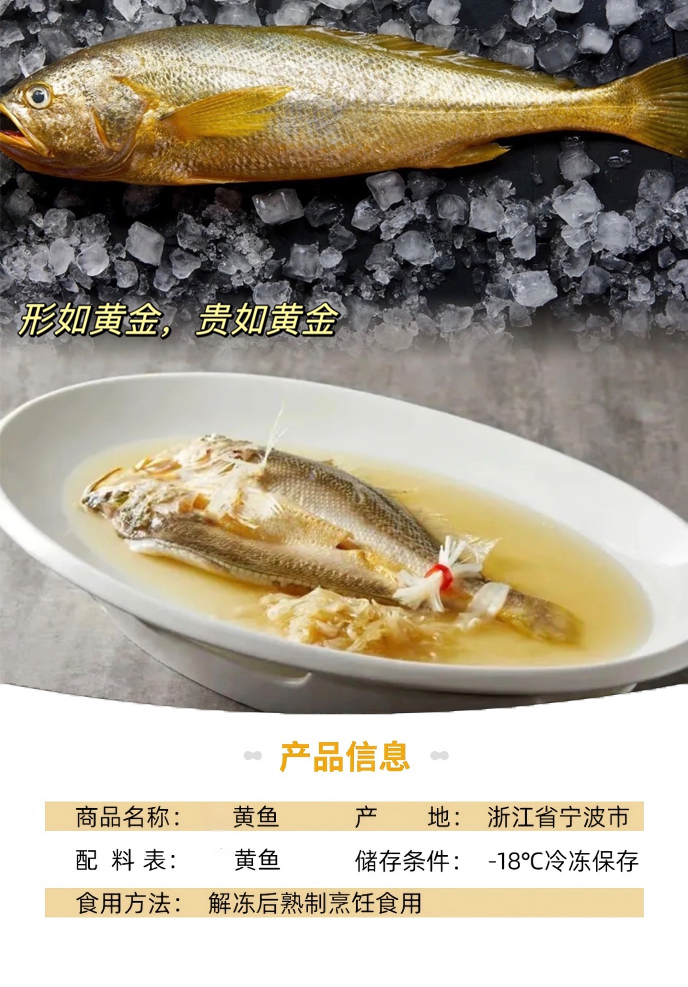 【浙江舟山海捕】东海新鲜速冻大黄鱼300-350g/条*2条