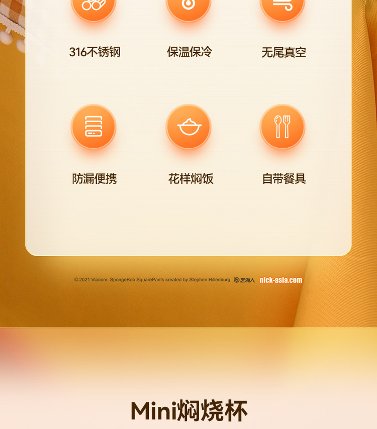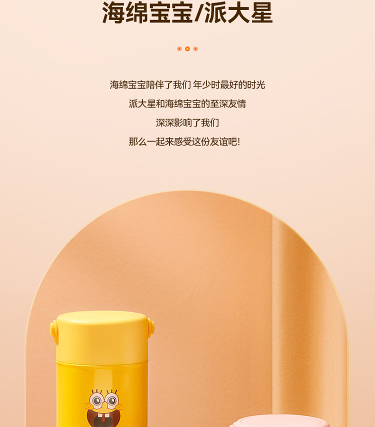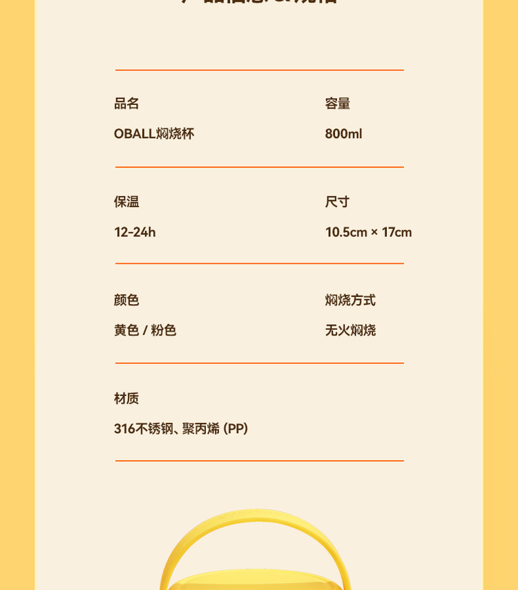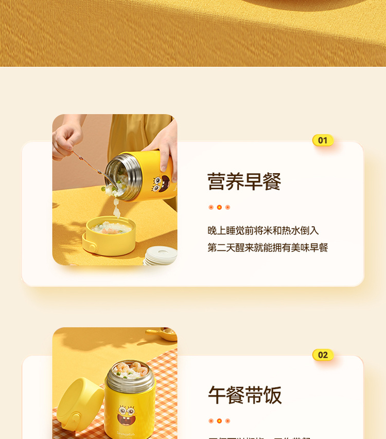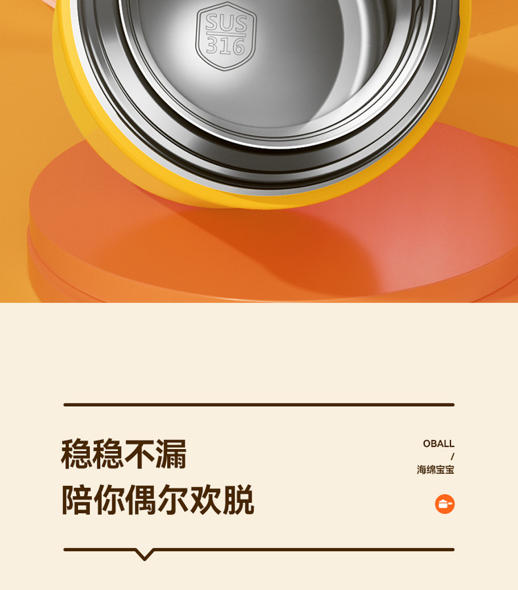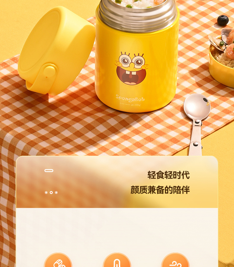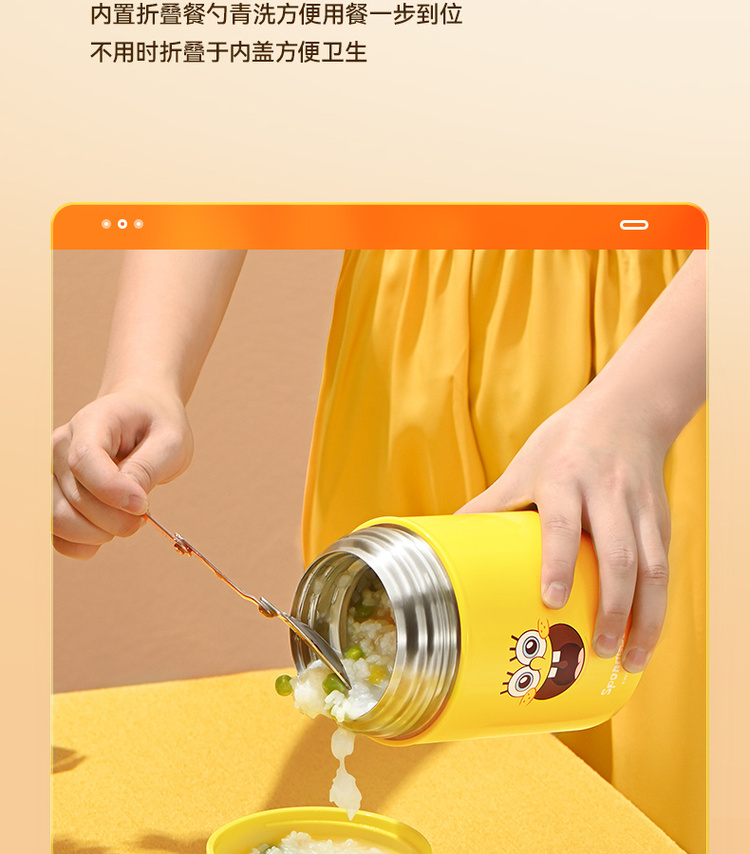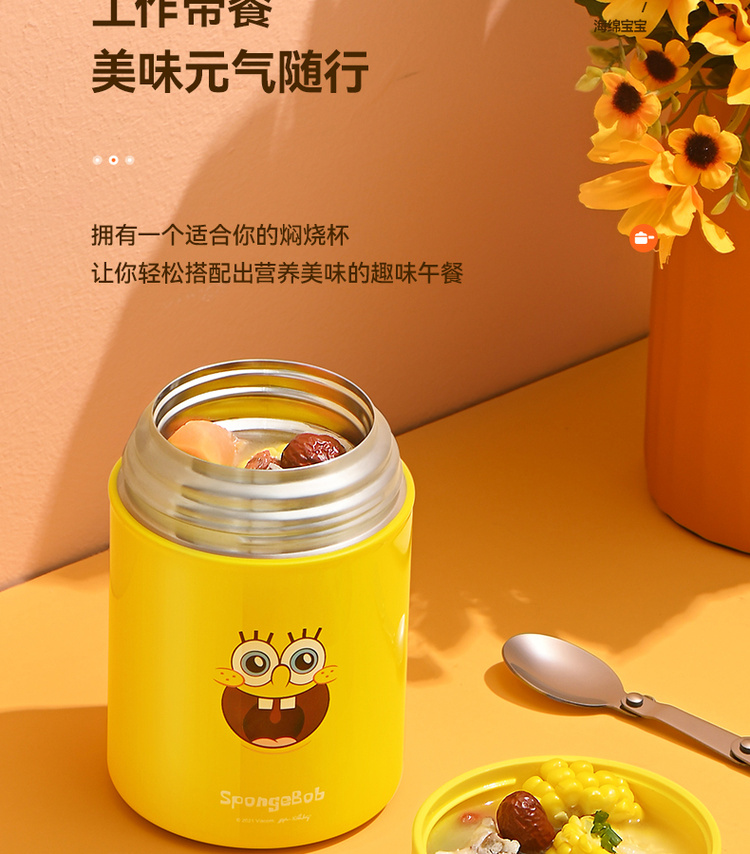 Oball不锈钢焖烧杯OB-007 超长保温饭盒桶便携焖烧壶罐焖粥 海绵宝宝 800ml