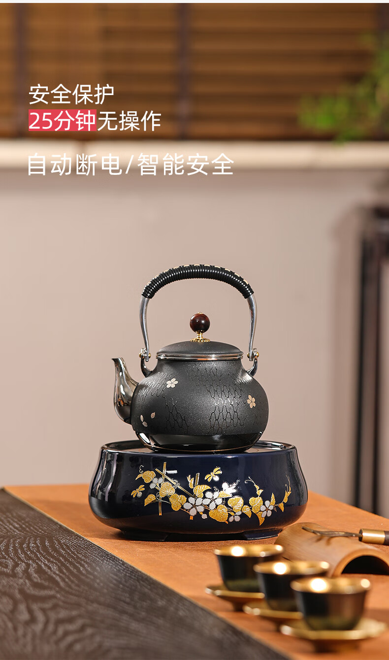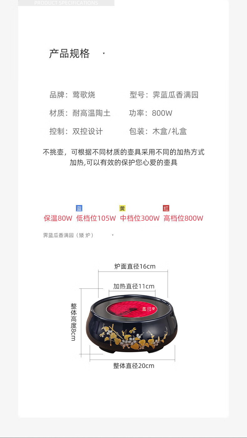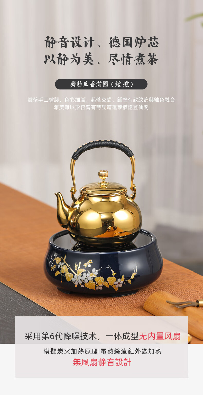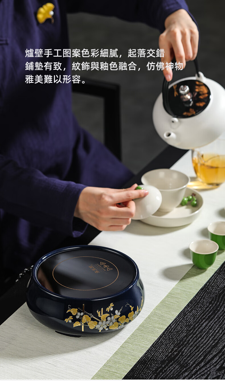【样品清仓特价,无包装,介意者慎拍】莺歌烧 电陶炉煮茶茶炉小型家用无线遥控静音电热炉 霁蓝瓜香满园
