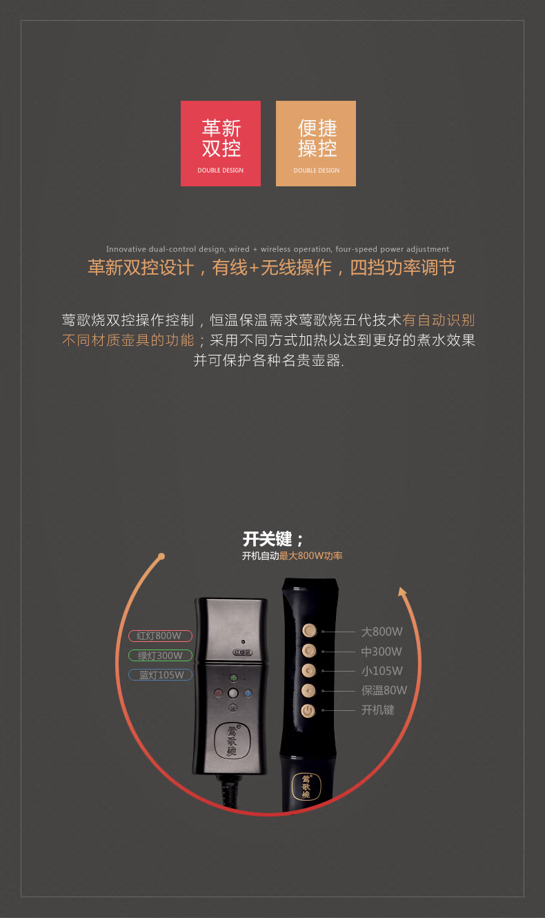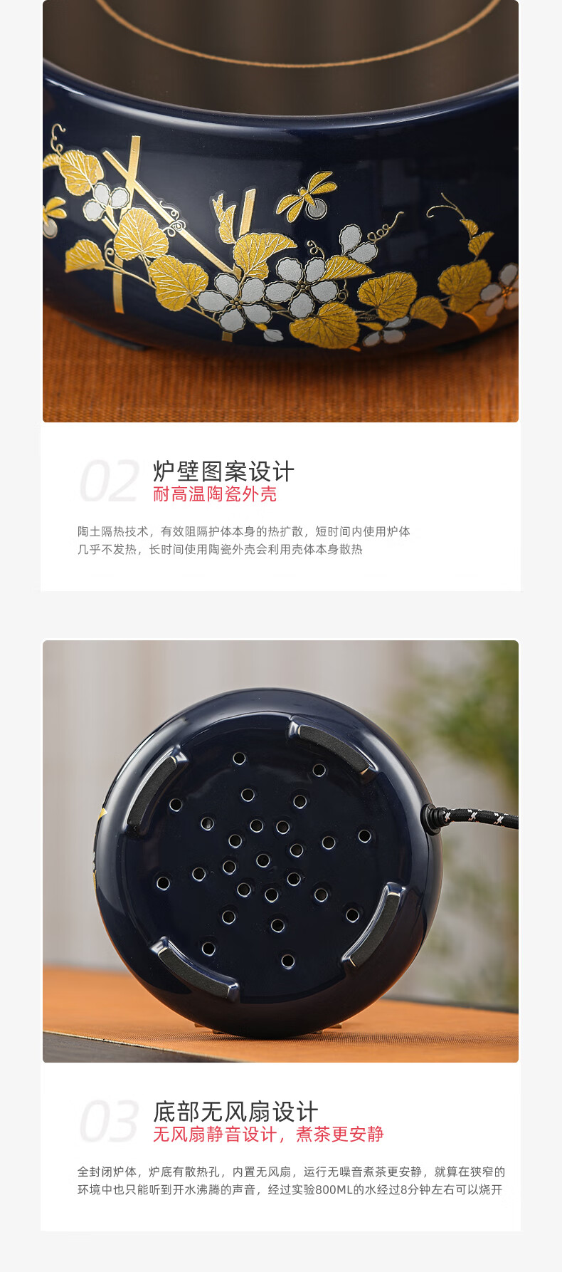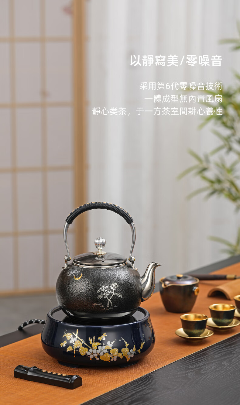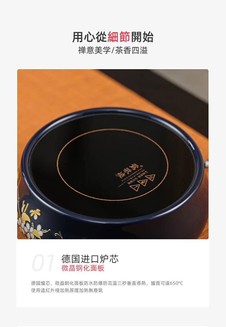 【样品清仓特价,无包装,介意者慎拍】莺歌烧 电陶炉煮茶茶炉小型家用无线遥控静音电热炉 霁蓝瓜香满园