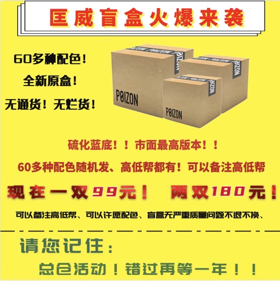 ⚠️盲盒活动全网最高性价比‼️保证稳赚不赔!别人一双不到的价格买两双! 款式均为自营上架款式,无通货 无烂货! 鞋子均为全新,无瑕疵‼️