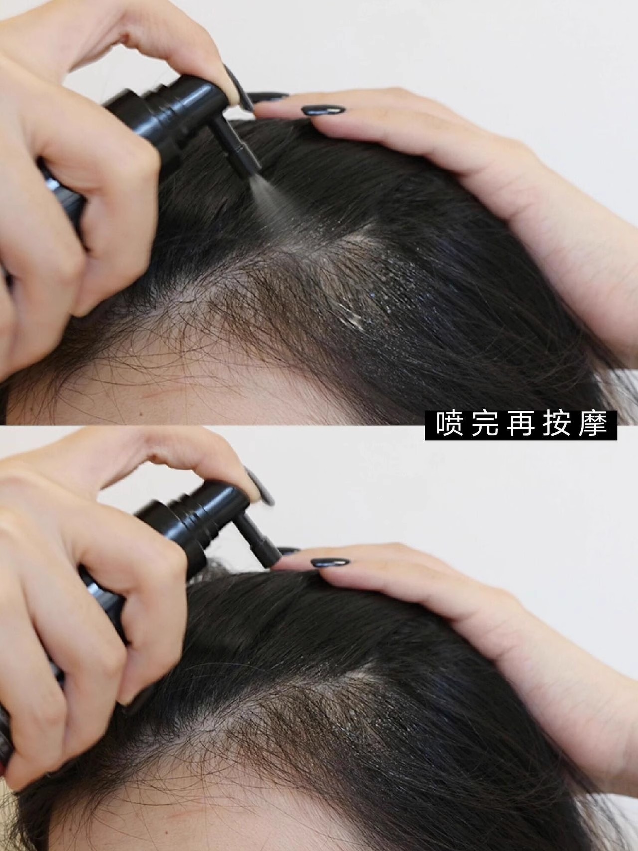 有喷头,使用起来也非常方便。喷向头皮后,均匀地涂抹后轻轻按摩即可~