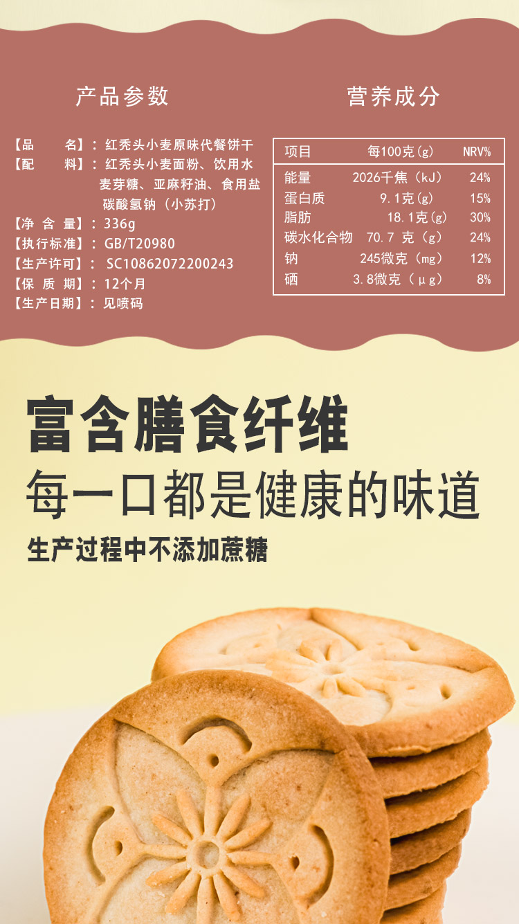 小麦原味代餐饼干 2盒(336g/盒) 商品图10