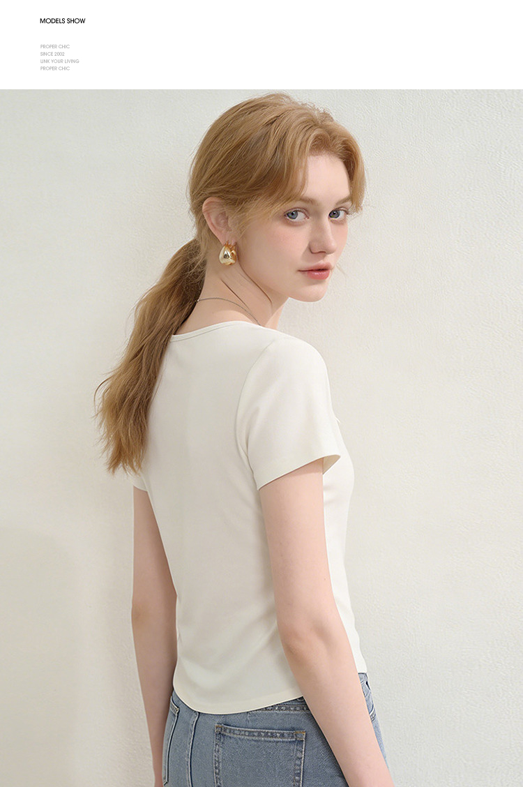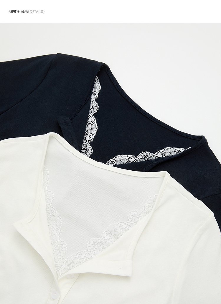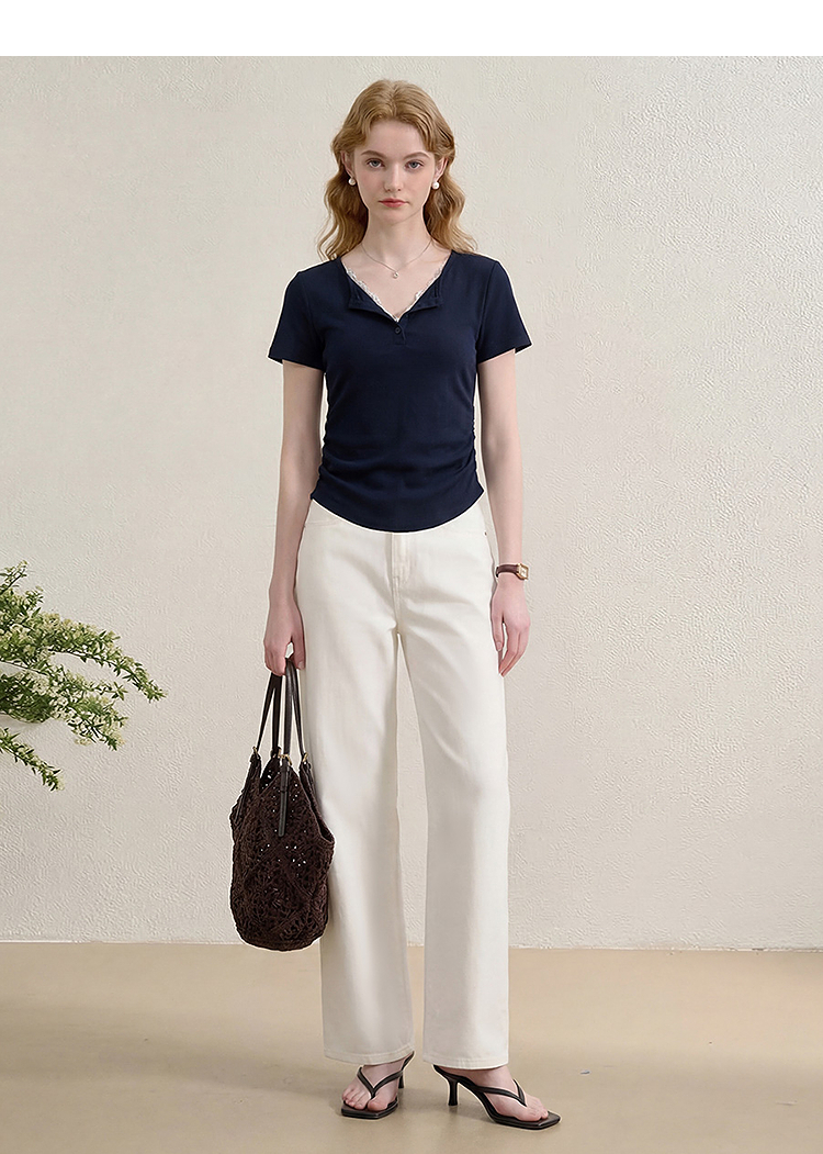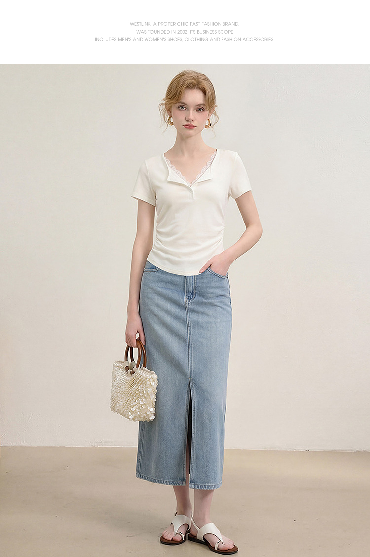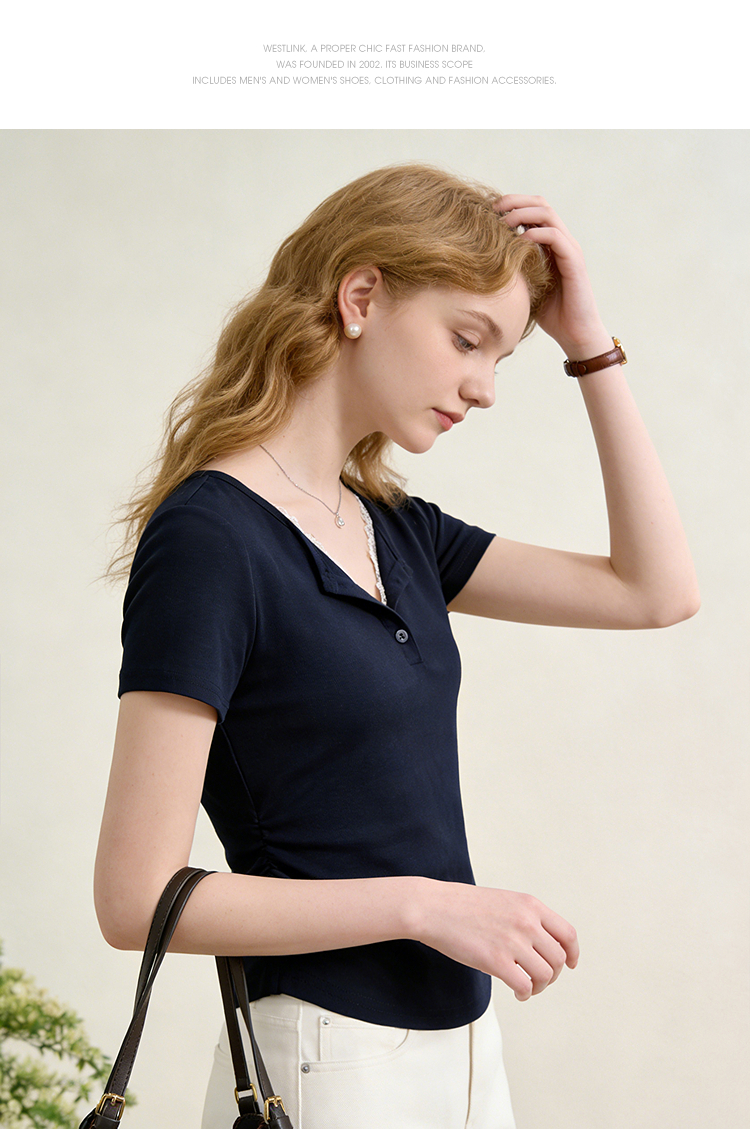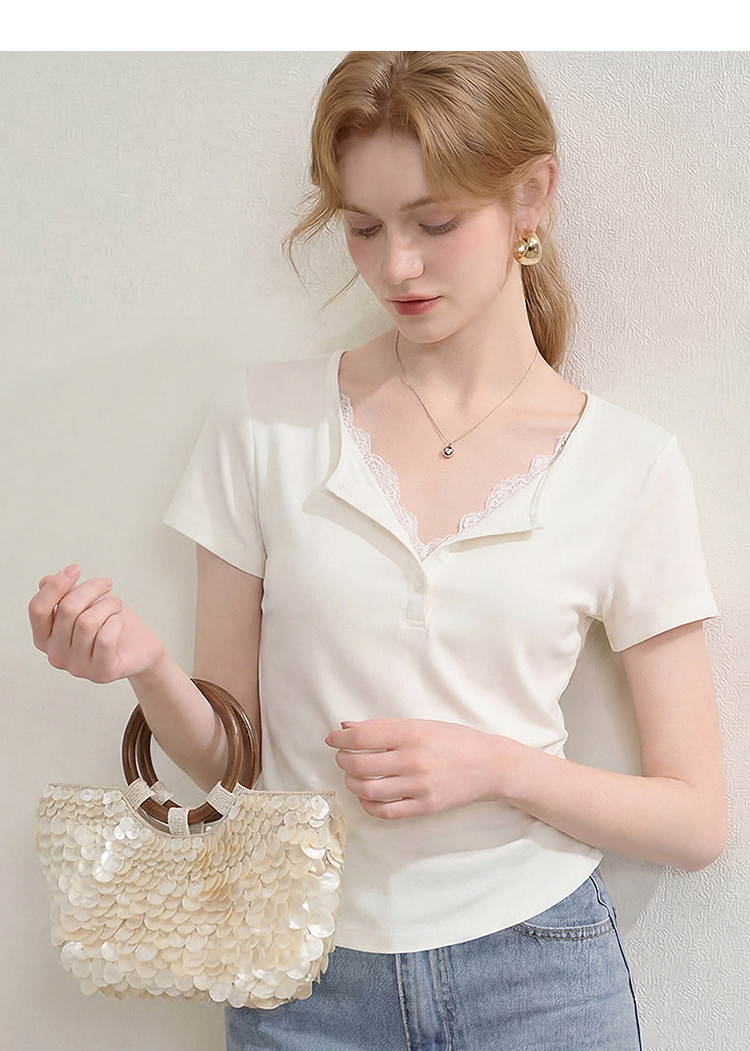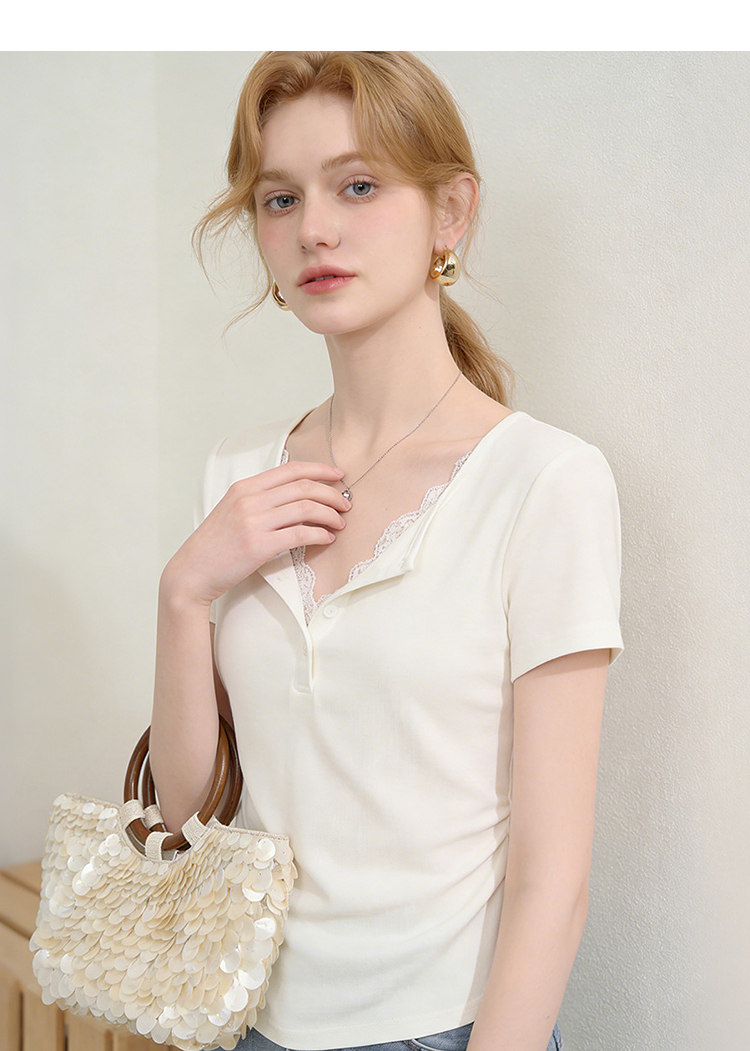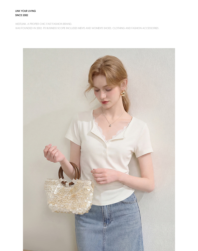 西遇蕾丝拼接2026春夏新款假两件女纯欲褶皱收腰显瘦上衣短袖T恤H0060190