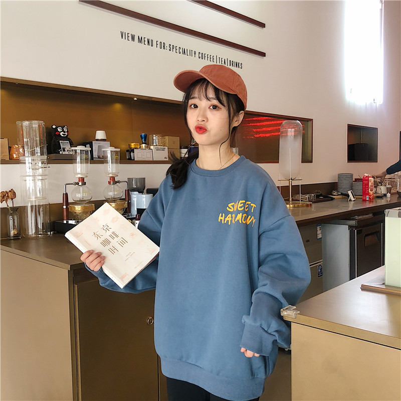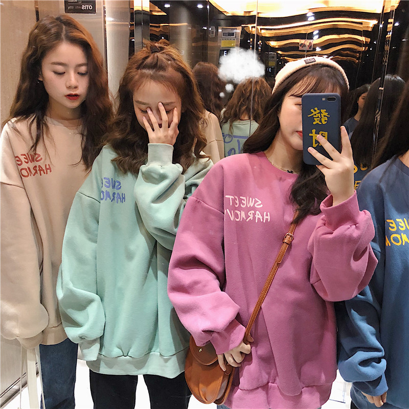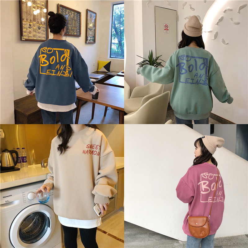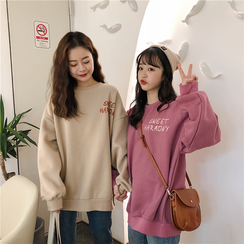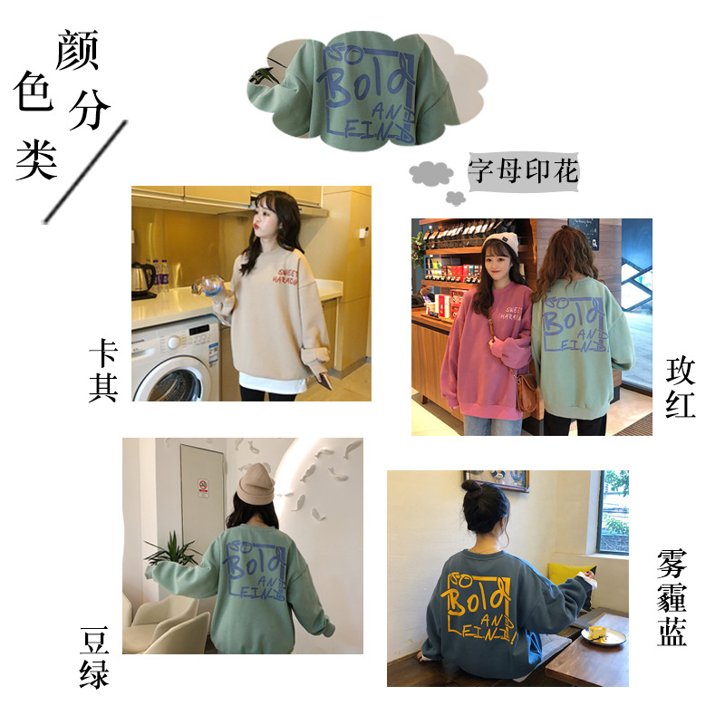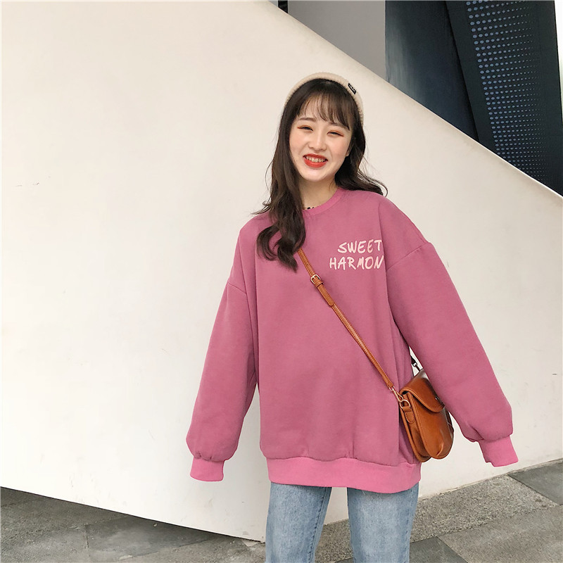 秋冬百搭2021时尚新款韩版闺蜜装学生宽松圆领卫衣女潮ins加绒加厚上衣服盐系火龙果卫衣