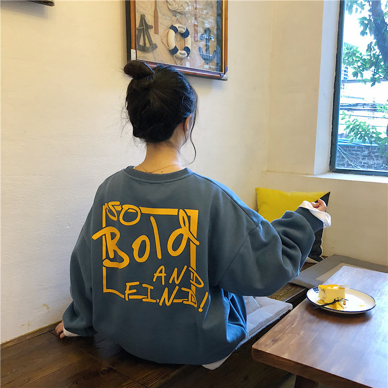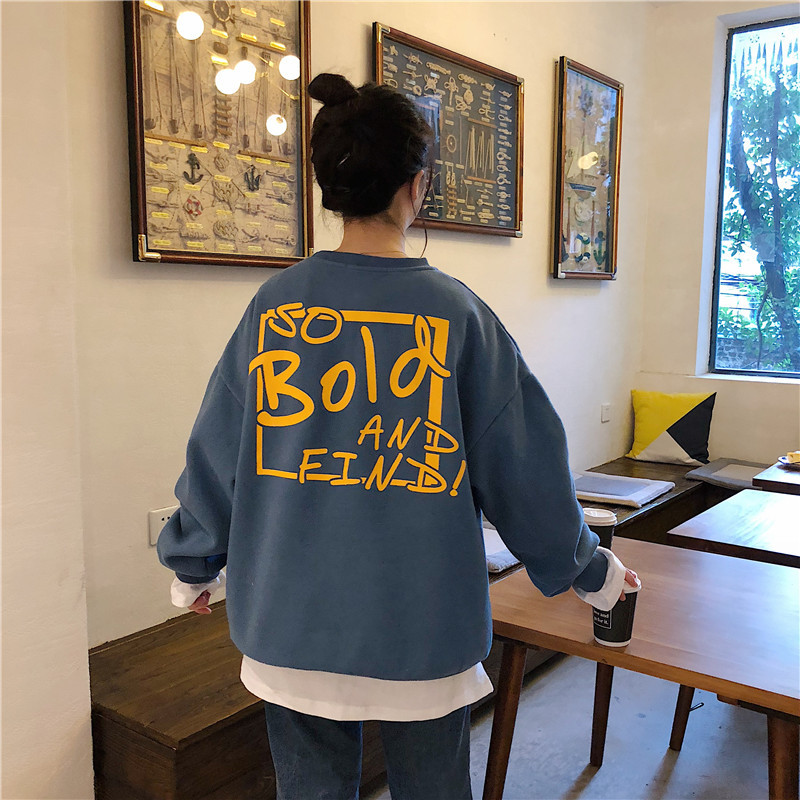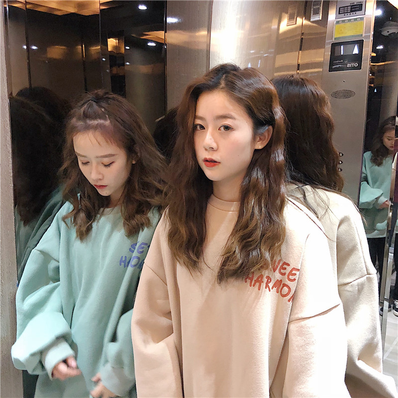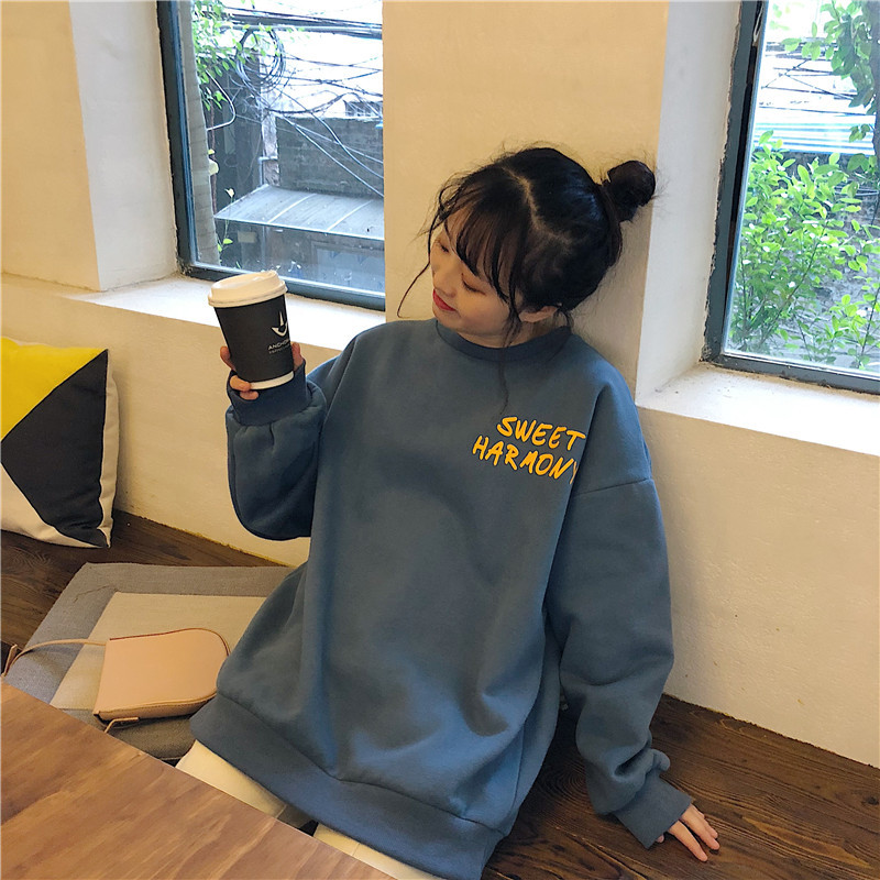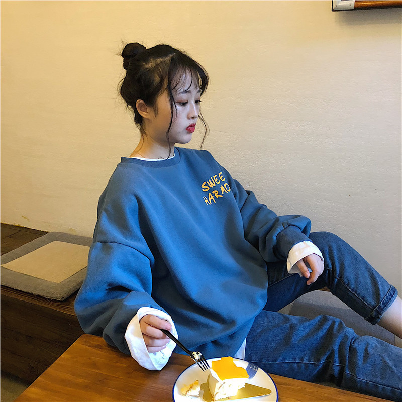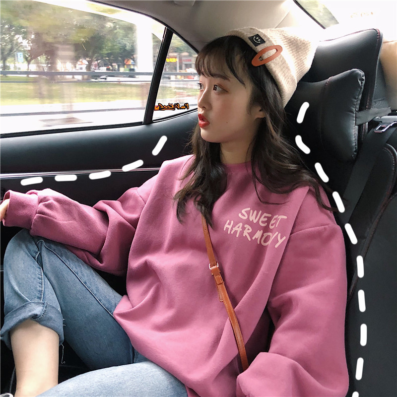 秋冬百搭2021时尚新款韩版闺蜜装学生宽松圆领卫衣女潮ins加绒加厚上衣服盐系火龙果卫衣