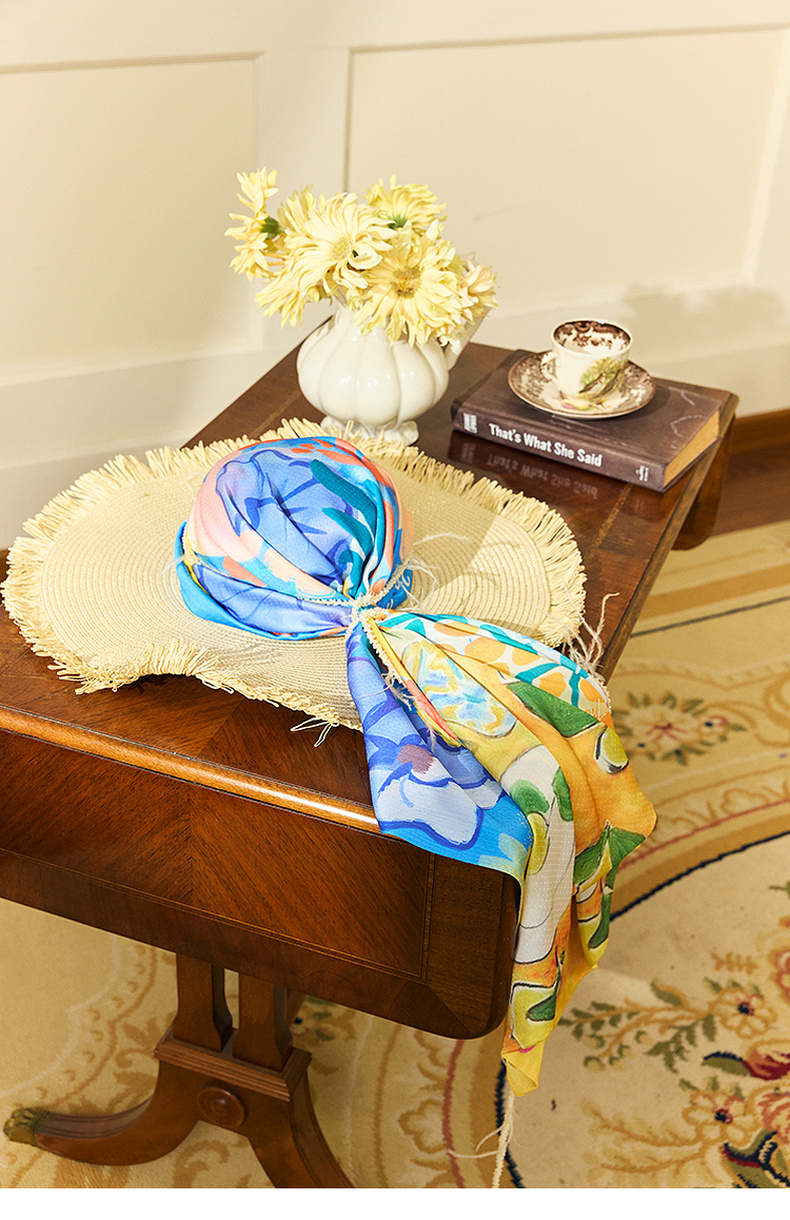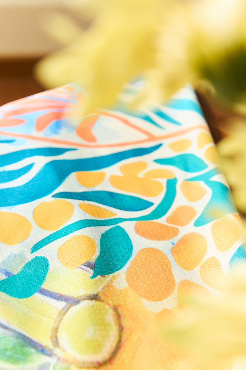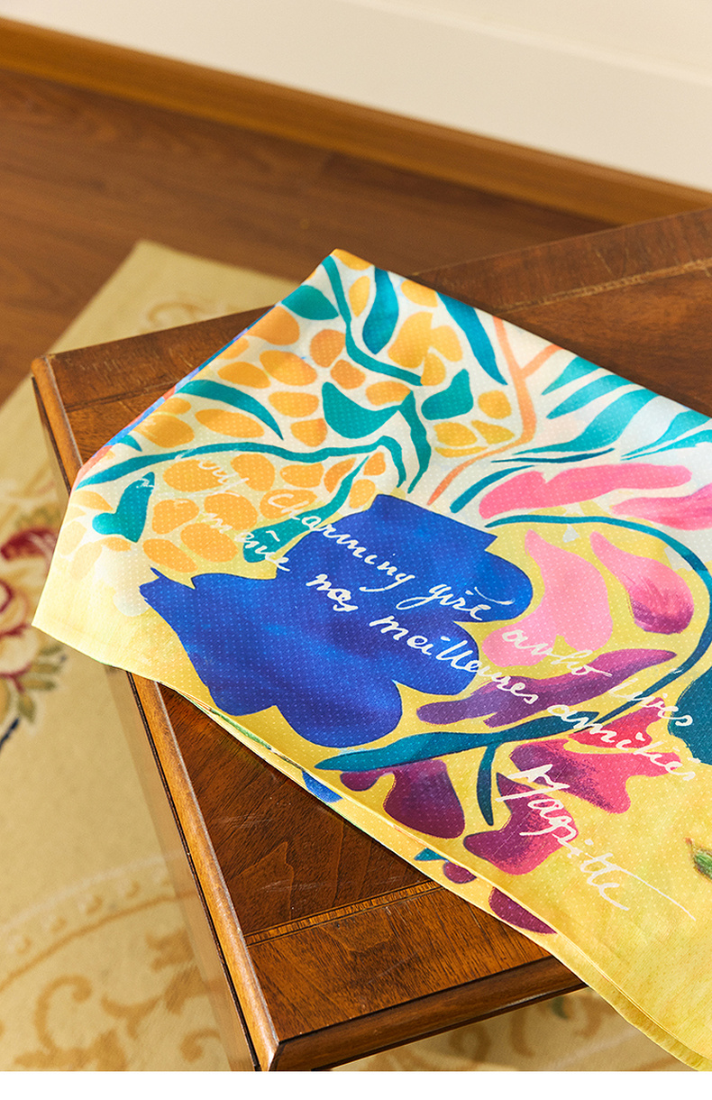 两三事 纵情夏日 2024夏季新款时尚复古双面印花丝巾女款