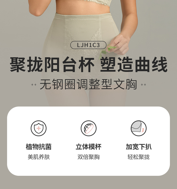 都市丽人聚拢阳台杯调整型文胸A:加加厚B:中厚蕾丝美体纤塑无钢圈塑养护组合塑身文胸LJH1C3