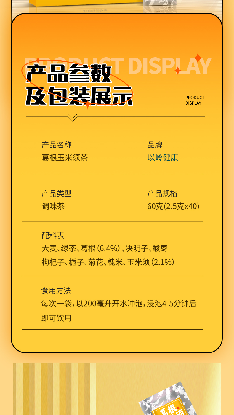 以岭健康葛根玉米须茶独立包装袋泡茶 24袋/盒