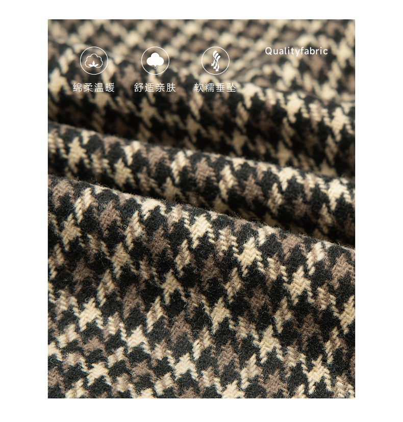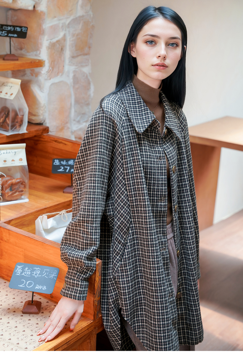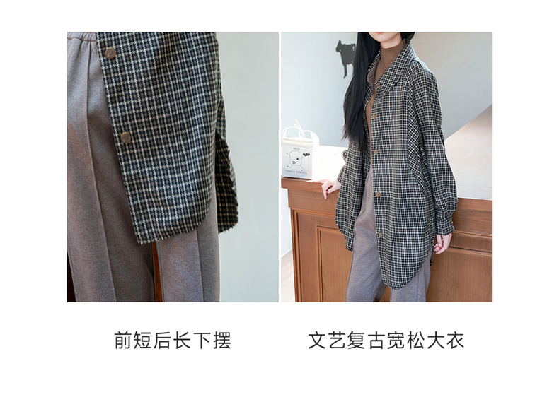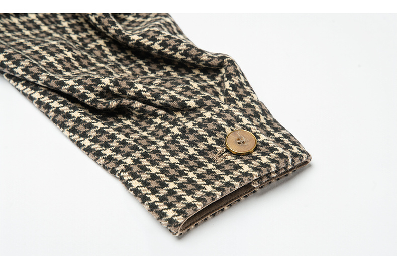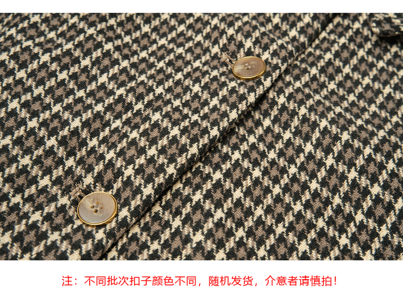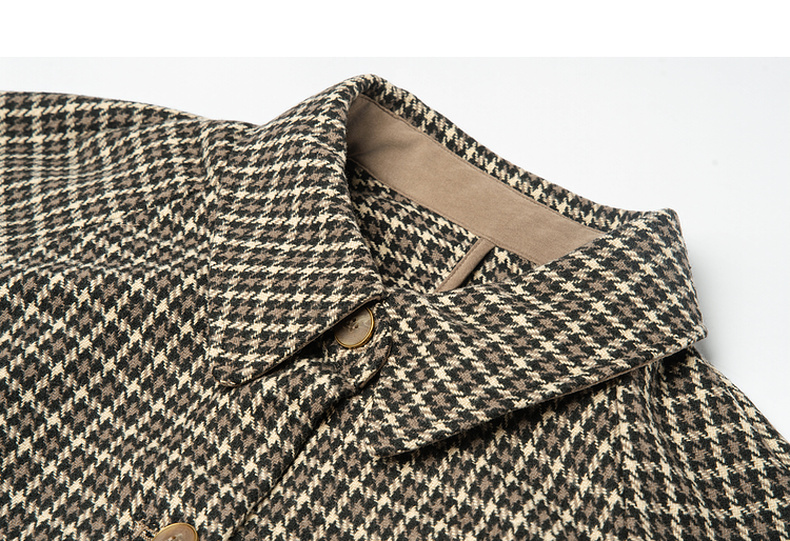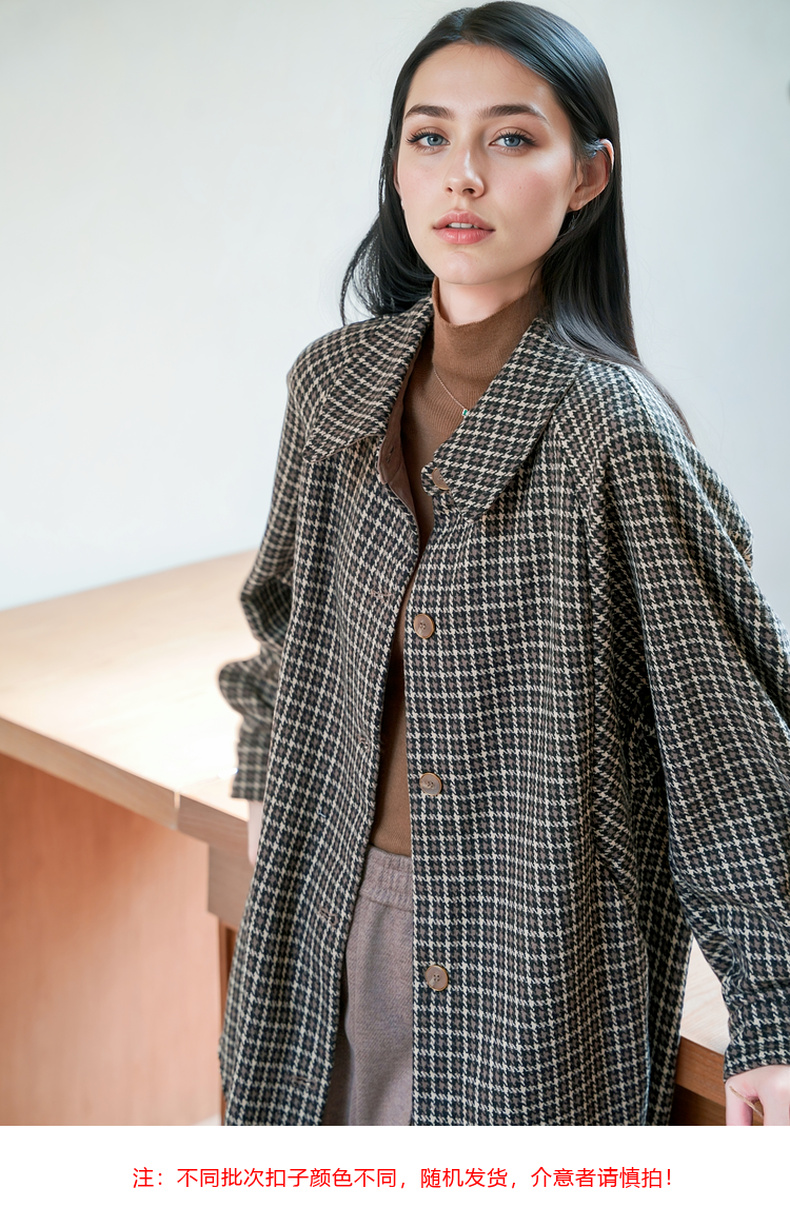 谜底羊毛混纺大衣女2025秋新款复古风千鸟格中长款外套257MD7863