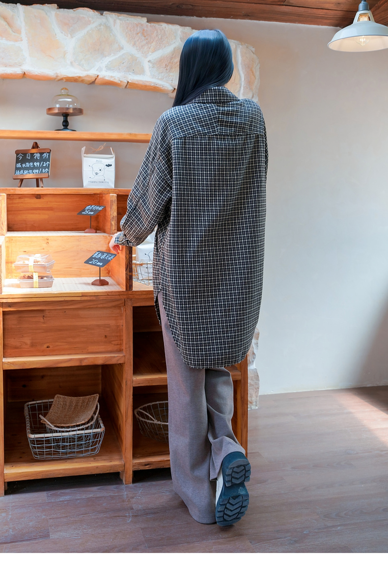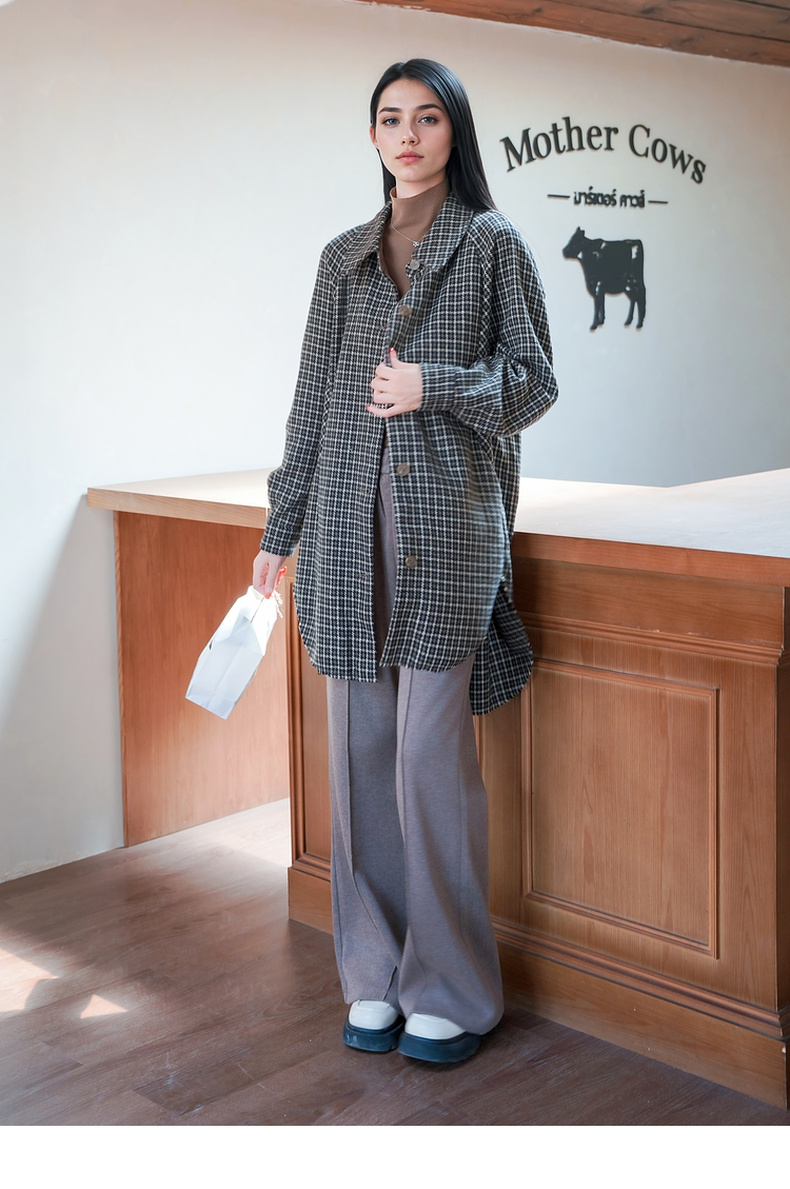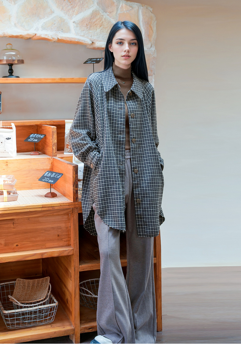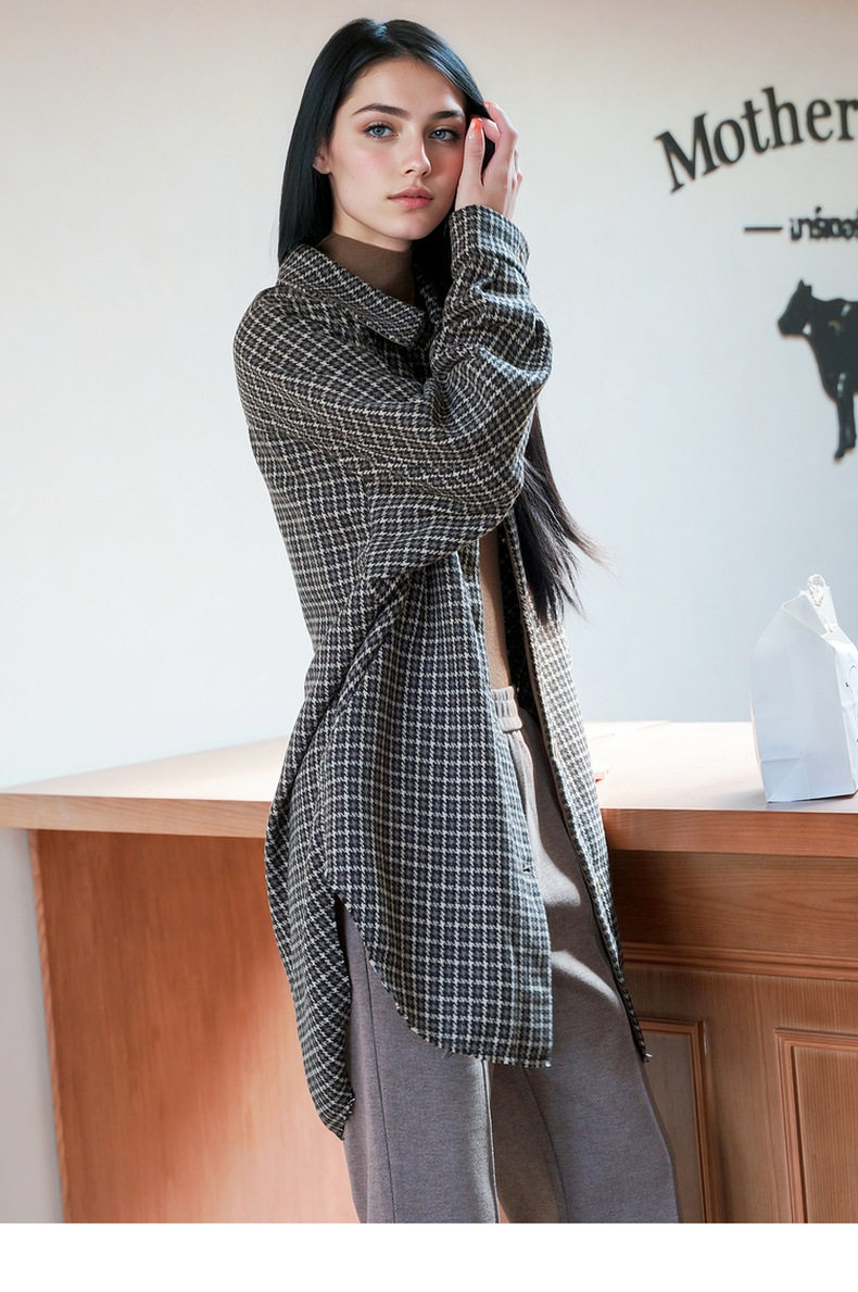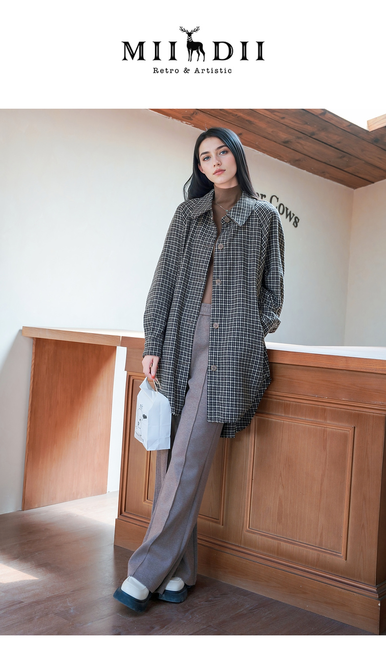 谜底羊毛混纺大衣女2025秋新款复古风千鸟格中长款外套257MD7863