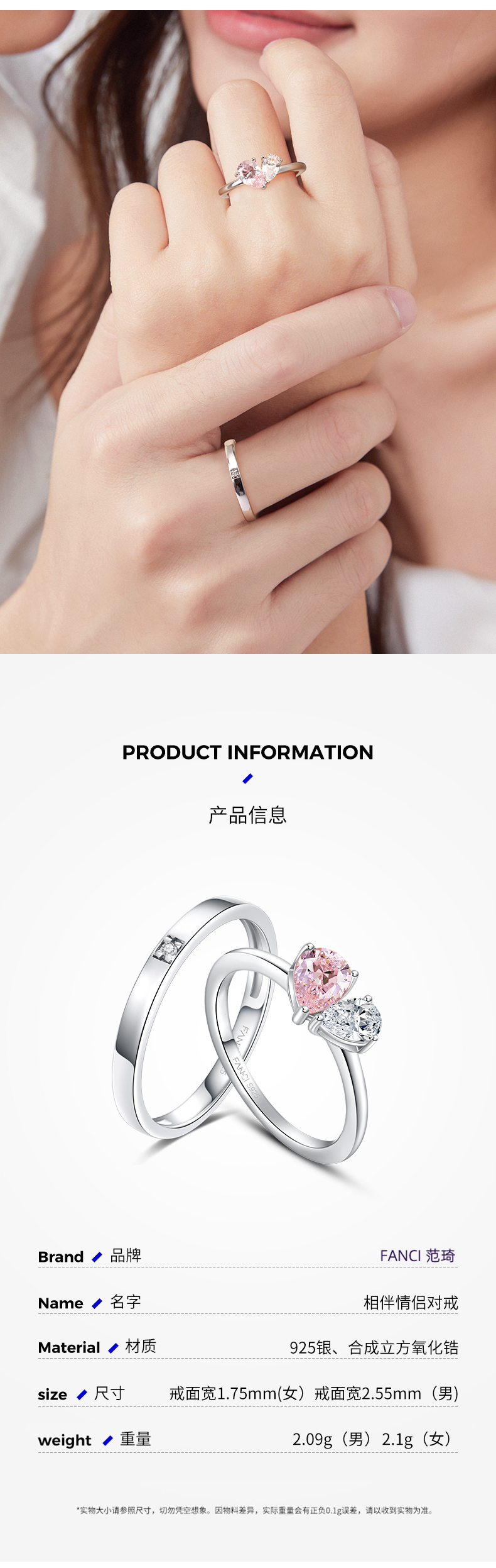 【圣诞礼物】【明星同款】Fanci范琦恋爱频率情侣对戒指生日送男女朋友纪念日告白礼物