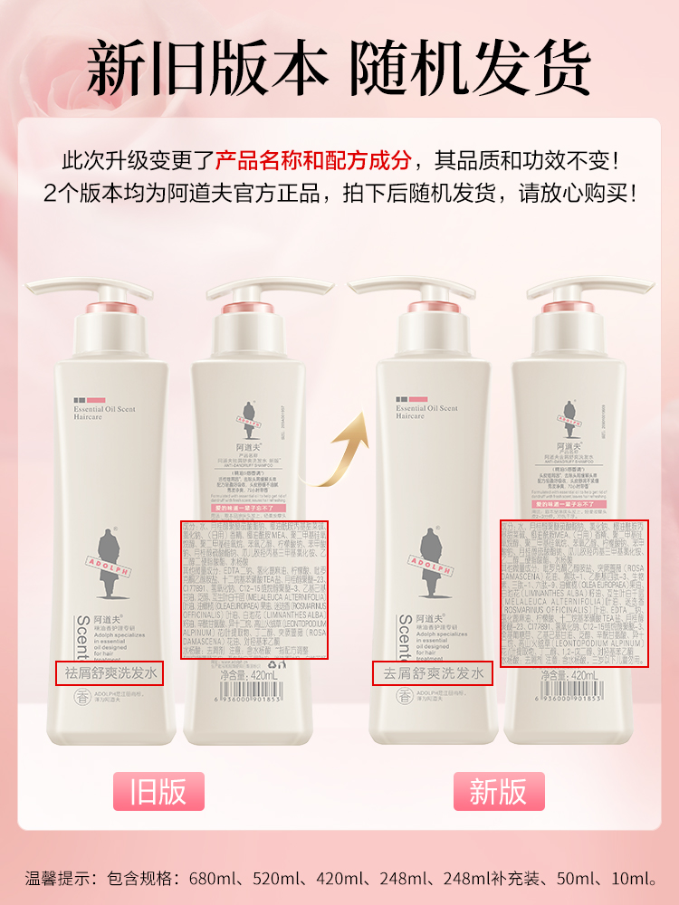 阿道夫精油香护理专研洗发水(祛屑舒爽)248ml补充装赠泵头