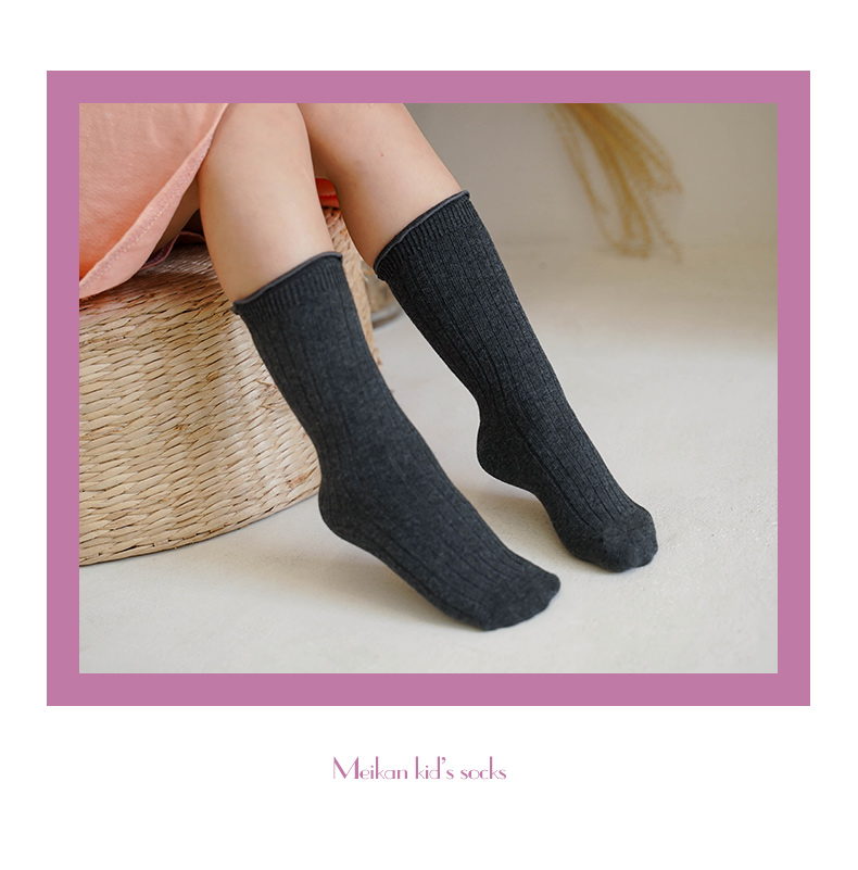 MEIKAN儿童袜子新款棉袜复古潮流女孩小学生中长筒袜2双装2100